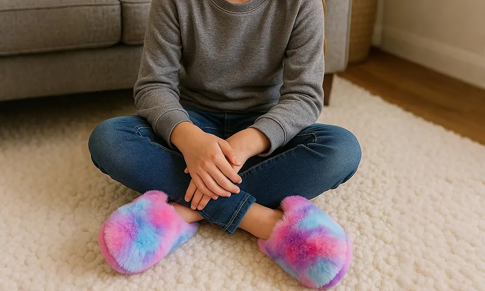 Mei MACLEOD Mermaid Fluffy House Slippers Fuzzy Glitter Slipper Faux Fur Plush Slipper Slip On Slides Sandal for Little/Big Girls(Colorful-unicorn)