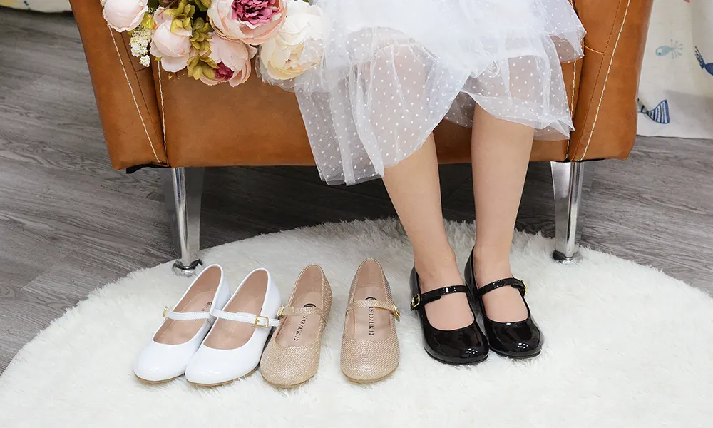 Mei MACLEOD Girl’s Mary Jane Shoes Ballerina Shoes, Princess Dress Shoes for Party Wedding(Bowknot-gold)
