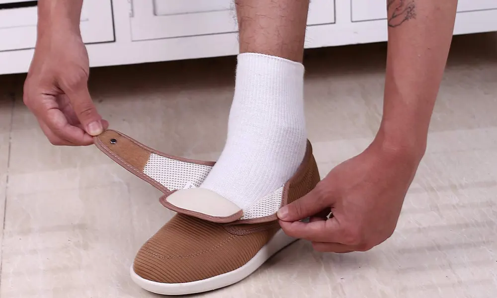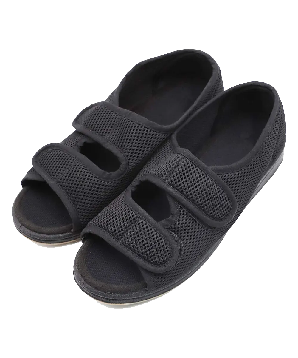 Men’s Open Toe Diabetic Recovery Slippers, Adjustable Orthopedic Wide Width Walking Shoes for Arthritis Edema Swollen Feet Elderly Men(Black)