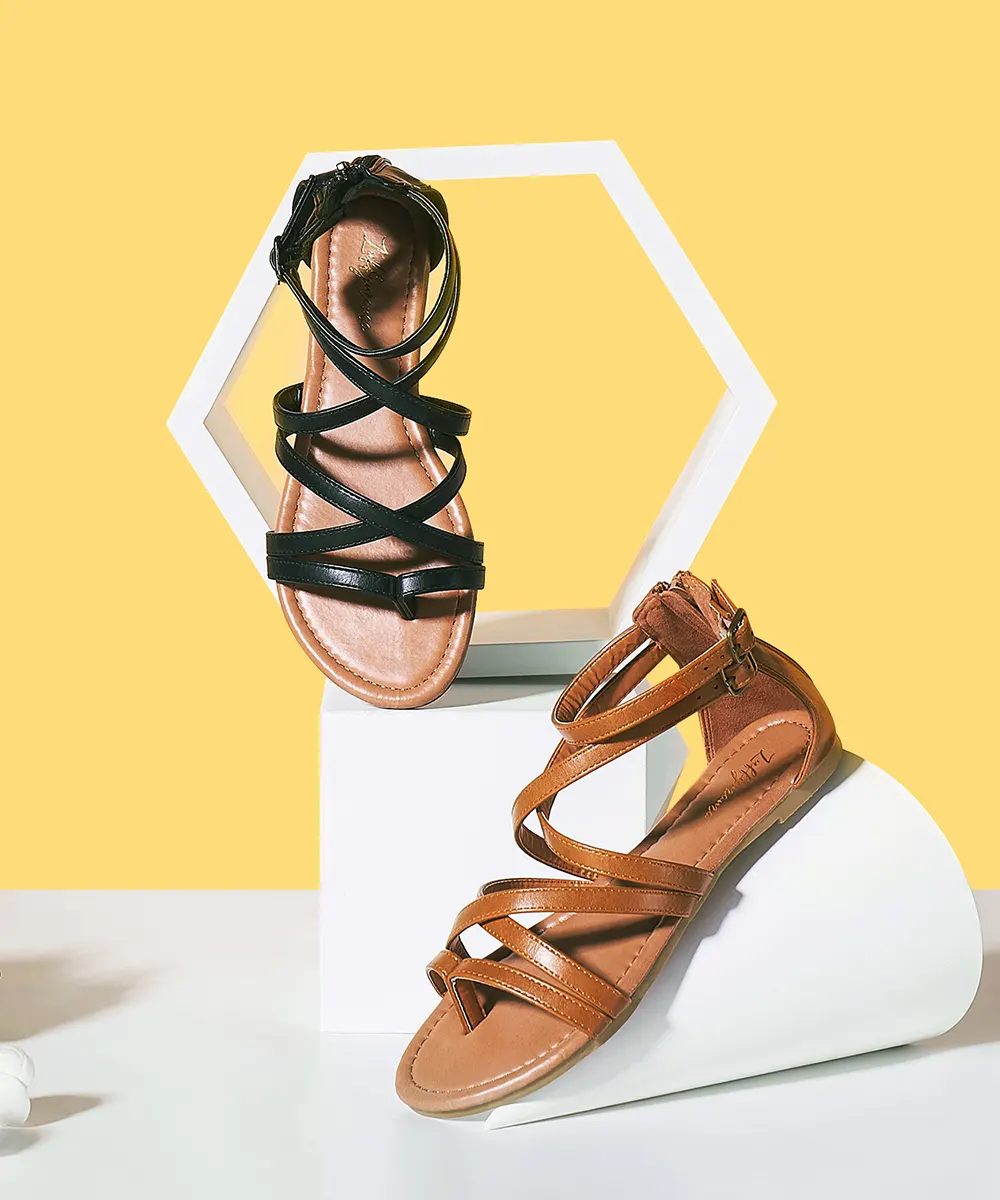 Luffymomo Women’s Gladiator Strap Sandals Flat Fisherman Thong Cross Strappy Sandals(Black-lp)