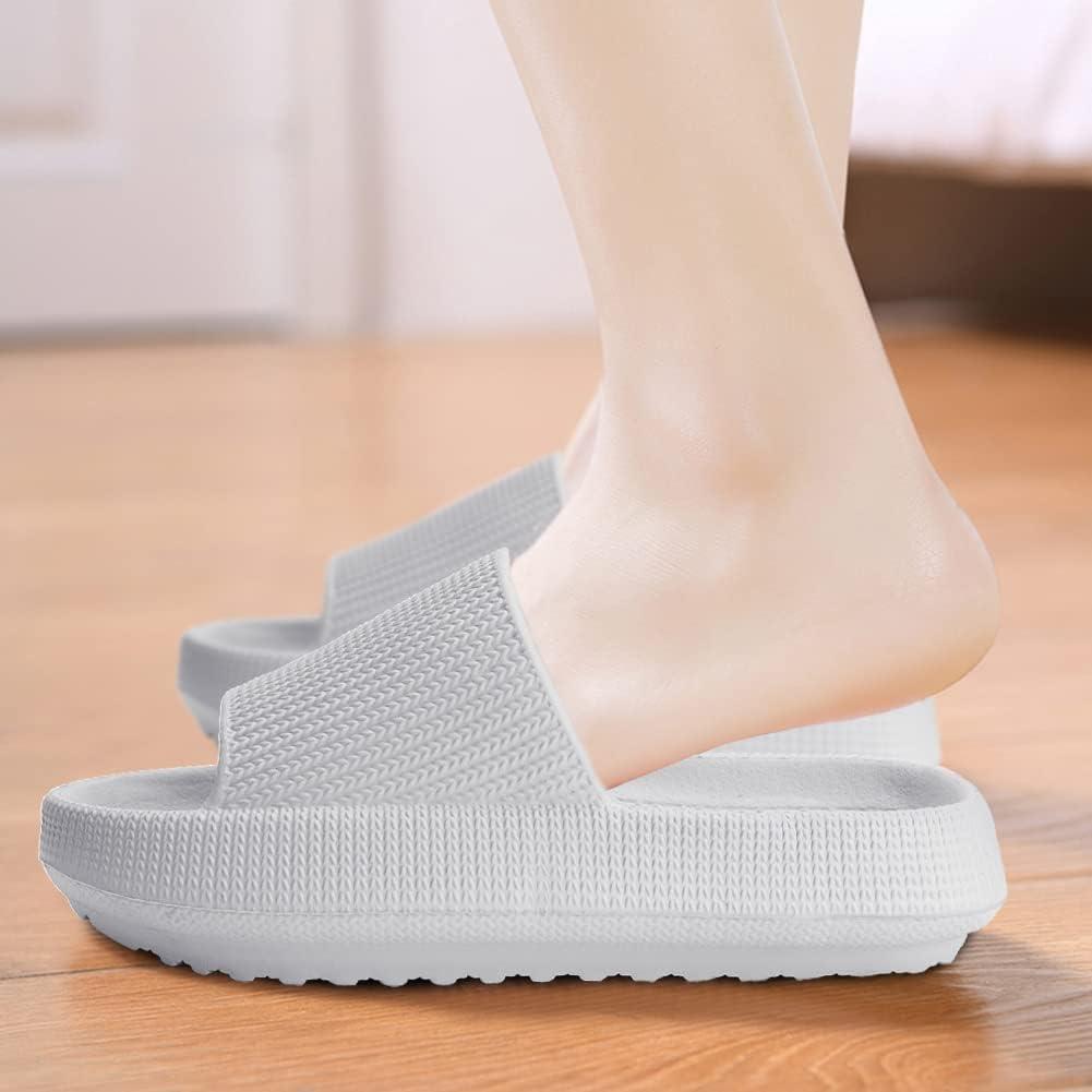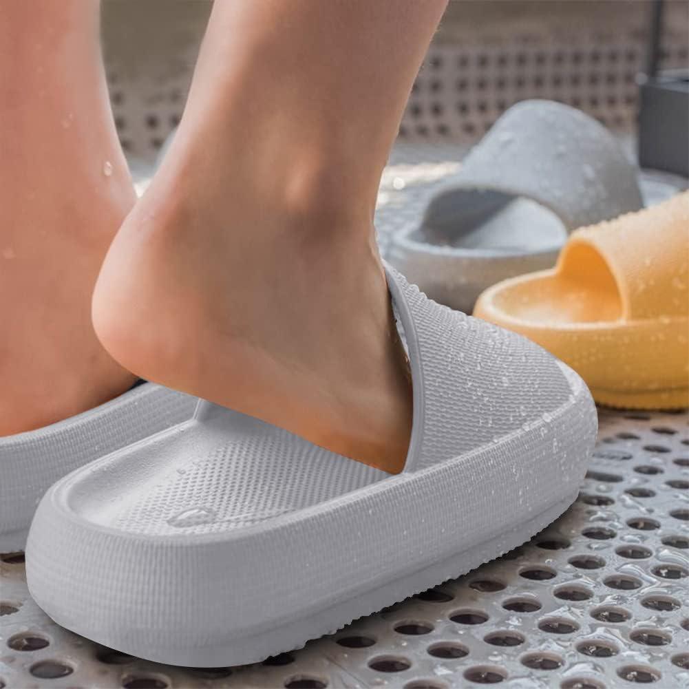 Cloud Slides for Kids, Girls Boys Pillow Slippers Shower Bathroom, Comfort Non-Slip Thick Sole Slippers Summer Beach Shoes for Little Kid/Big Kid(Grey)