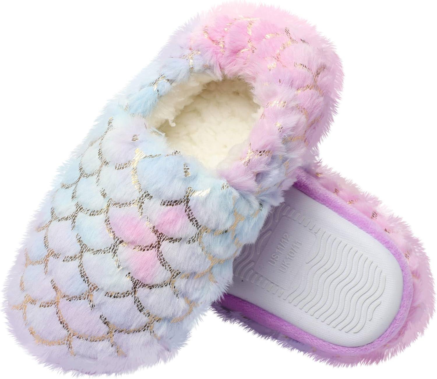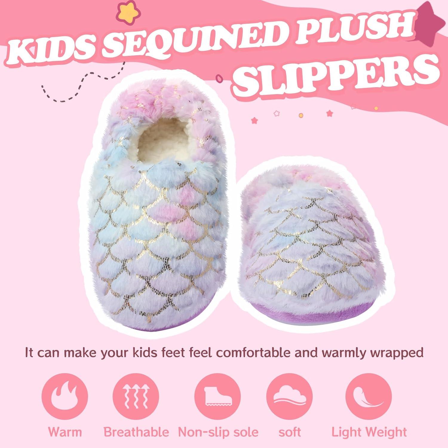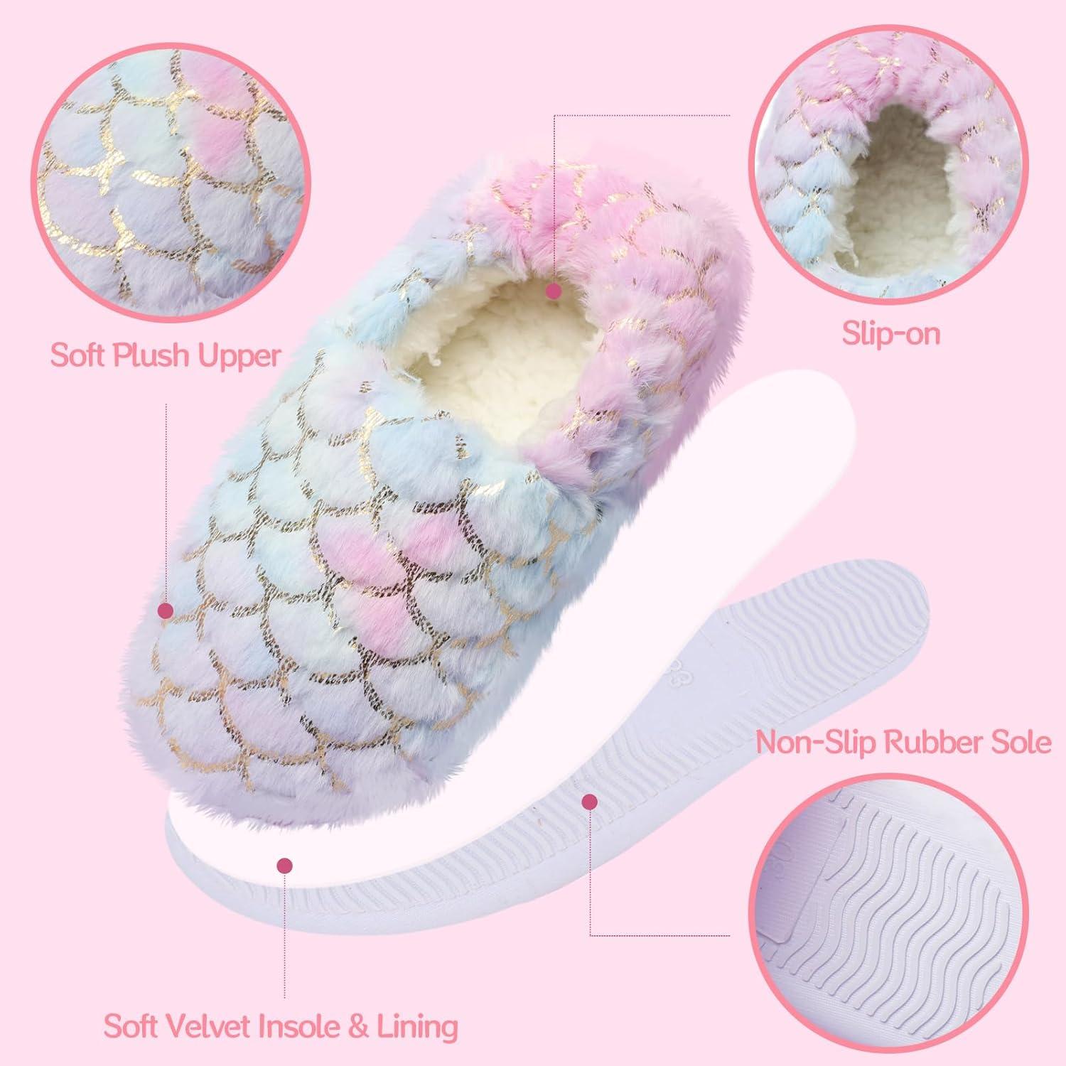 Girls Mermaid Princess Glitter House Slippers No-Slip Memory Foam Slippers for Kids (Little Kid/Big Kid)(Mermaid – Blue Purple)