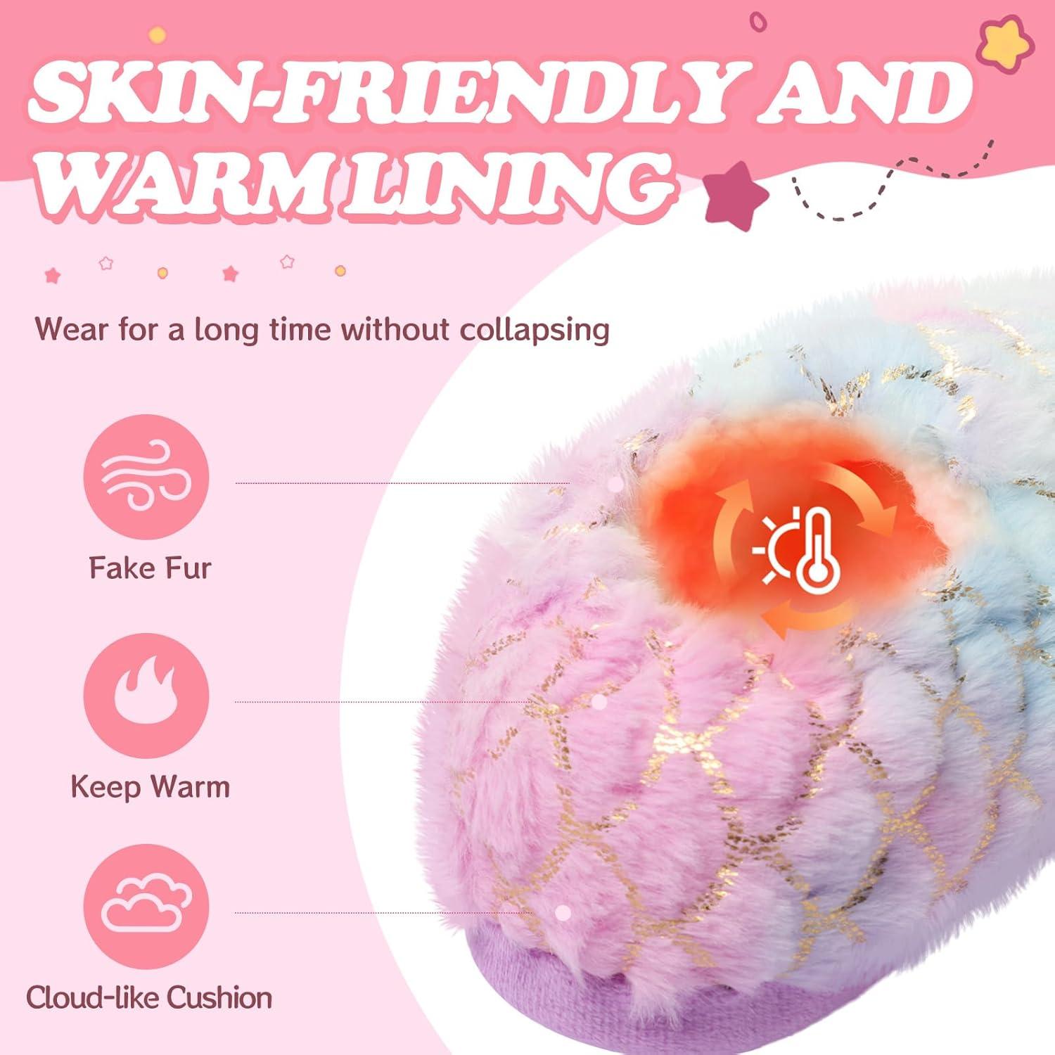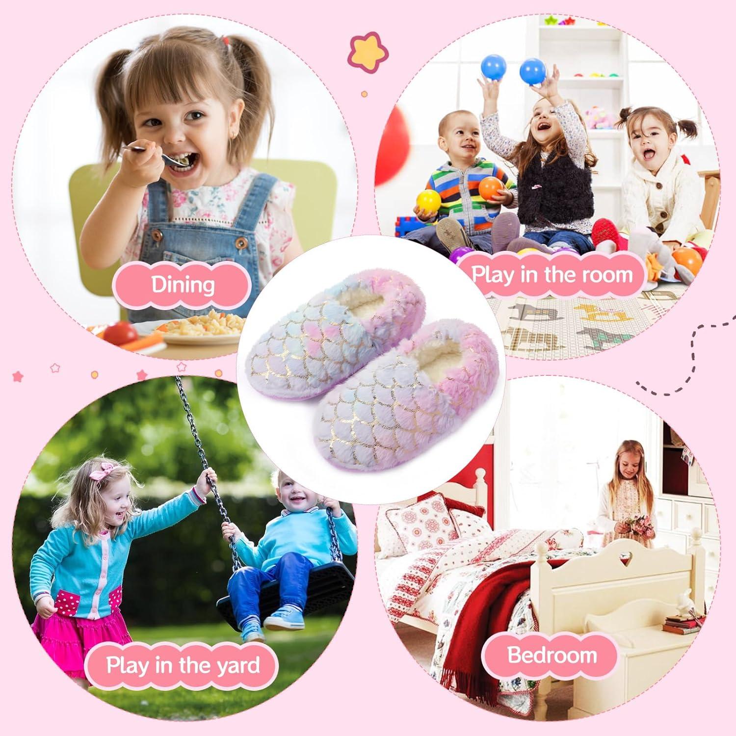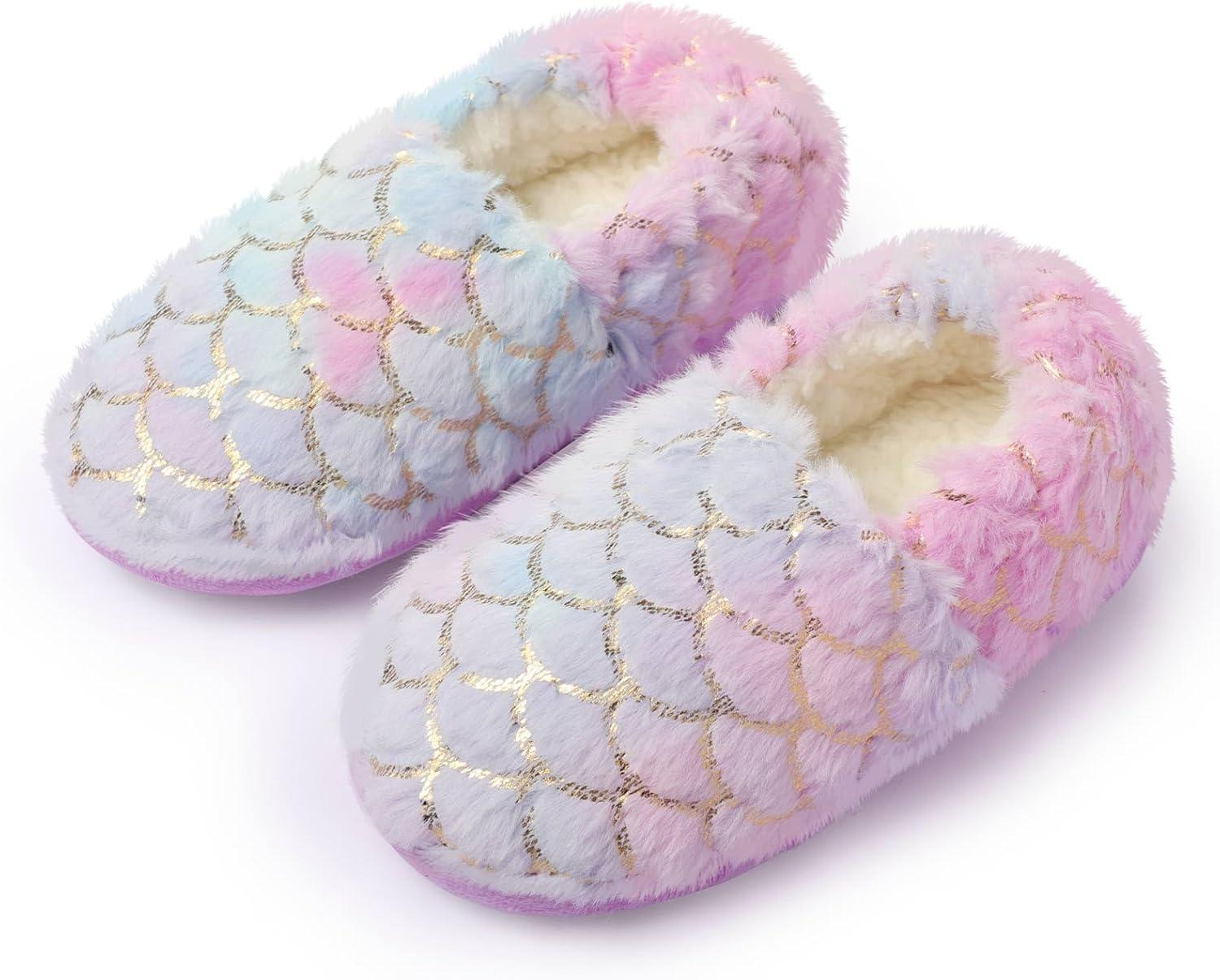 Girls Mermaid Princess Glitter House Slippers No-Slip Memory Foam Slippers for Kids (Little Kid/Big Kid)(Mermaid – Blue Purple)
