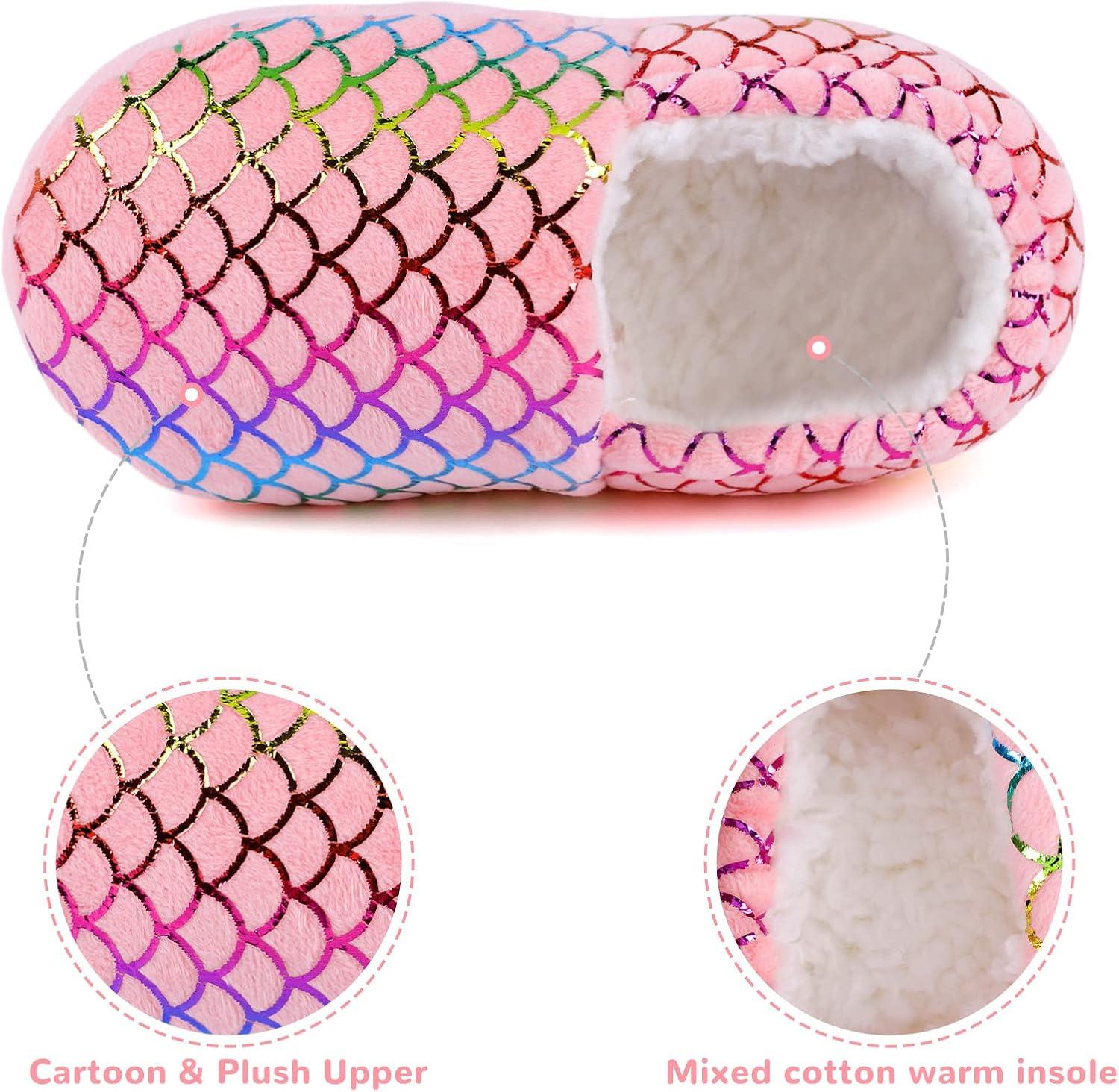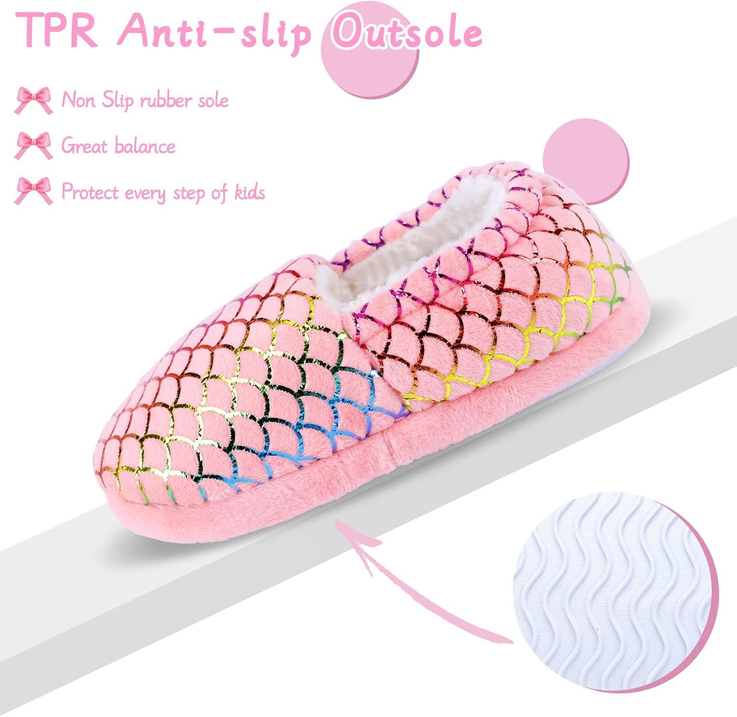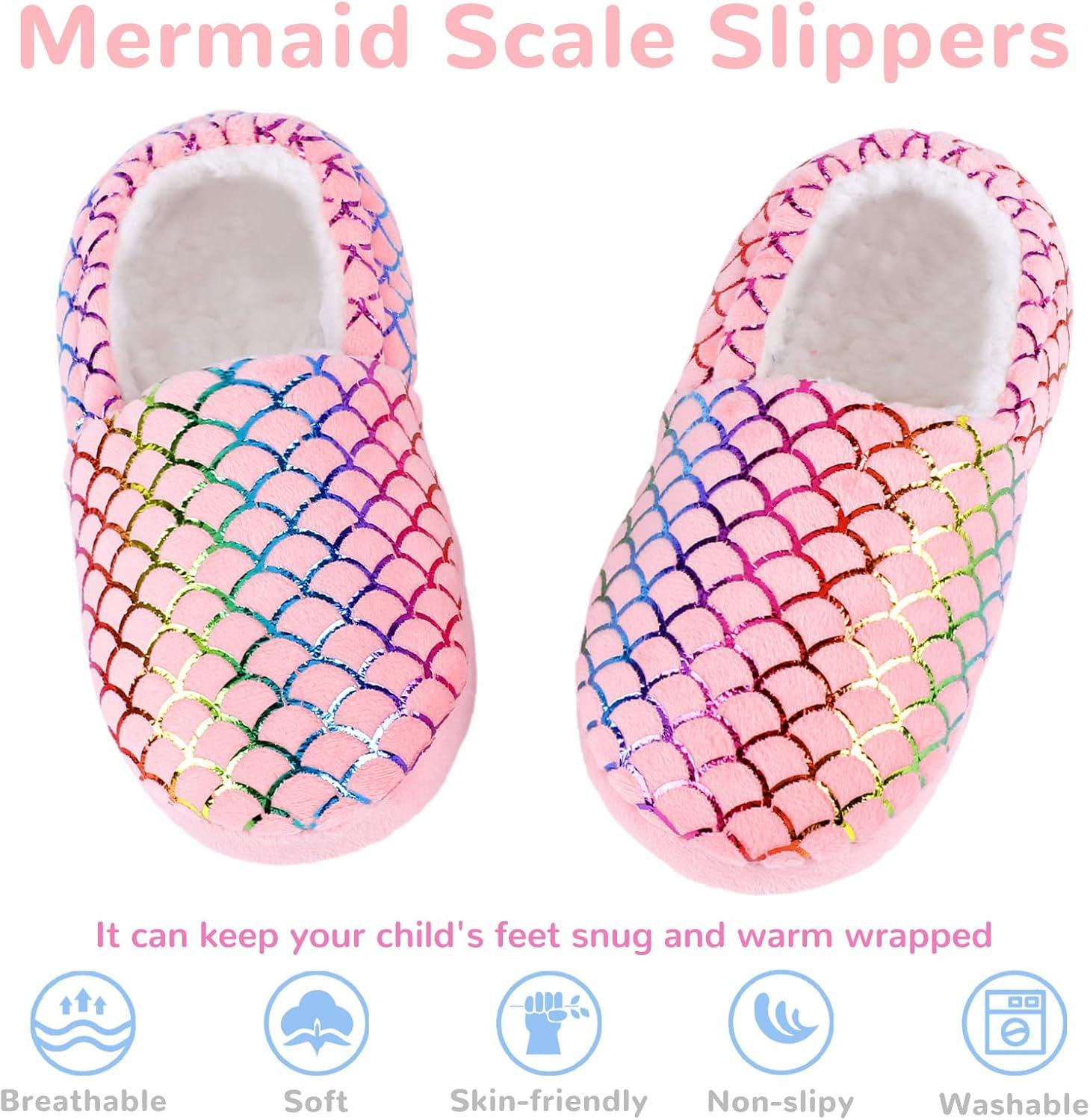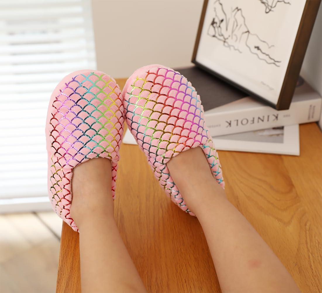 Girls Mermaid Princess Glitter House Slippers No-Slip Memory Foam Slippers for Kids (Little Kid/Big Kid)(Mermaid Scales – Pink)