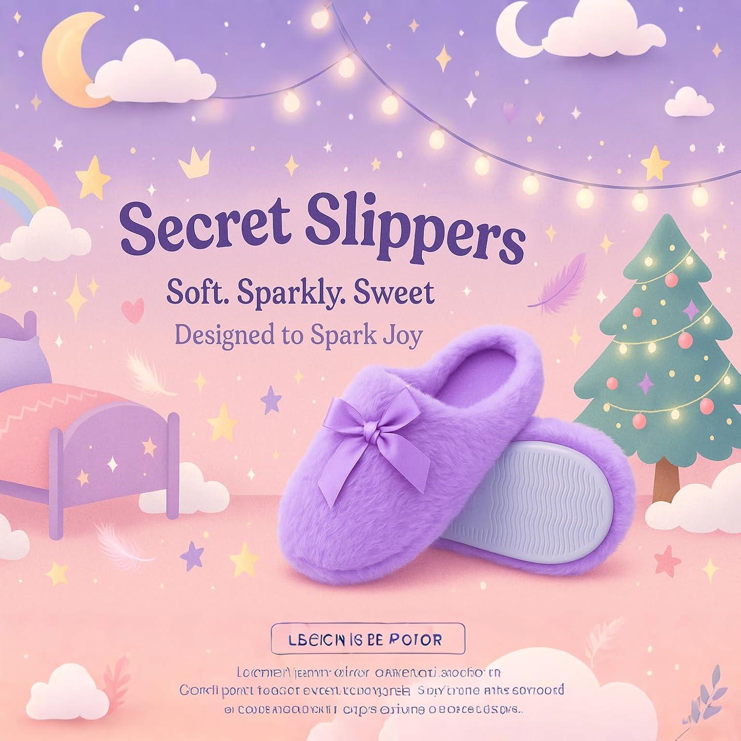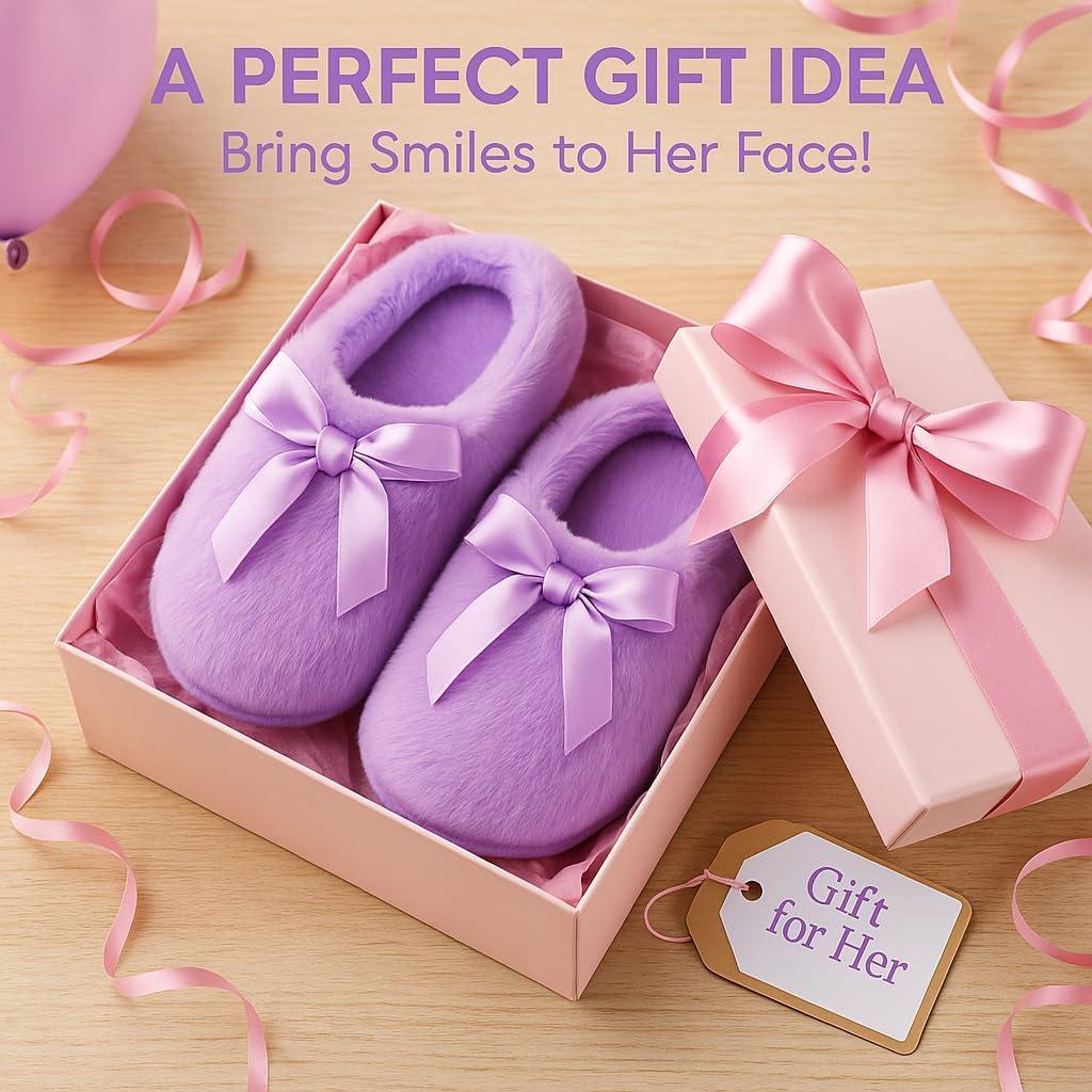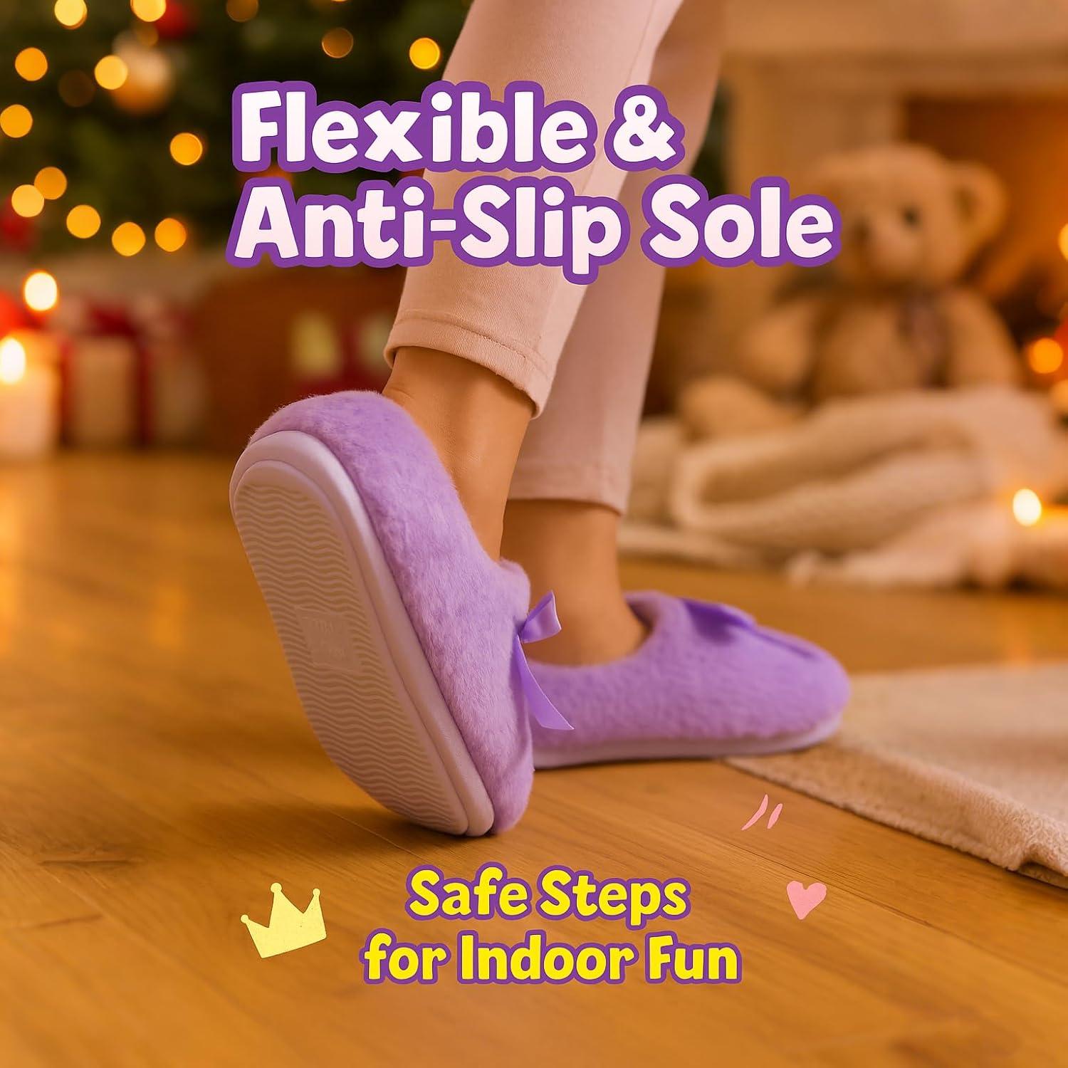 Girls Plush Faux Fur Slip on House Slippers Clog with Memory Foam – Bedroom Slippers Outdoor Indoor Faux Fur Lined(Bowknot – Purple)