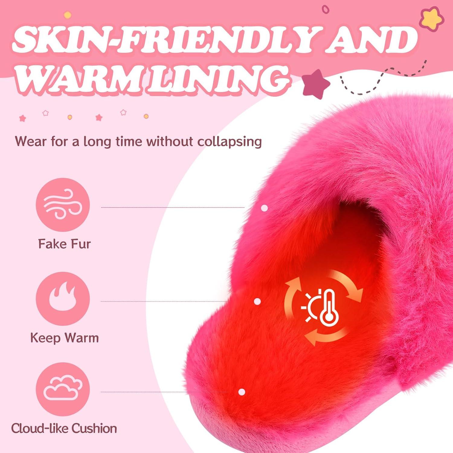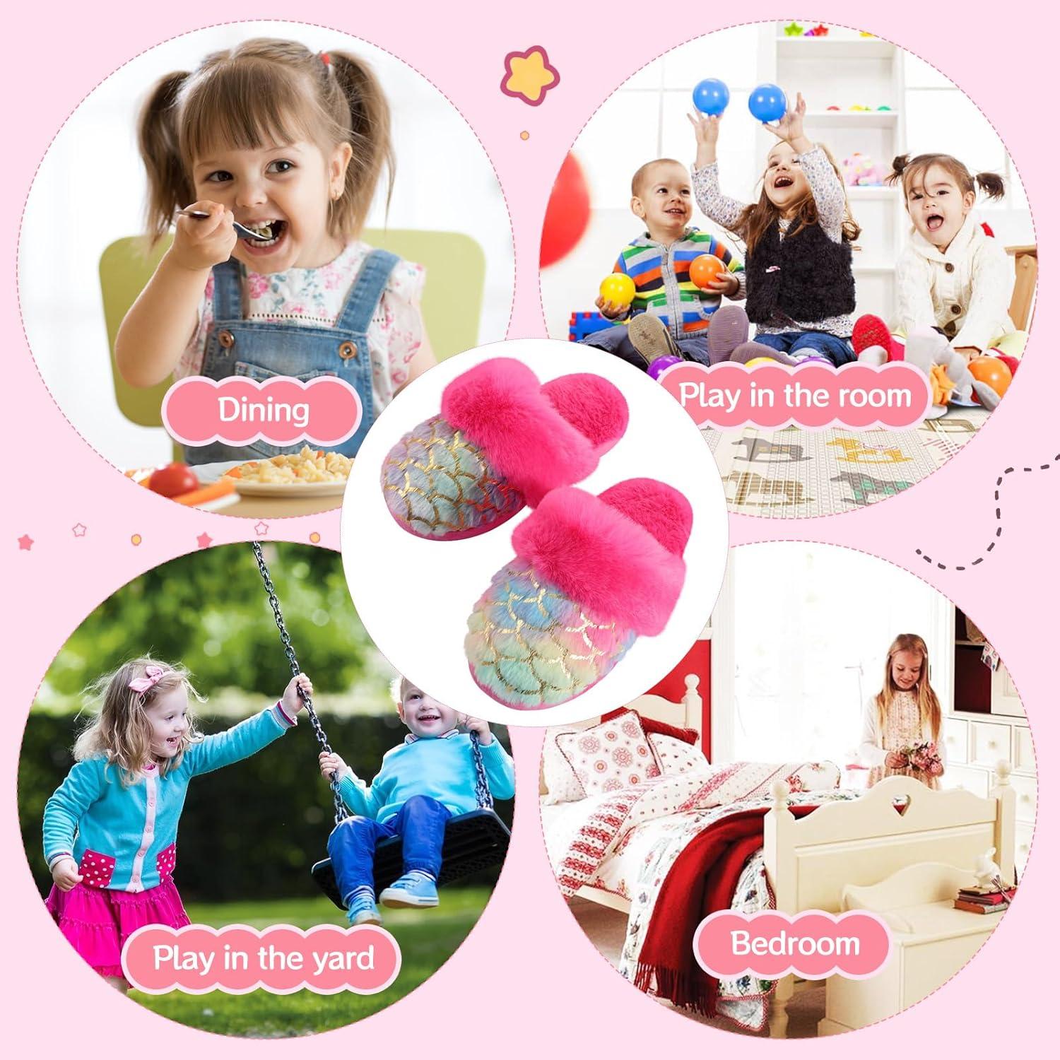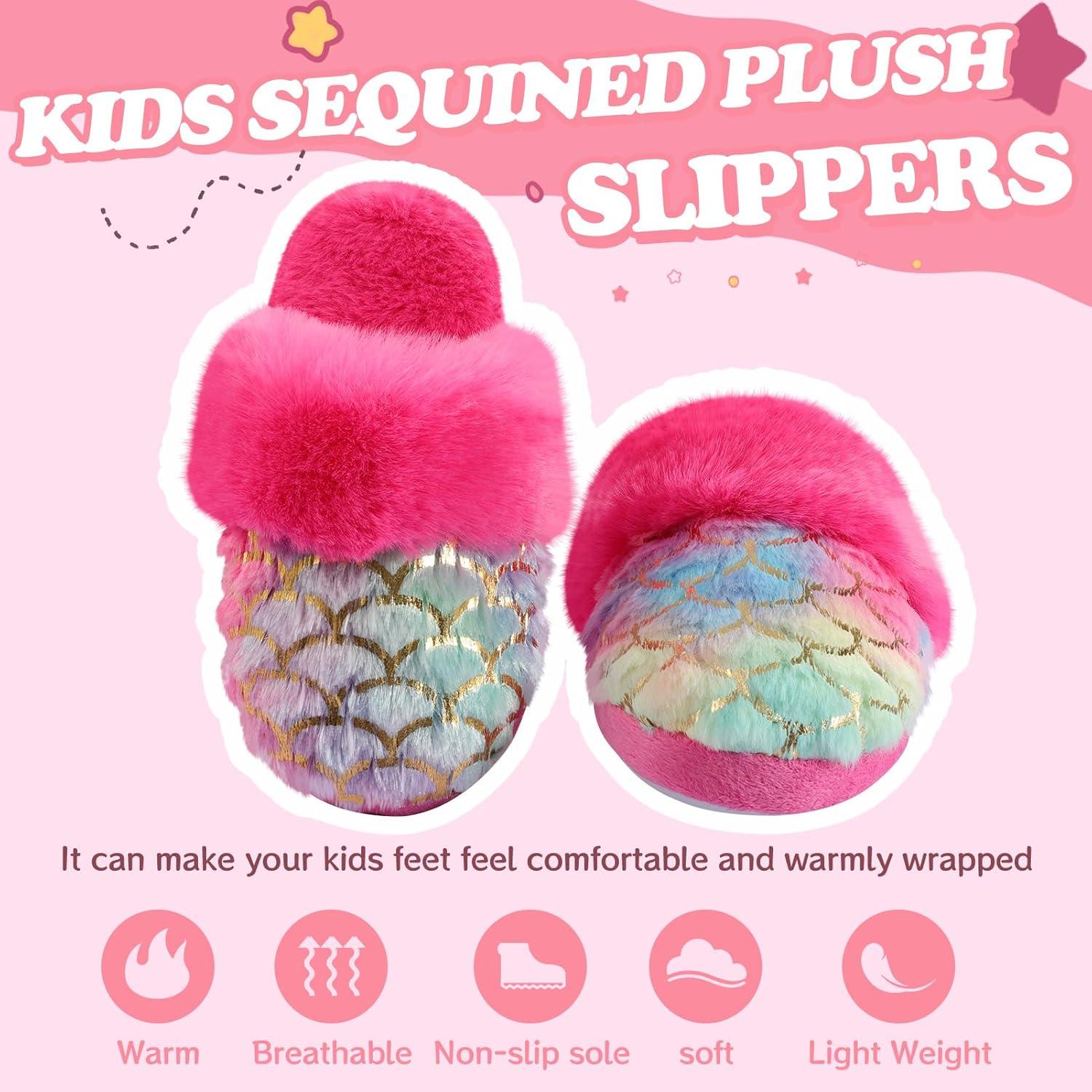 Girls Plush House Slippers Fluffy Multicolor Mermaid Slippers, Cute Faux Fur Slip-on Shoes Memory Foam House Slipper(Mermaid – Rose)