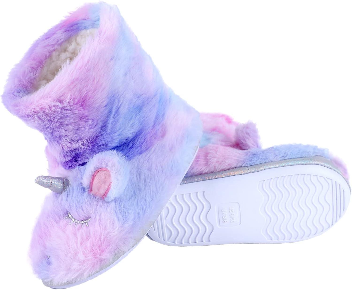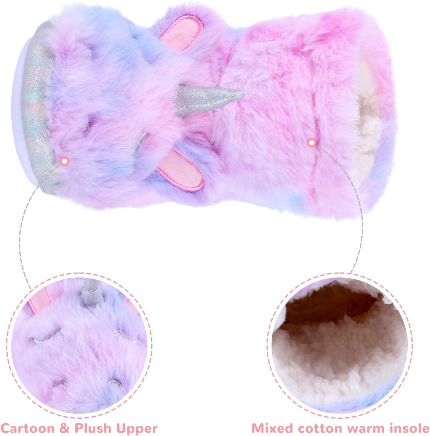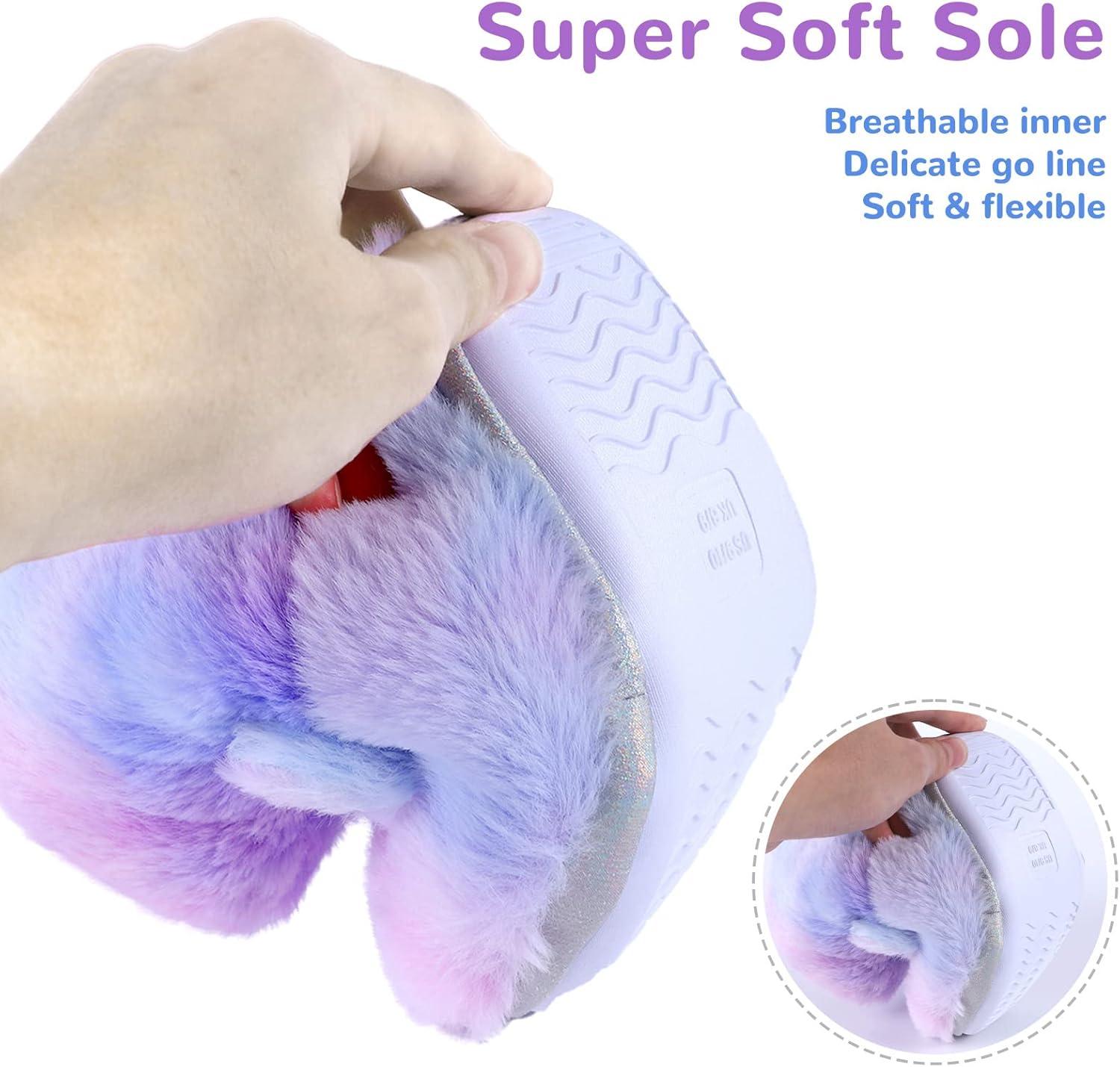 Girls Plush House Slippers Fluffy Sequin Slippers, Cute Faux Fur Slip-on Shoes Memory Foam House Slipper(Purple Booties)