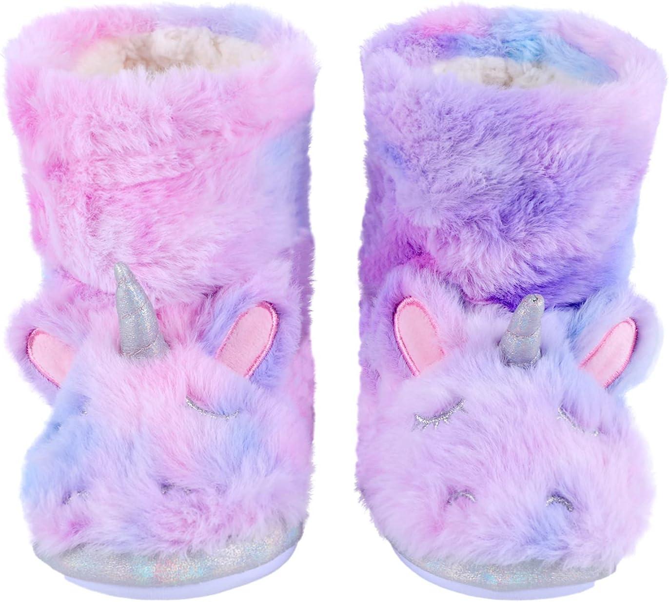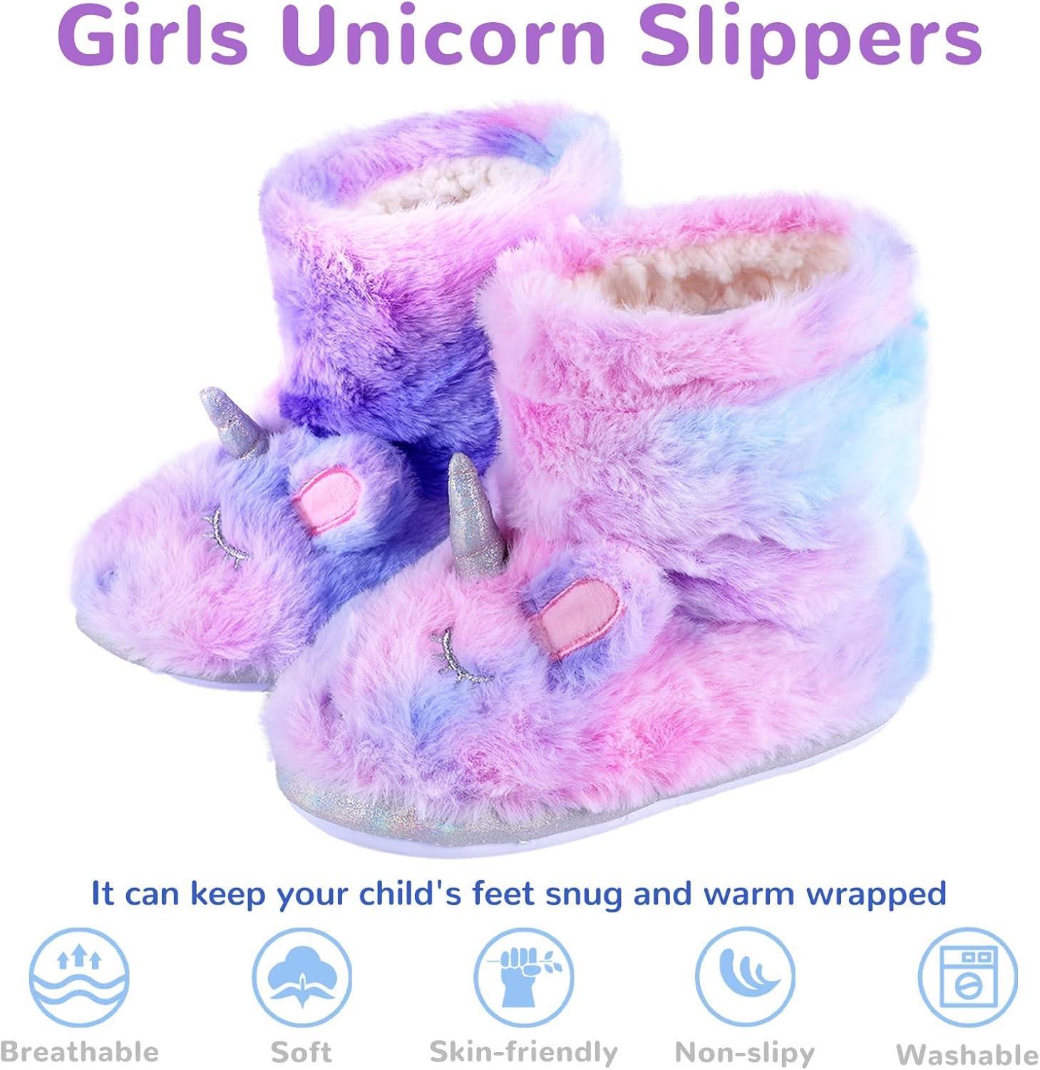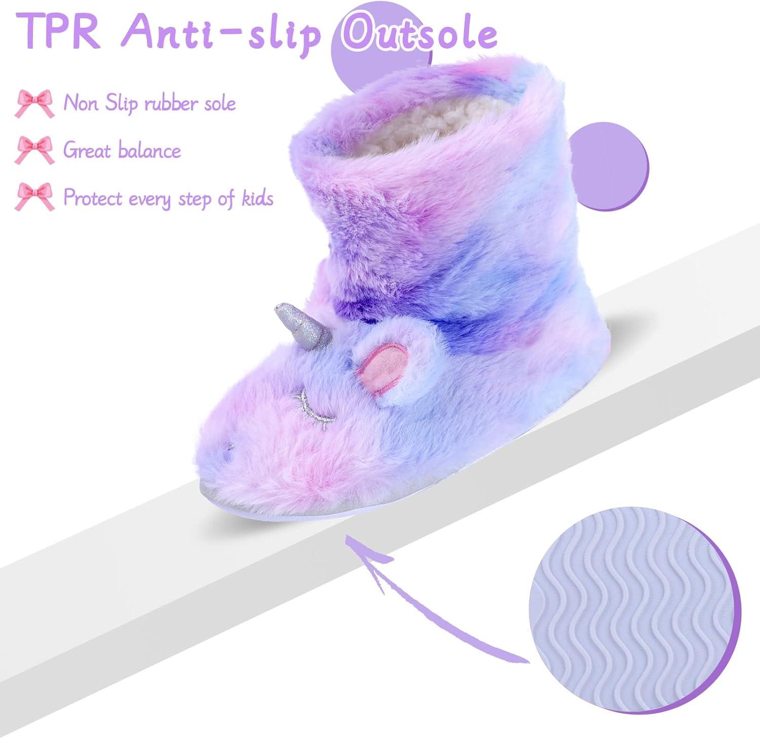 Girls Plush House Slippers Fluffy Sequin Slippers, Cute Faux Fur Slip-on Shoes Memory Foam House Slipper(Purple Booties)