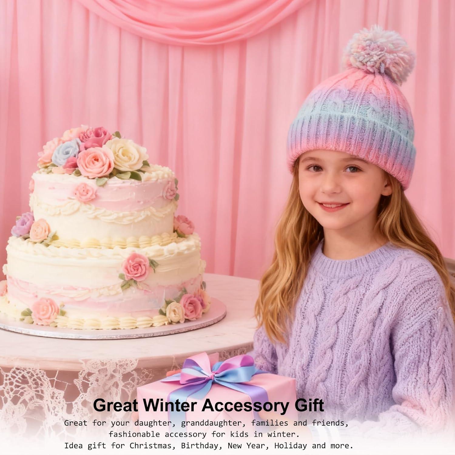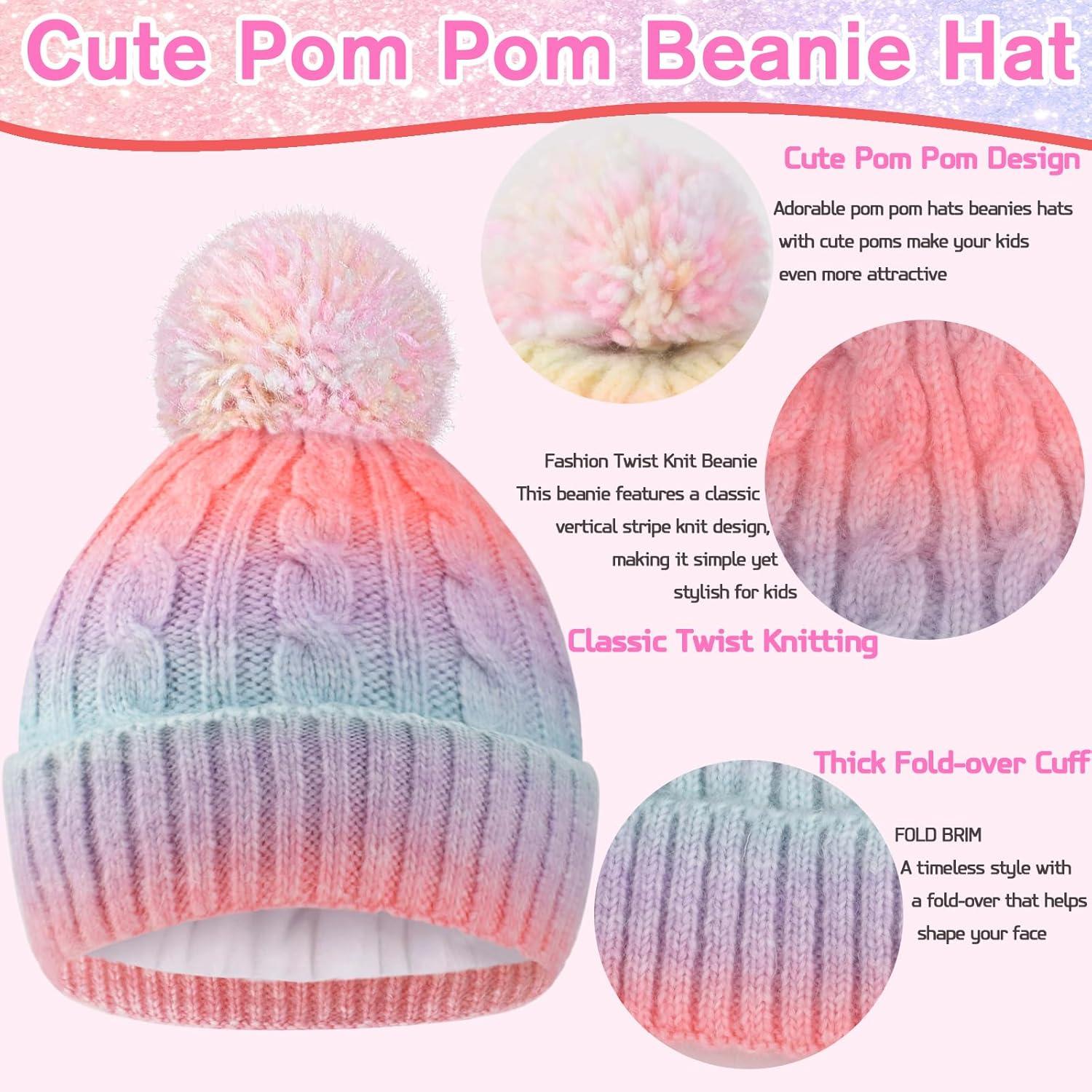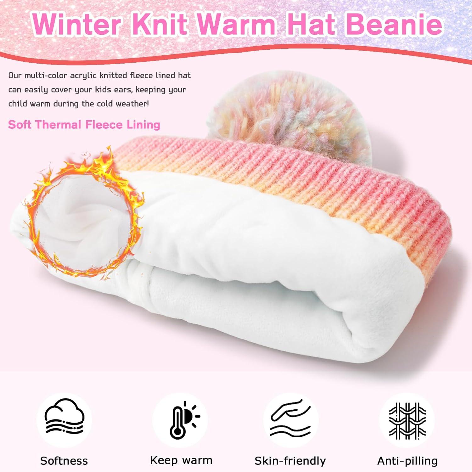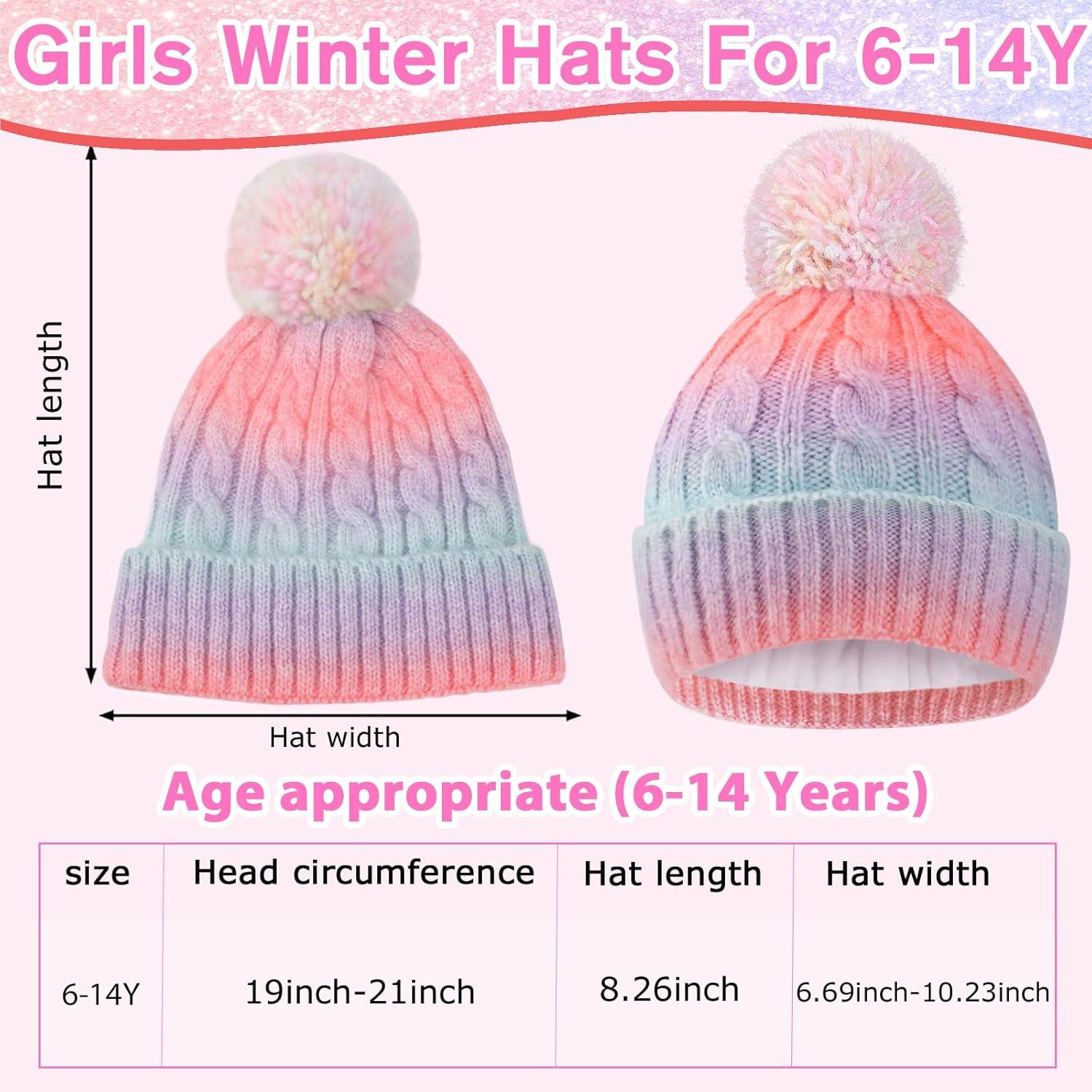 Girls Winter Hat Scarf Gloves Set Beanie Hat with Warm Fleece Lined, Kids Hat and Gloves Set for Girls 5-10Y and 11-16 Years(Multicolor-01(hat))