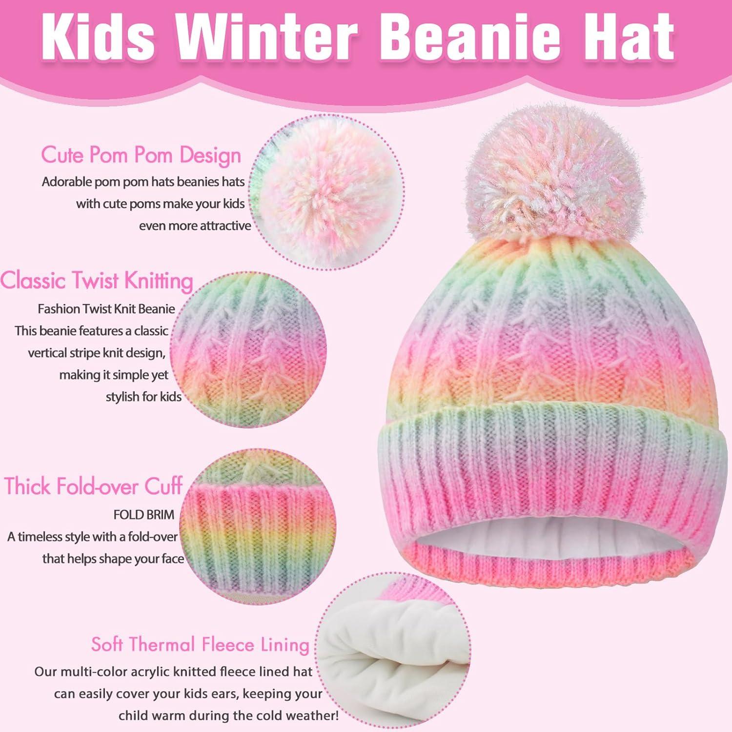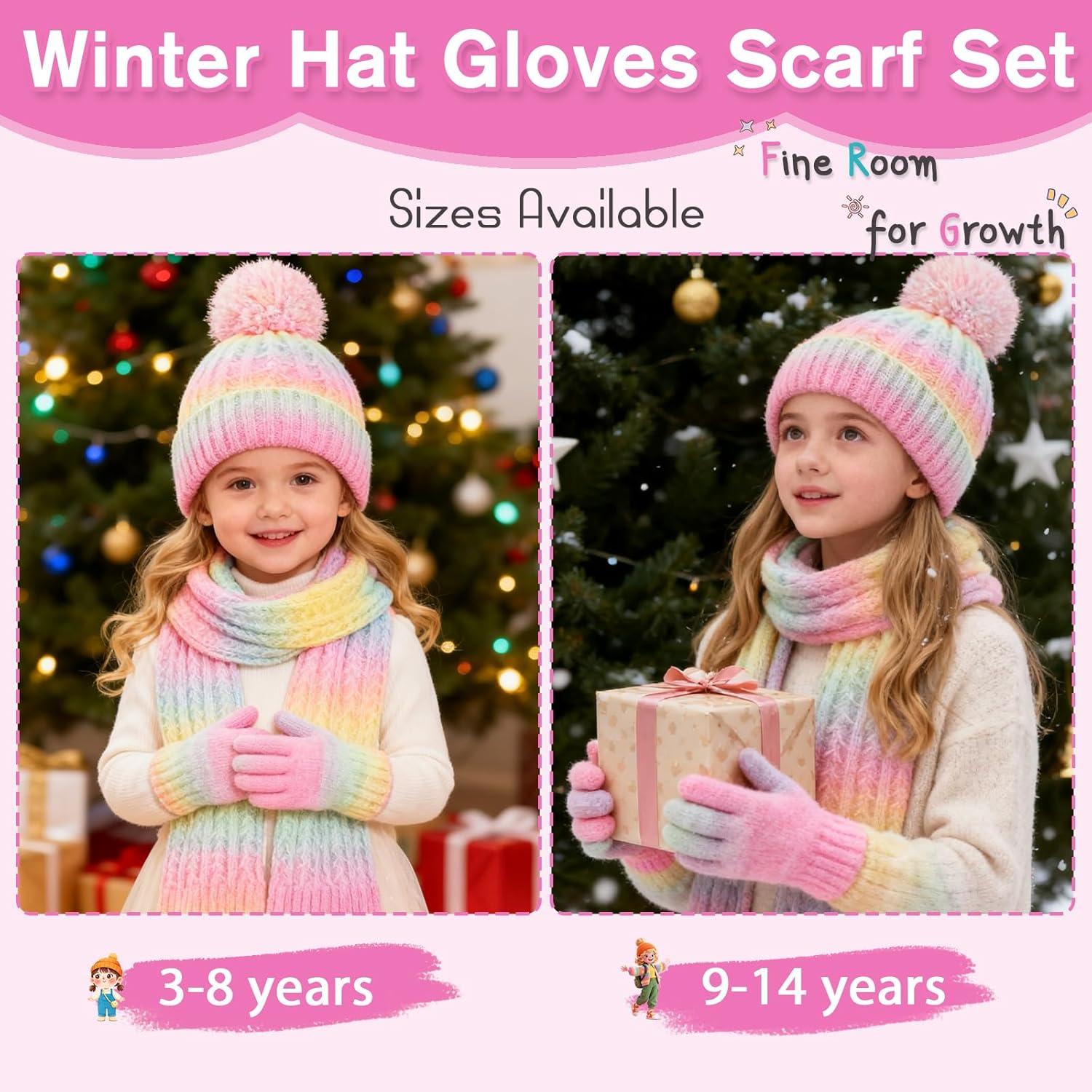Kids Winter Hat Scarf Gloves Set, Toddler Beanie Hat Warm Fleece Lined Knit Beanies Cap for Boy Girl 2-14 Years(Multicolor73-3pcs)