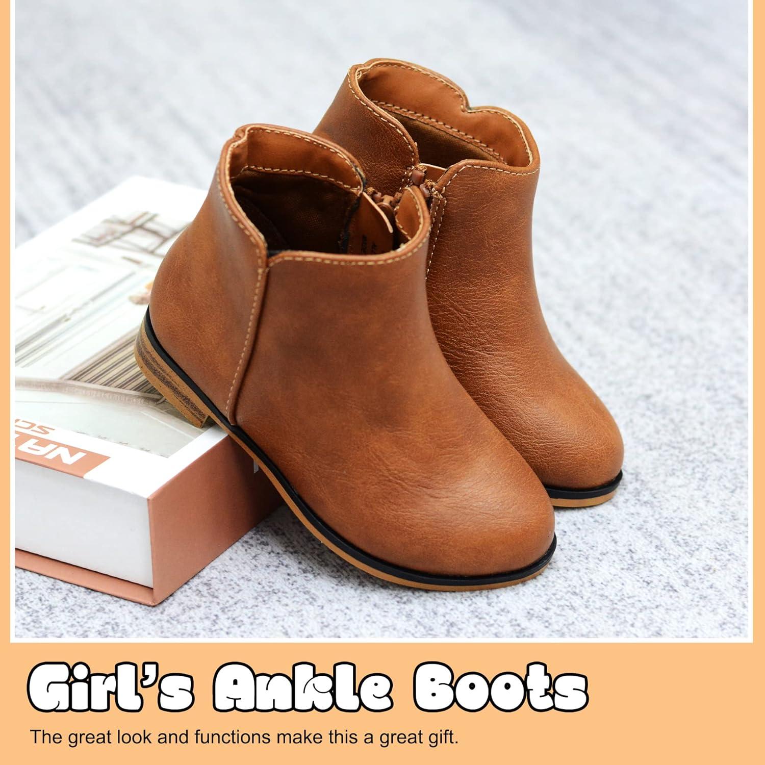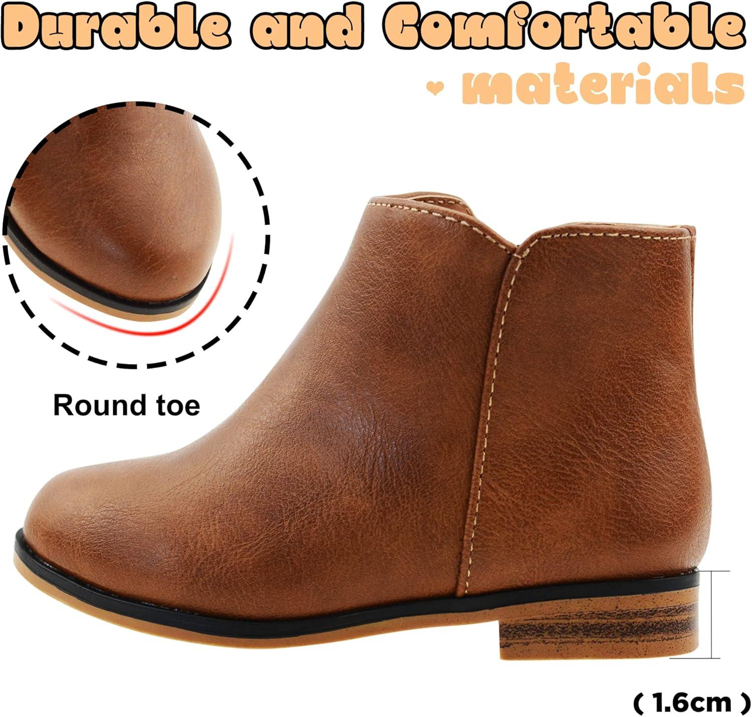 LseLom Girls Ankle Boots for Toddler/Little Kids – Brown, Suede, Zipper, Low-Top, Flat Heel, Casual(Brown)