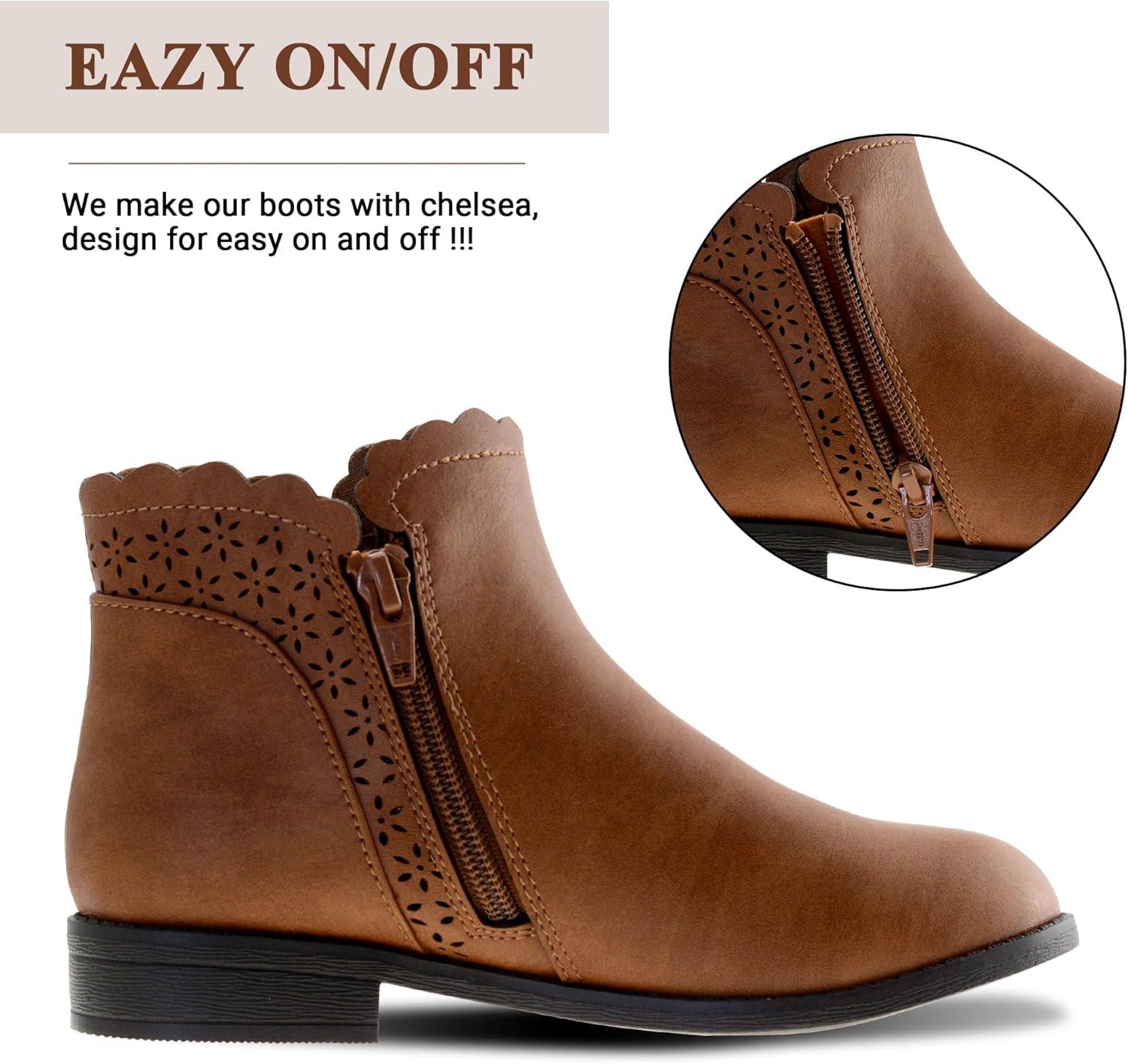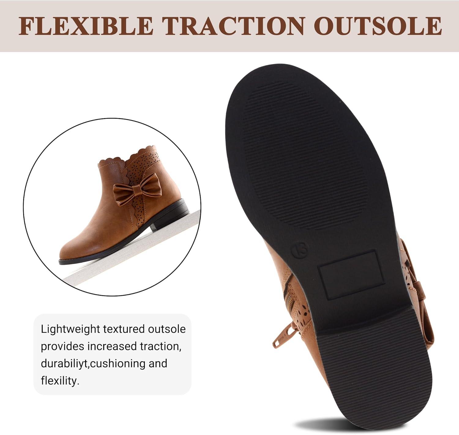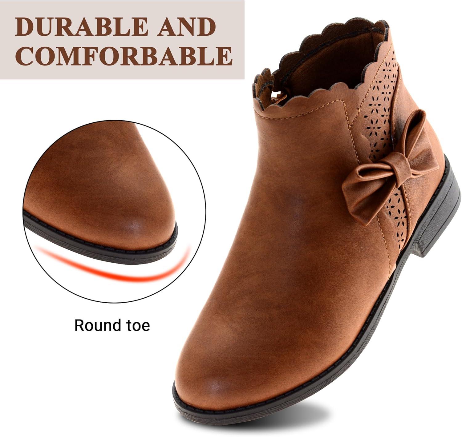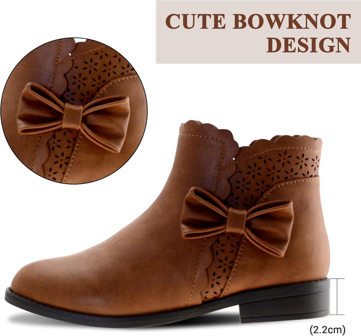 LseLom Girls Ankle Boots Kids Ankle Booties Bow Side Zipper Low Heel Outdoor Warm Shoes for Little Kids/Big Kids(Brown a)