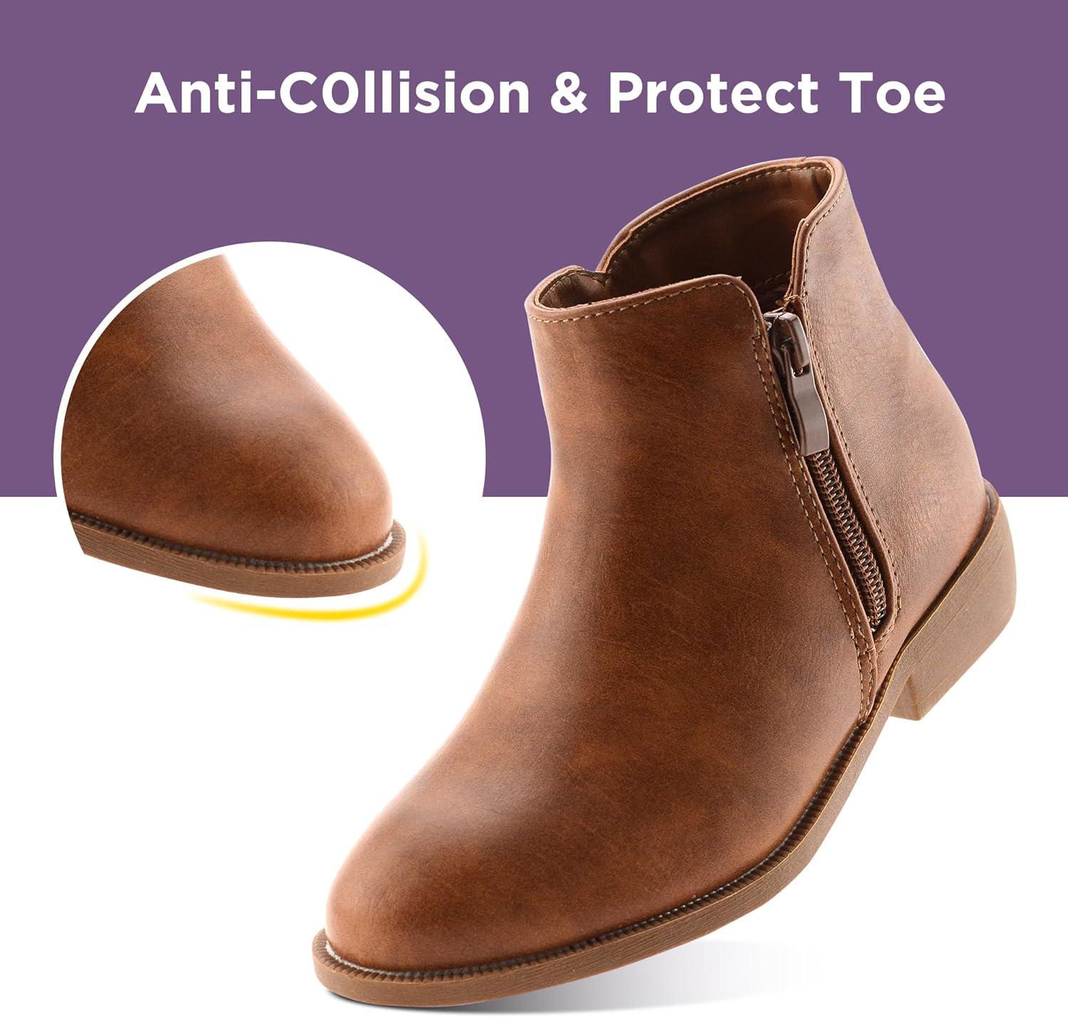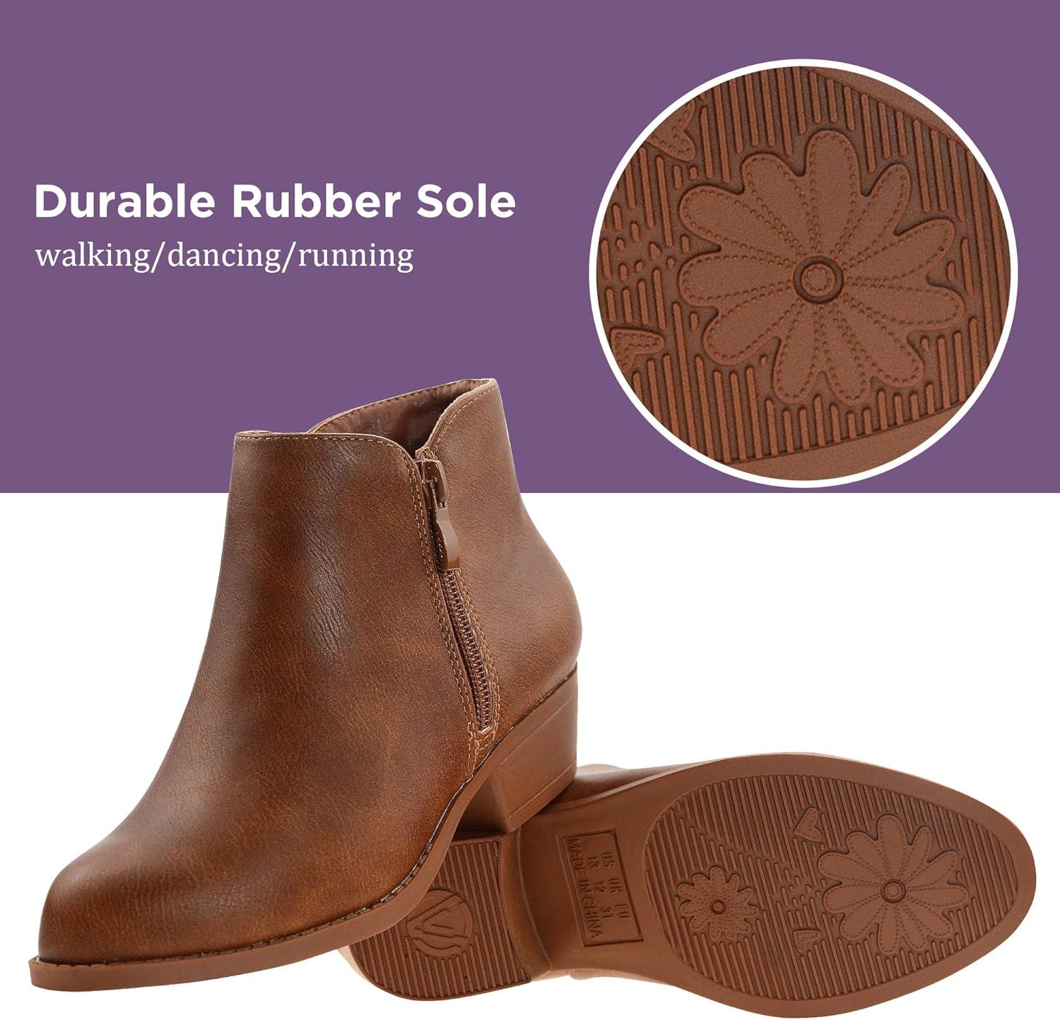 LseLom Girls Ankle Boots Low Heel Side Zipper Fall Winter Booties Outdoor Shoes for Little Kids/Big Kids(Brown a)