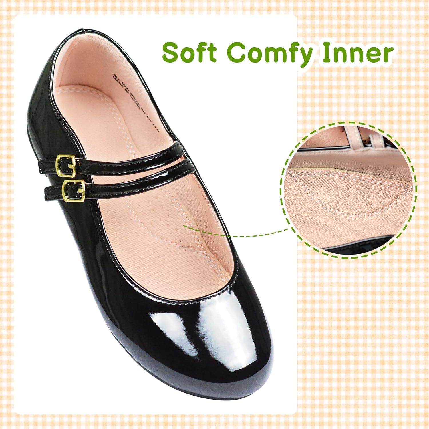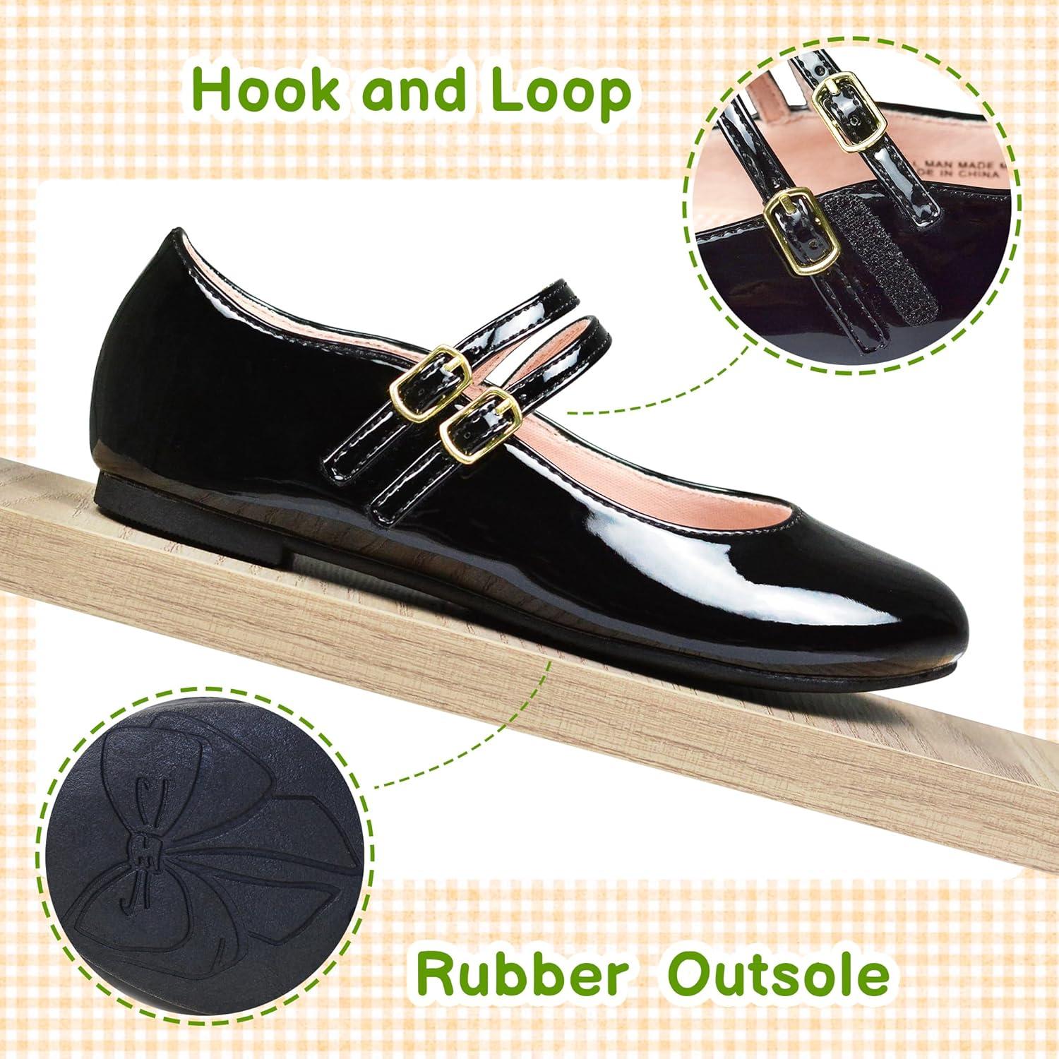 LseLom Girls Dress Shoes-Mary Jane Shoes for Girls Low Heel Princess Hook and Loop Dress Shoes Party Wedding Flats for Little/Big Kids(Black-b)