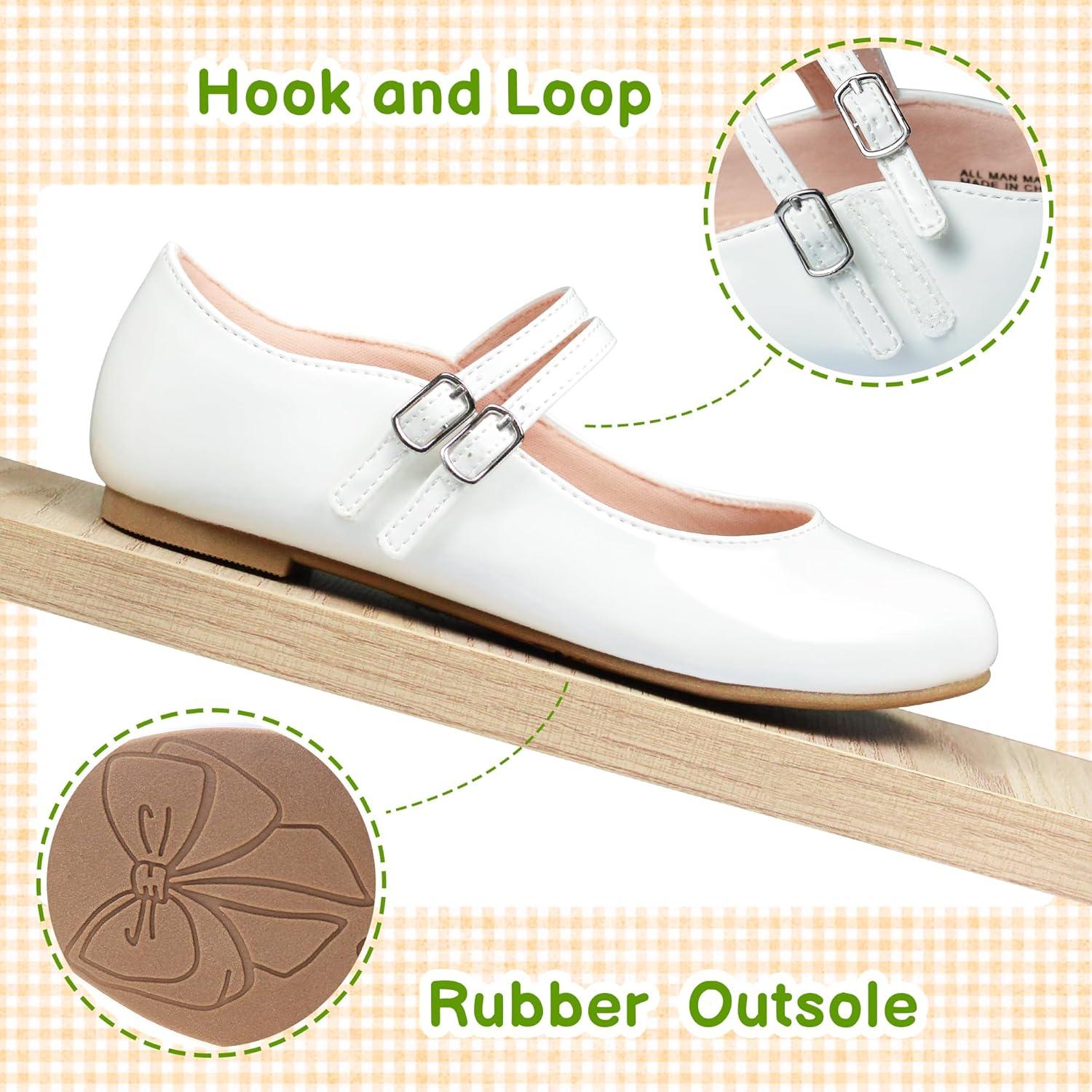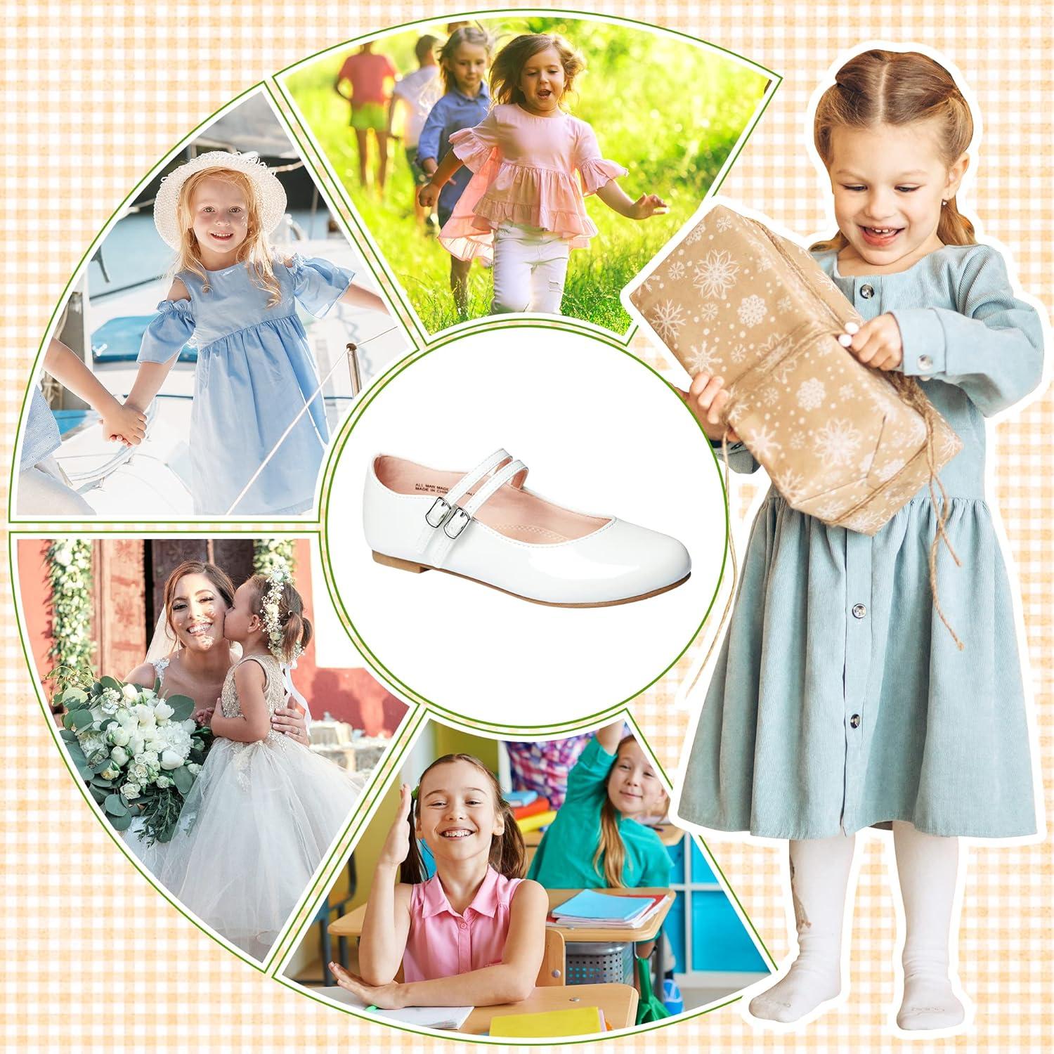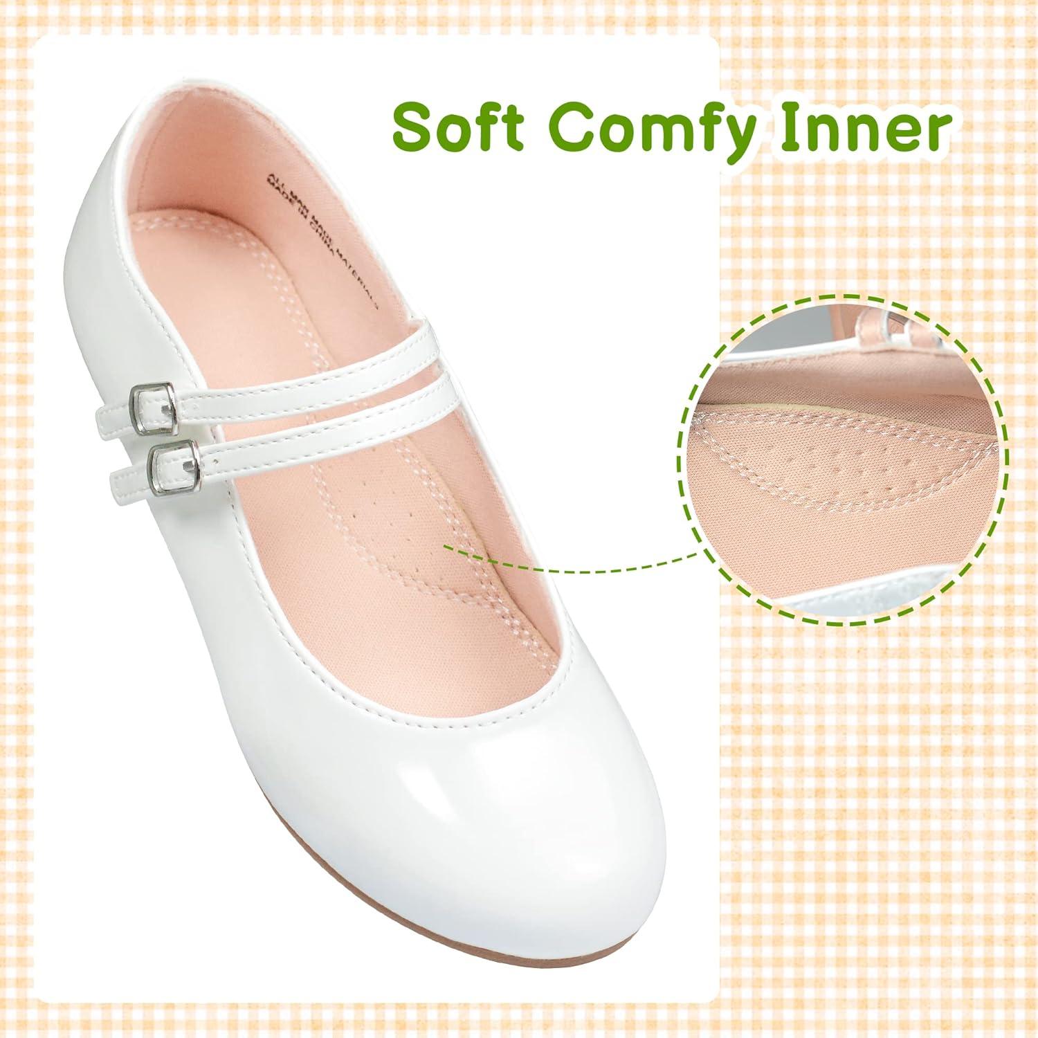 LseLom Girls Dress Shoes-Mary Jane Shoes for Girls Low Heel Princess Hook and Loop Dress Shoes Party Wedding Flats for Little/Big Kids(White-b)