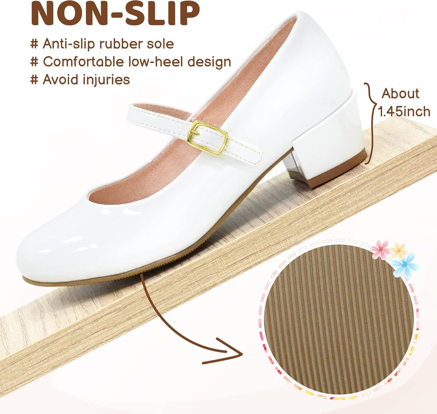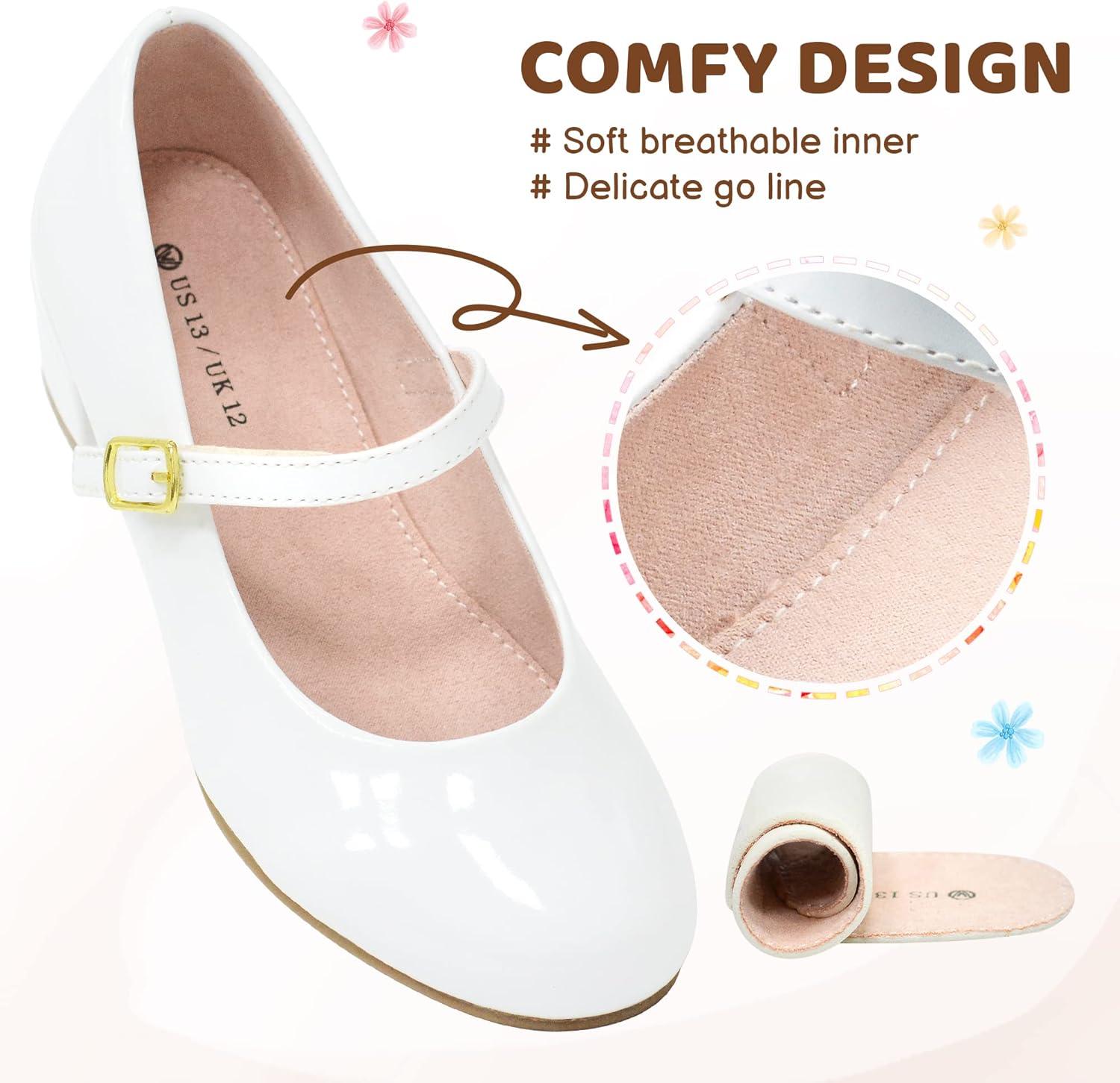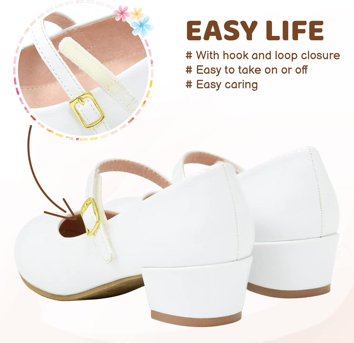 LseLom Girls Dress Shoes-Mary Jane Shoes for Girls Low Heel Princess Hook and Loop Dress Shoes Party Wedding Flats for Little/Big Kids(White Pearl)