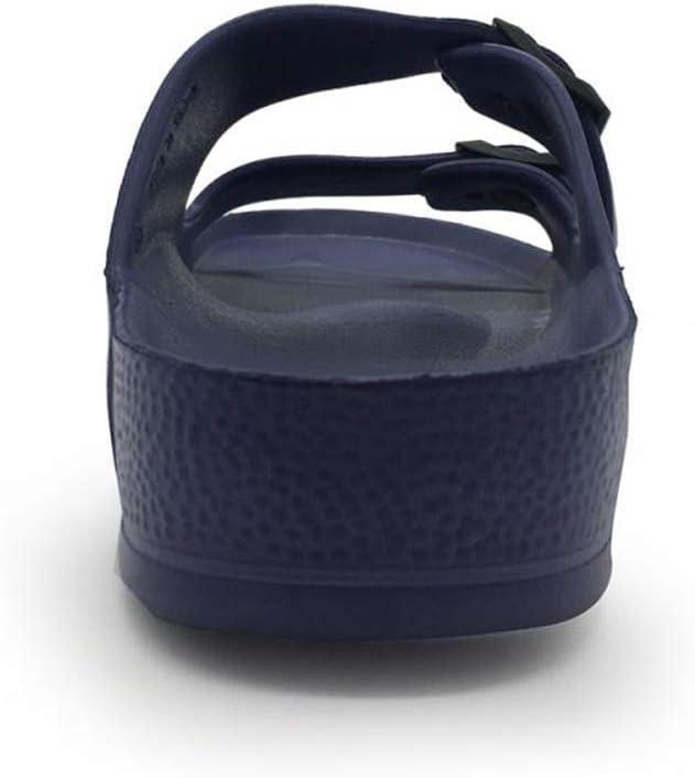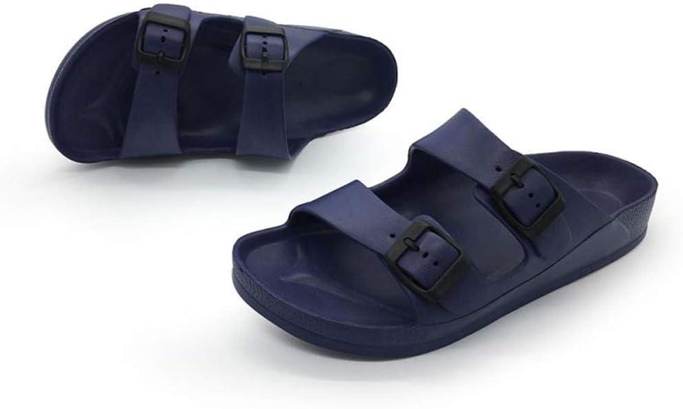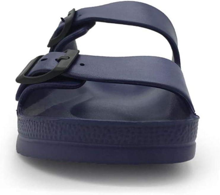 Luffymomo Adjustable Slip on Eva Double Buckle Slides Comfort Footbed Thong Sandals for Womens(Navy-a)