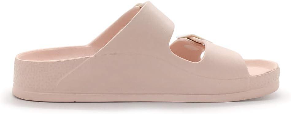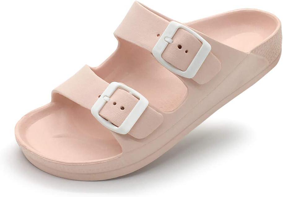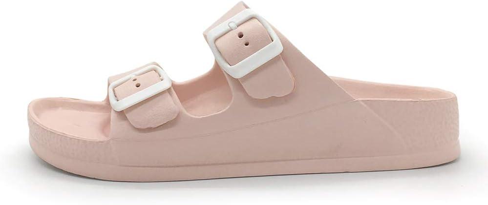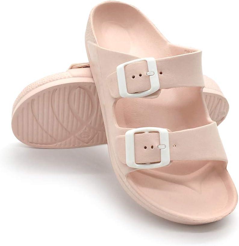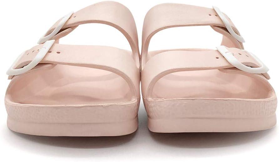 Luffymomo Adjustable Slip on Eva Double Buckle Slides Comfort Footbed Thong Sandals for Womens(Pink-a)