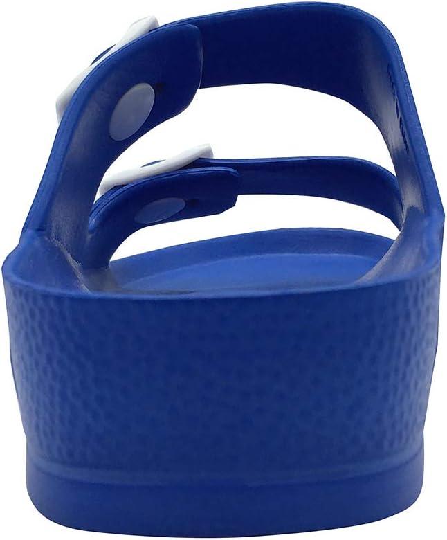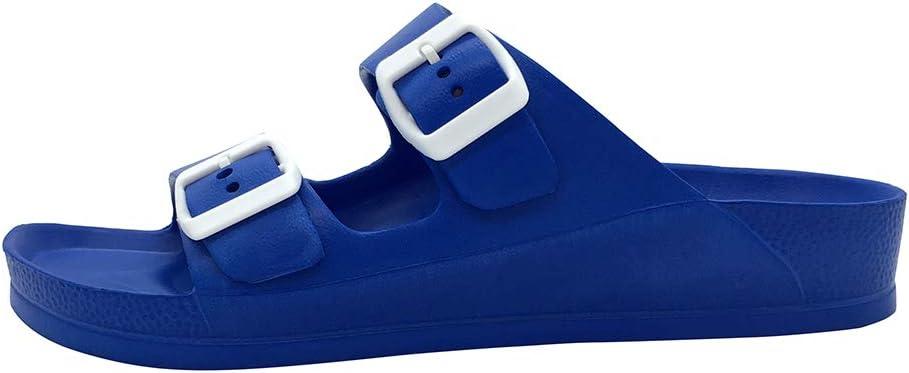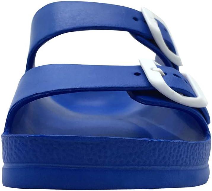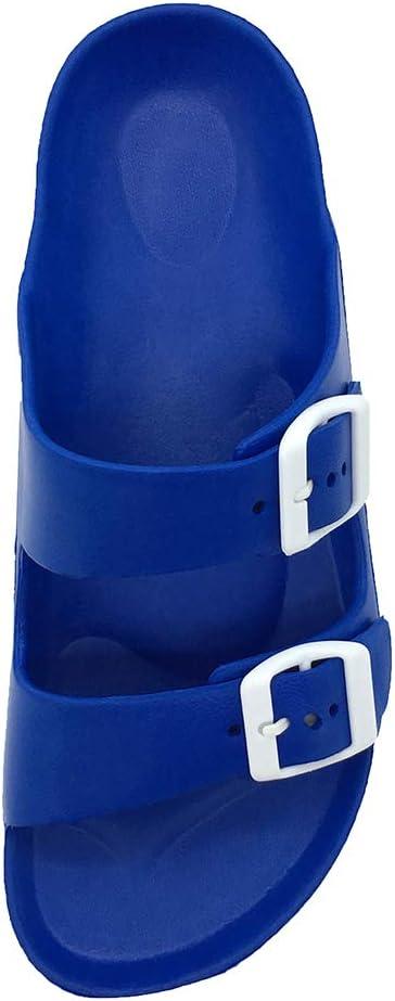 Luffymomo Adjustable Slip on Eva Double Buckle Slides Comfort Footbed Thong Sandals for Womens(Royal-a)