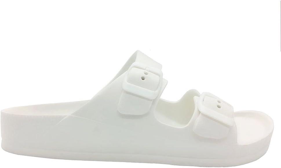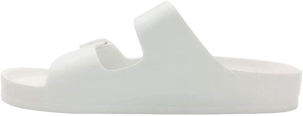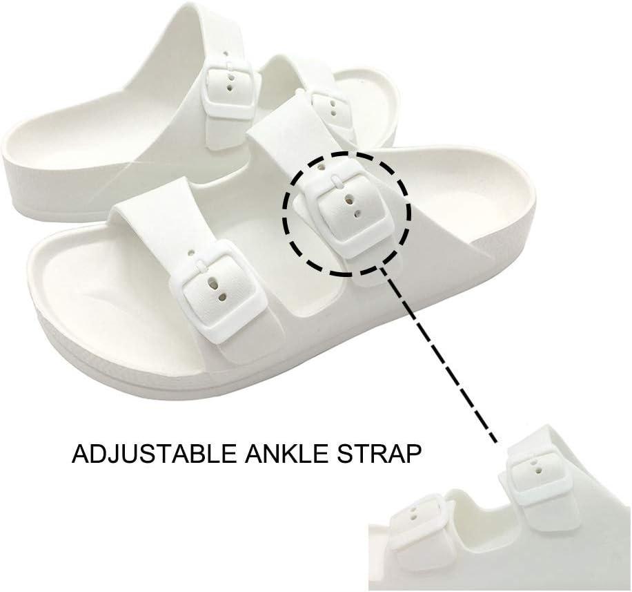 Luffymomo Adjustable Slip on Eva Double Buckle Slides Comfort Footbed Thong Sandals for Womens(White-a)