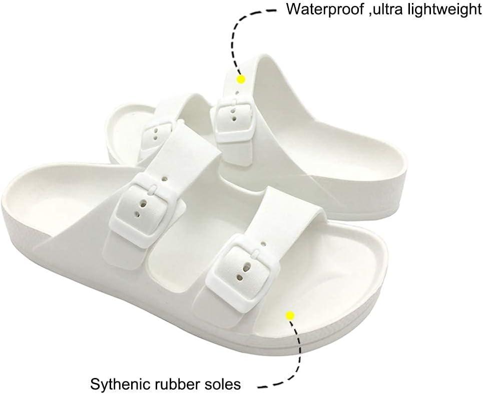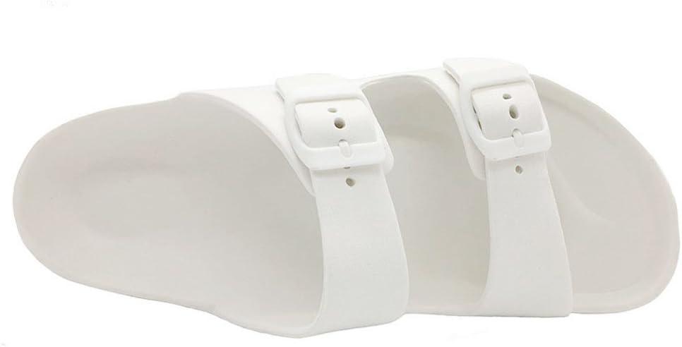Luffymomo Adjustable Slip on Eva Double Buckle Slides for Mens(White)
