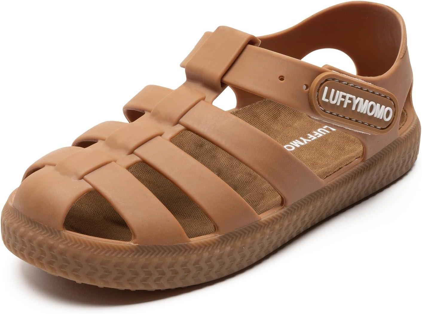 Luffymomo Boys Girls Closed Toe Sandals Lightweight Beach Water Shoes Adjustable Summer Outdoor Sandal for Toddler/Little Kids(Brown)