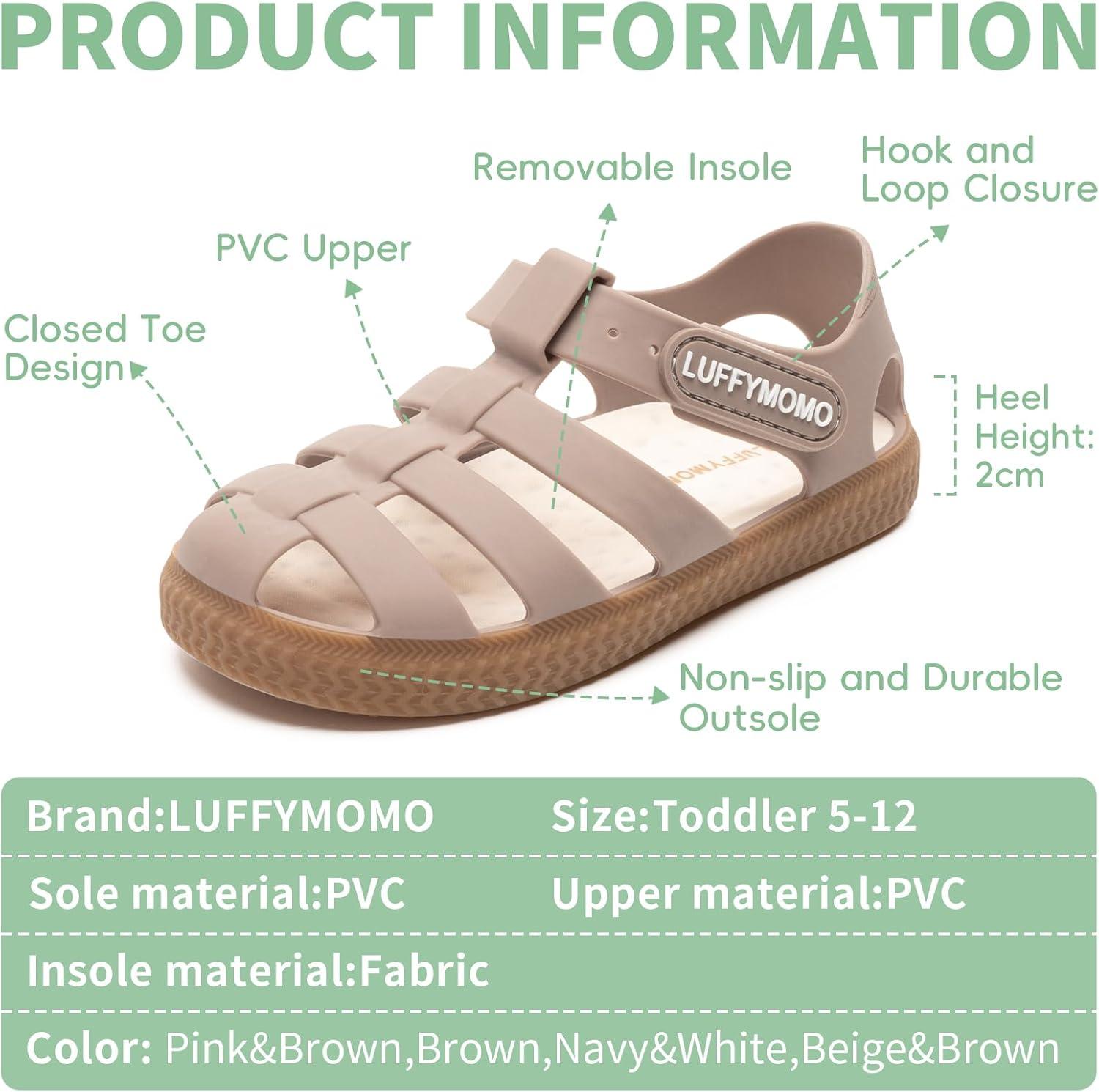Luffymomo Boys Girls Closed Toe Sandals Lightweight Beach Water Shoes Adjustable Summer Outdoor Sandal for Toddler/Little Kids(Pink/Brown)