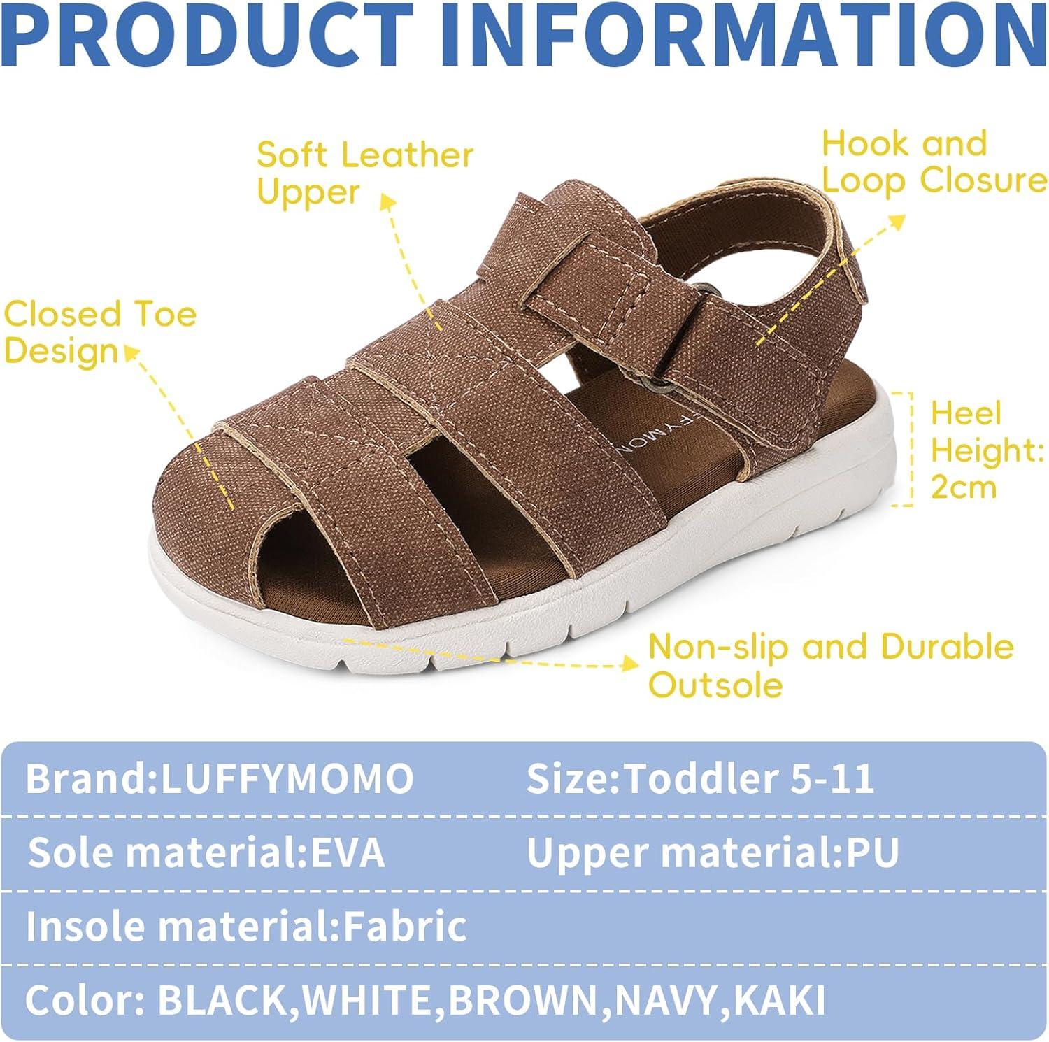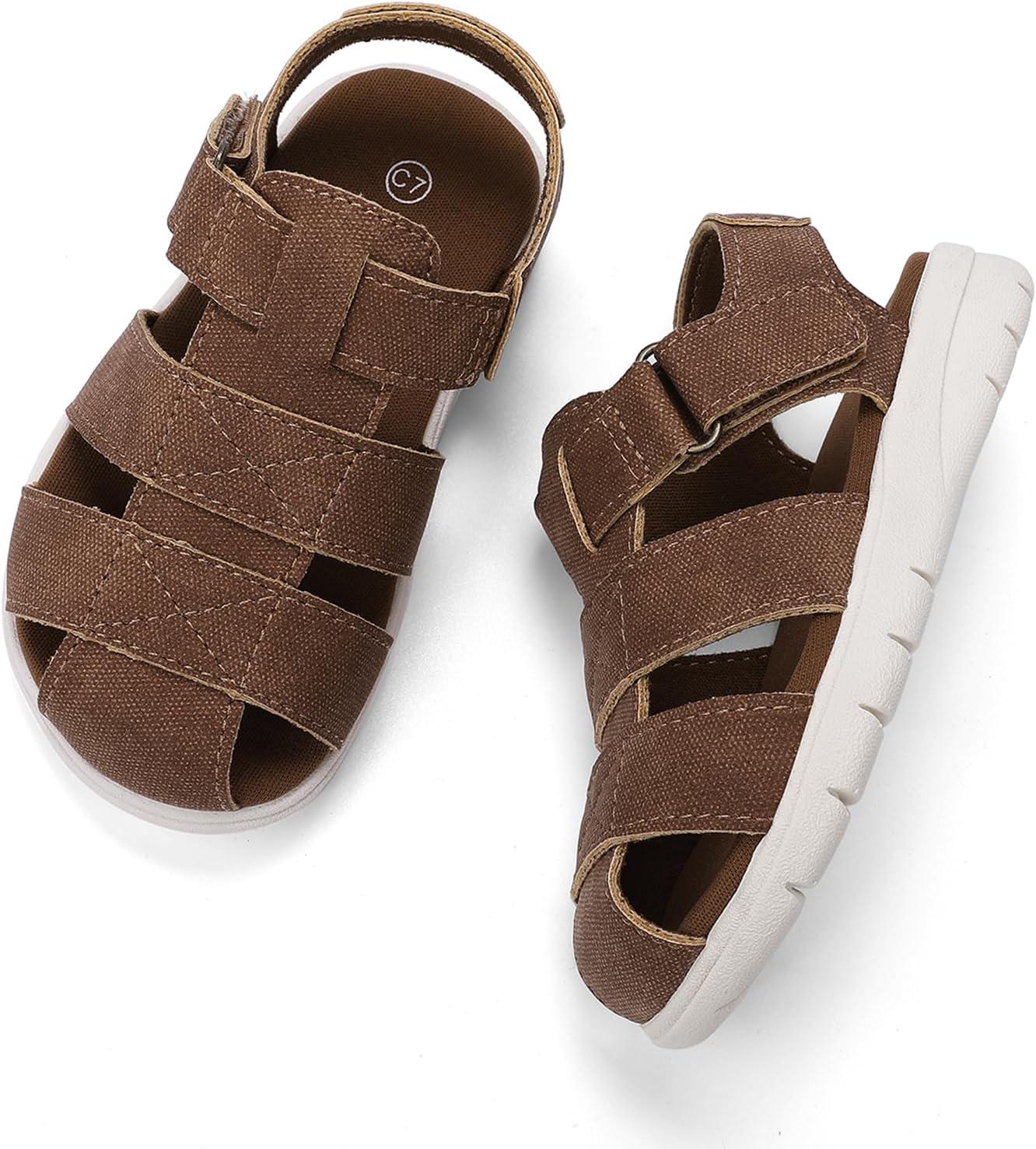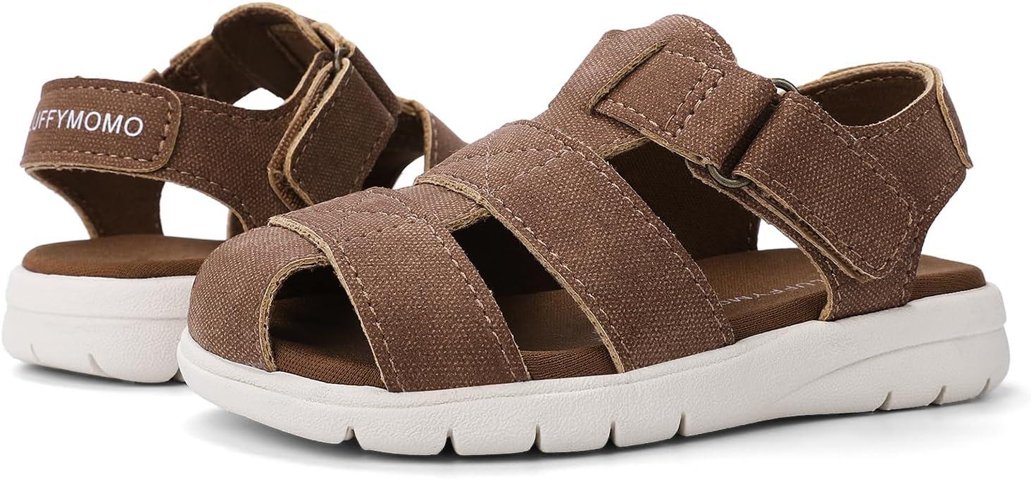 Luffymomo Boys Girls Sandals Closed Toe Lightweight Shoes Adjustable Beach Summer Sandal for Toddler Kids(Brown)