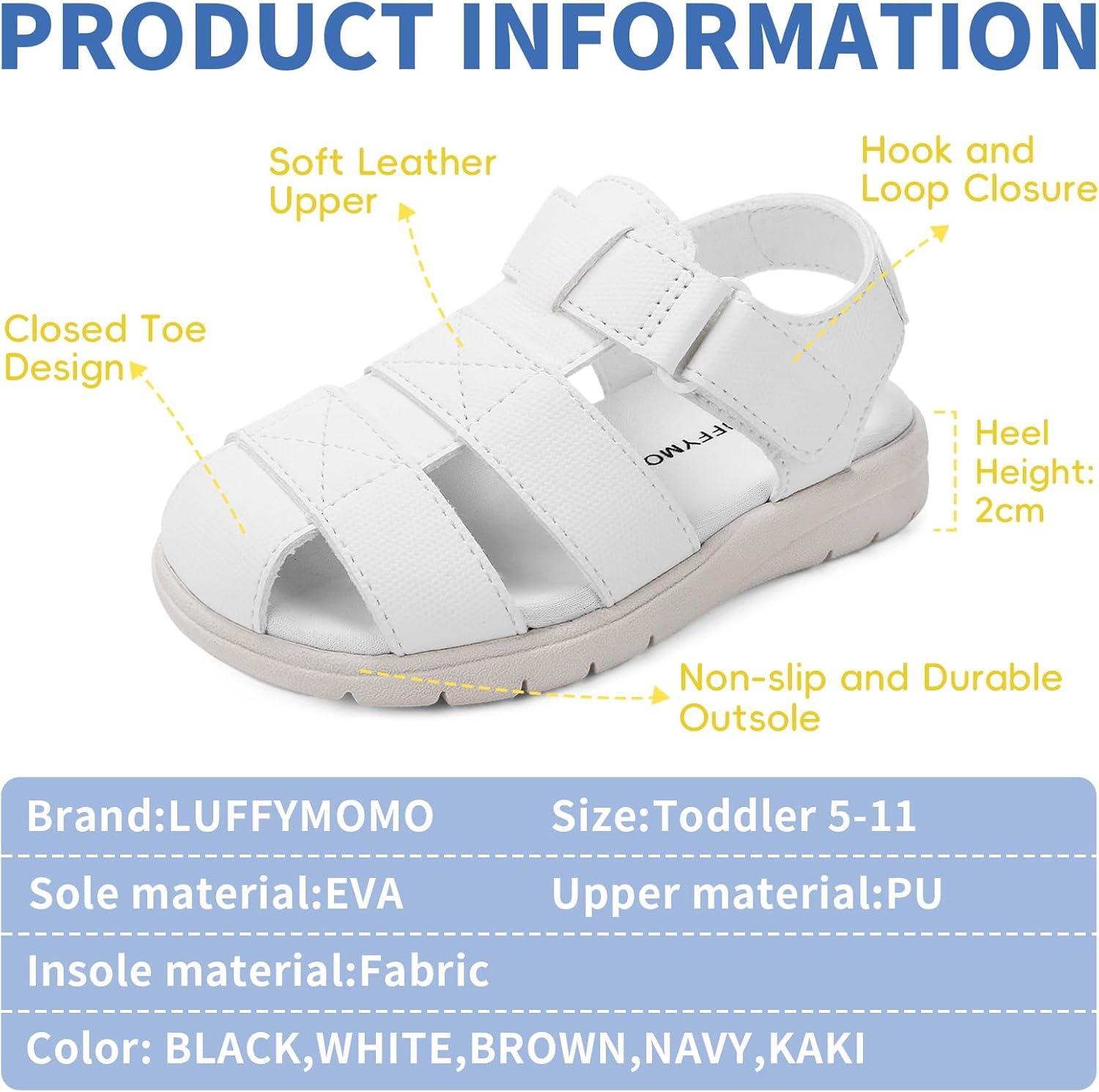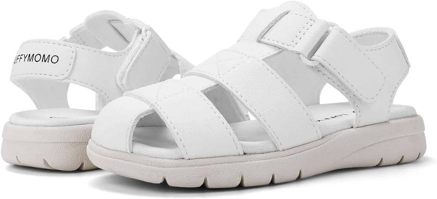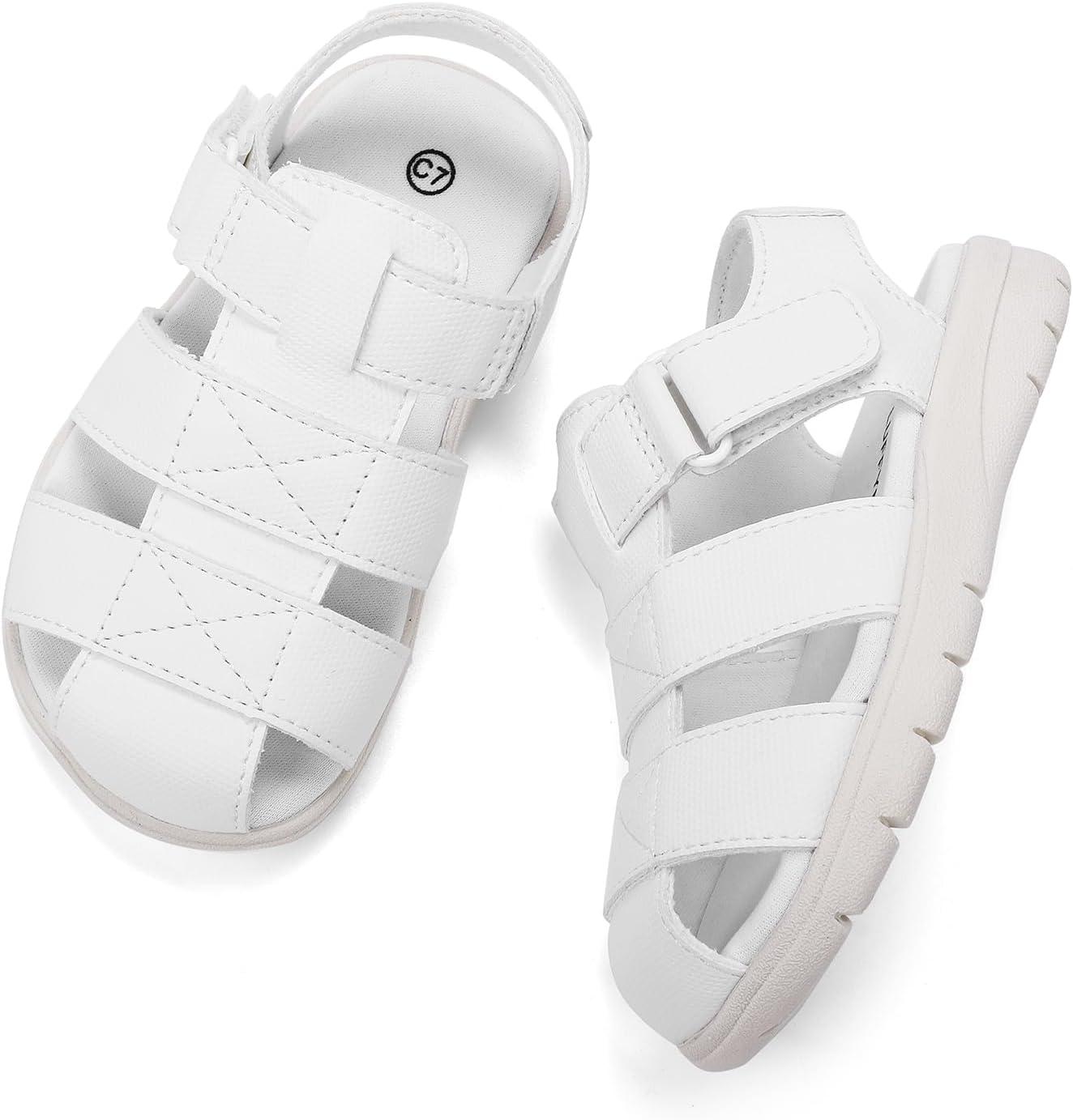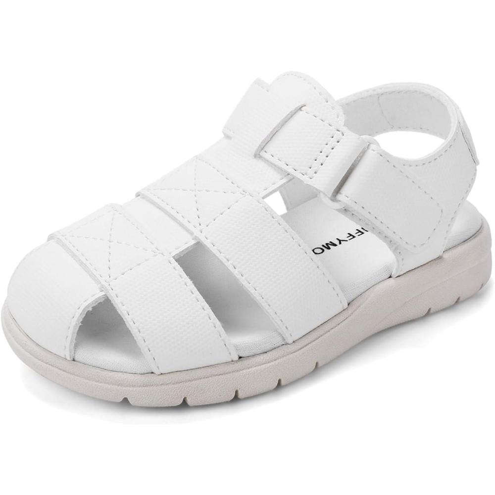 Luffymomo Boys Girls Sandals Closed Toe Lightweight Shoes Adjustable Beach Summer Sandal for Toddler Kids(White)