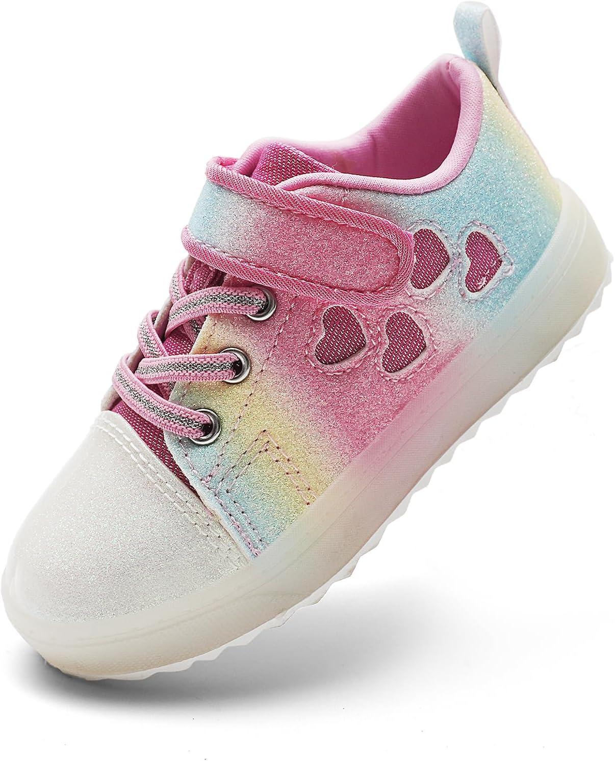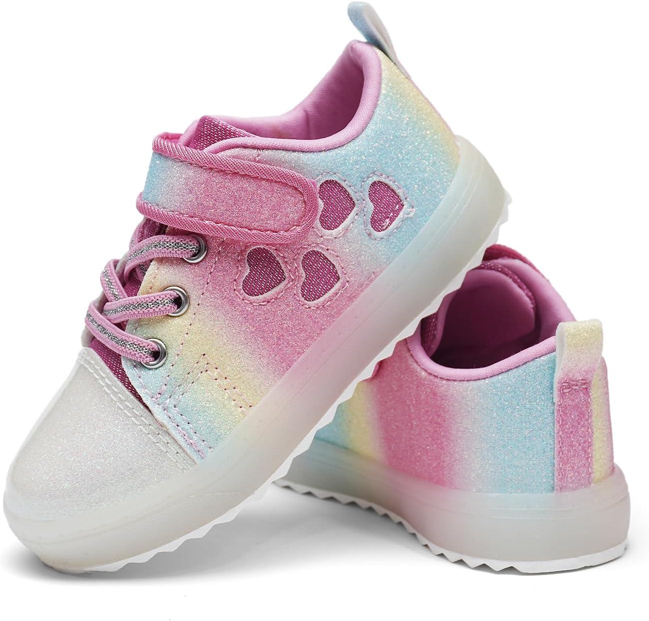 Luffymomo Girls Casual Sneakers Slip on Comfortable Walking Shoes Sparkle Glitter Fashion Sneakers (Toddler/Little Kids)(Rainbow)