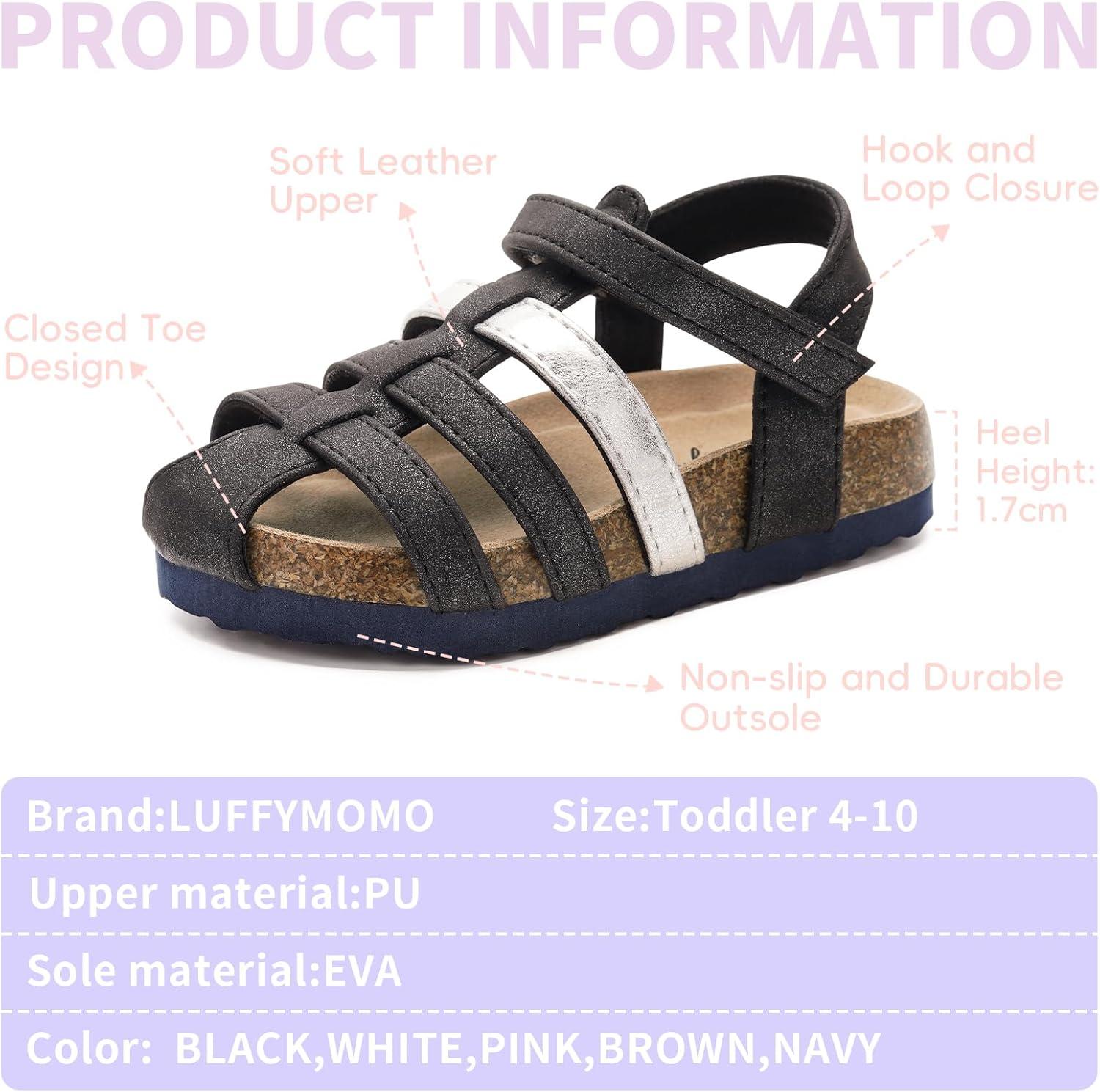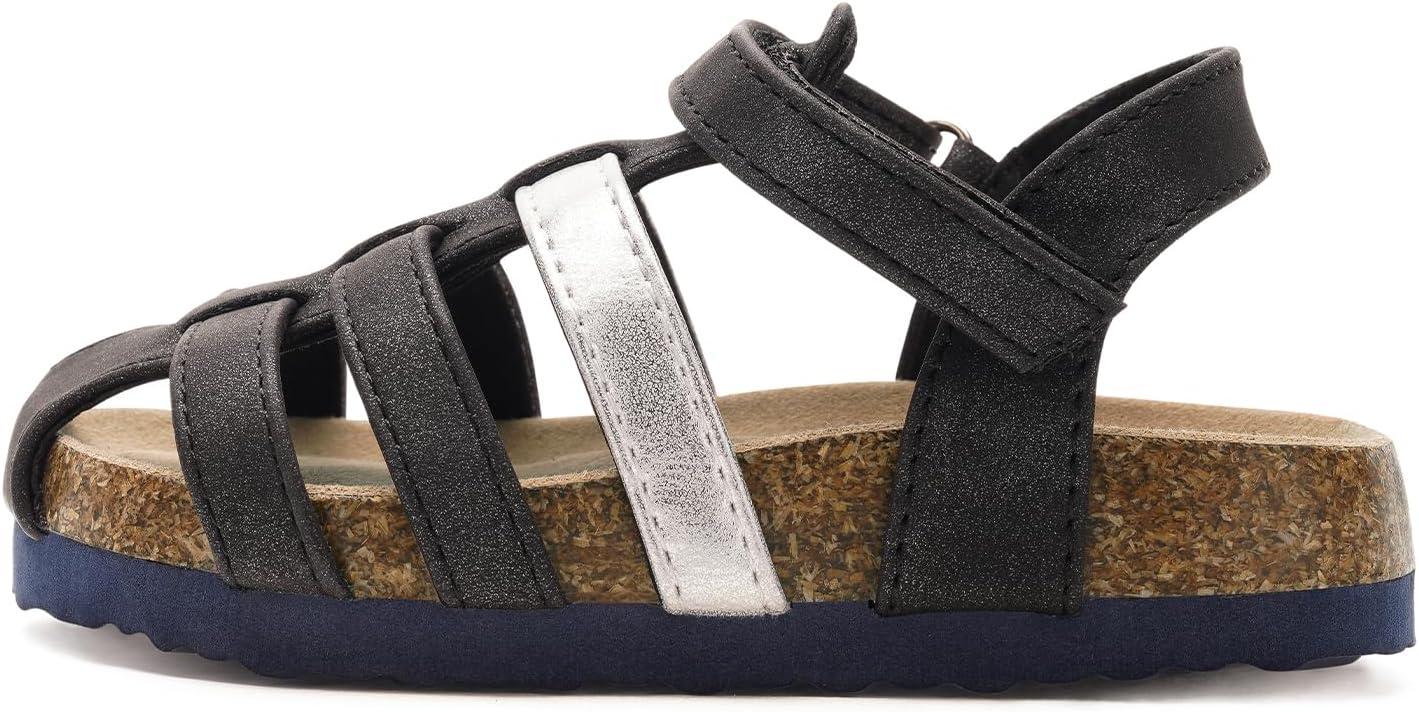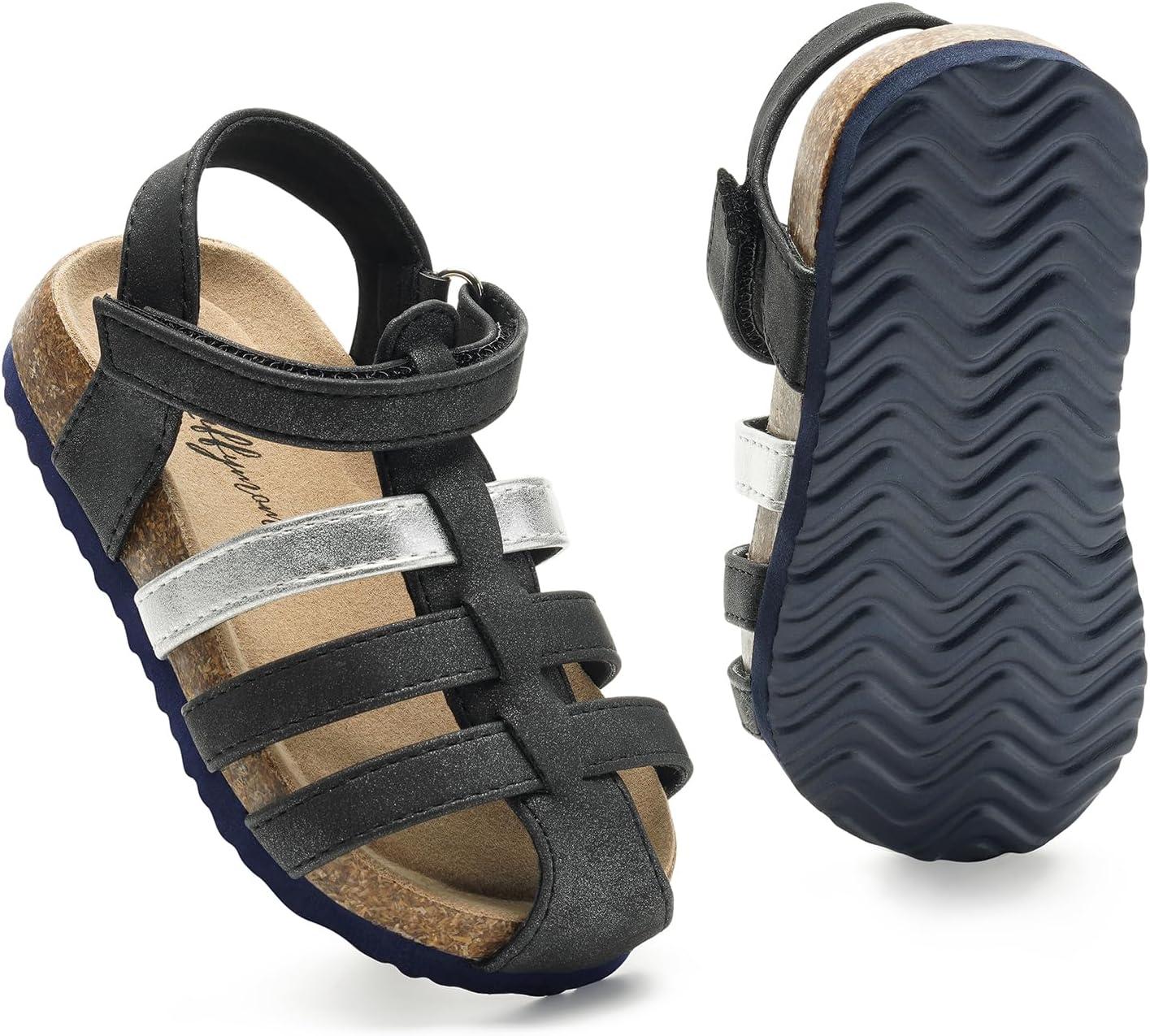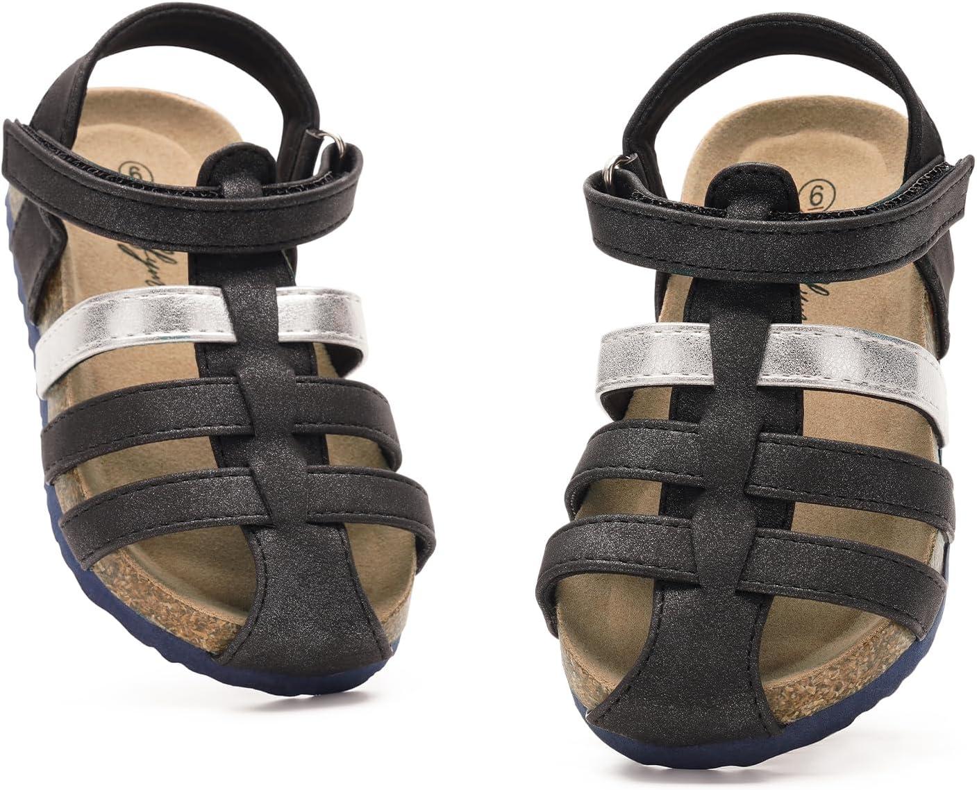 Luffymomo Girls Summer Sandals,Closed Toe Slides Outdoor/Indoor Shoes for Toddler/Little Kid(Black S)