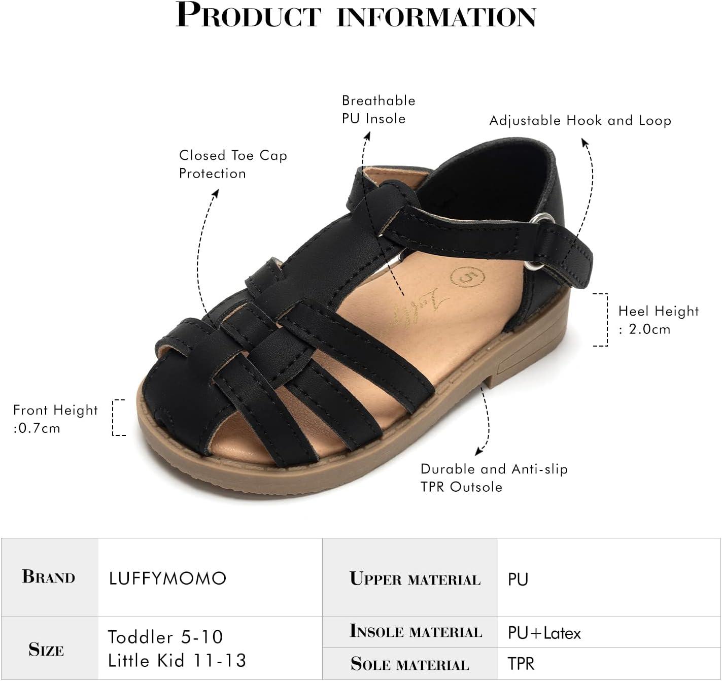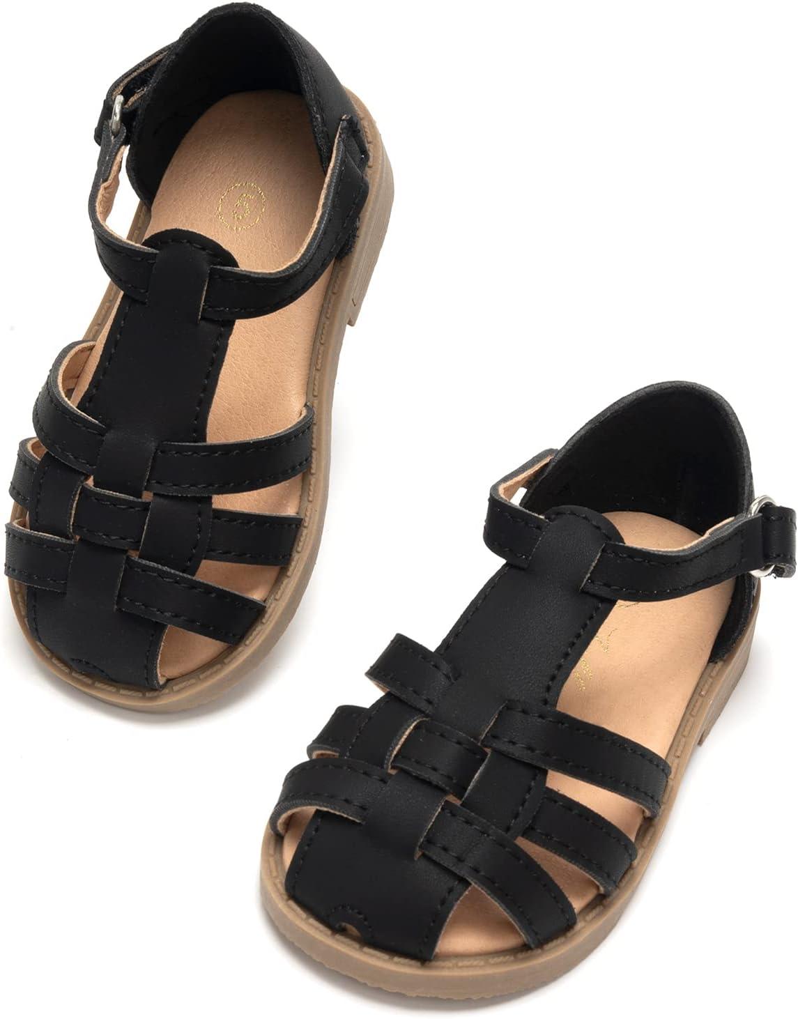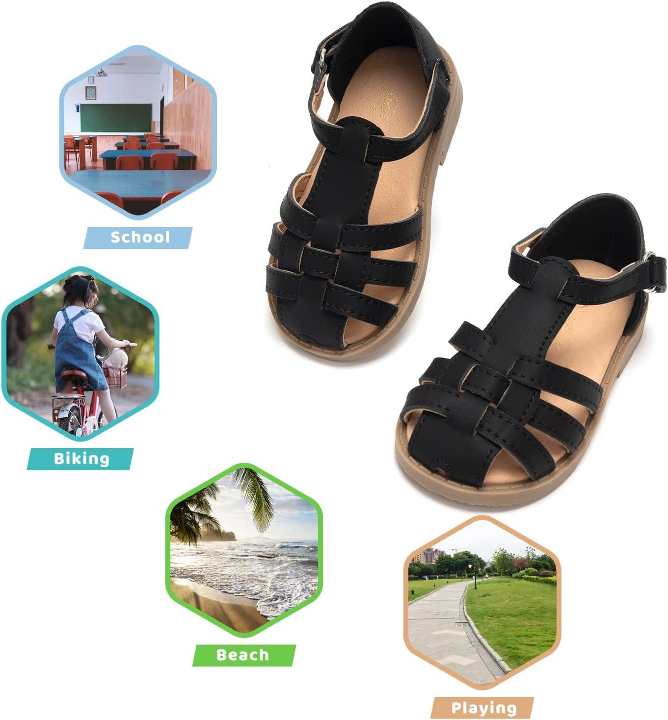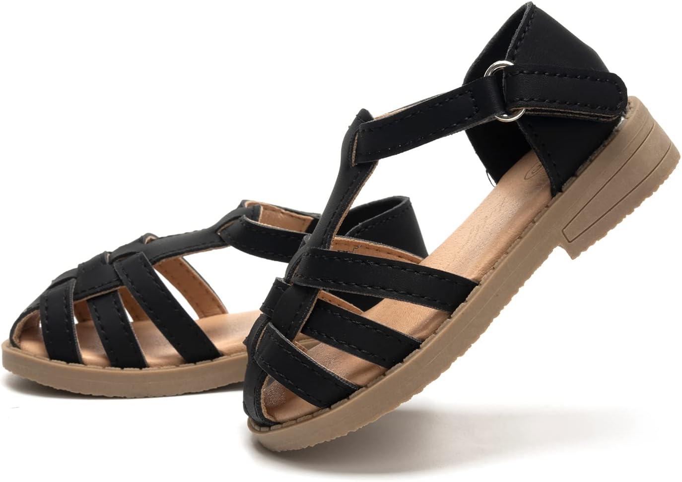 Luffymomo Girls Summer Sandals,Closed Toe Slides Outdoor/Indoor Shoes for Toddler/Little Kid(Black)