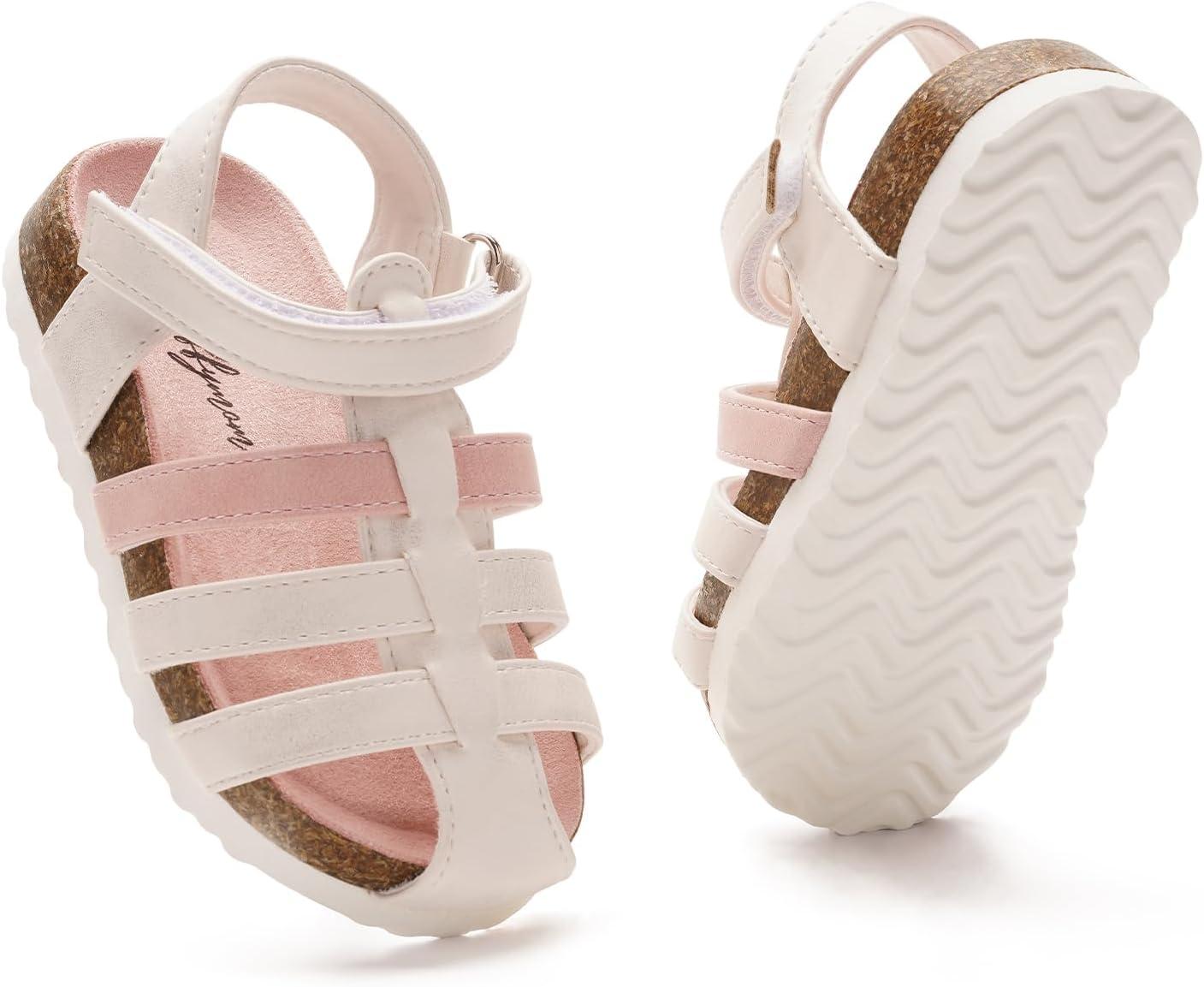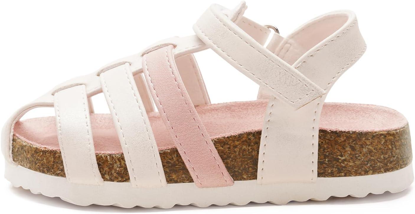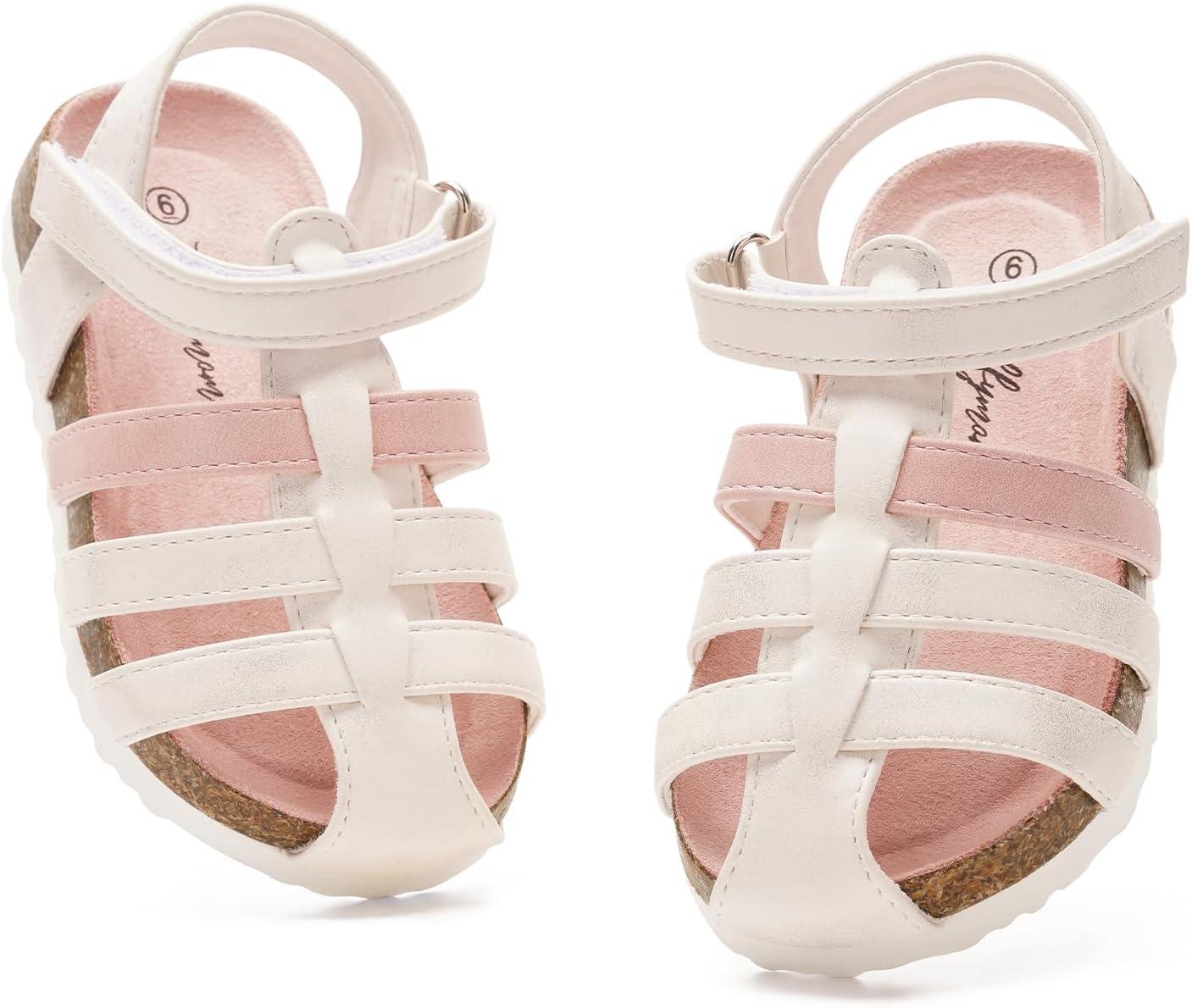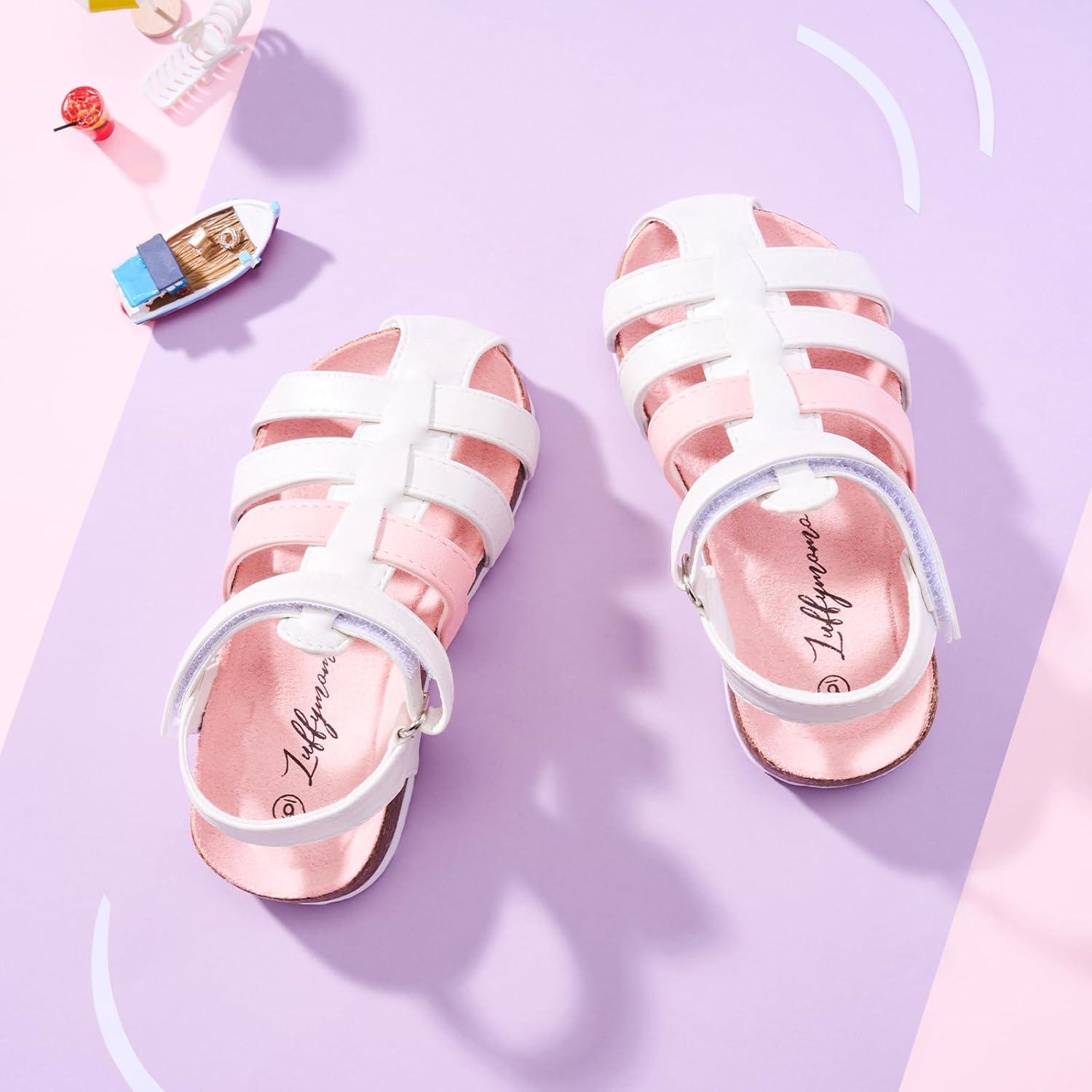 Luffymomo Girls Summer Sandals,Closed Toe Slides Outdoor/Indoor Shoes for Toddler/Little Kid(White S)