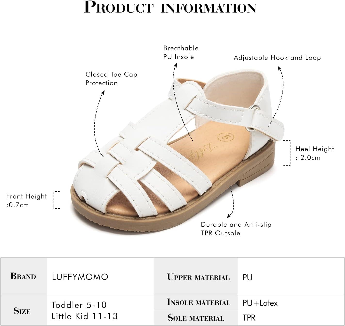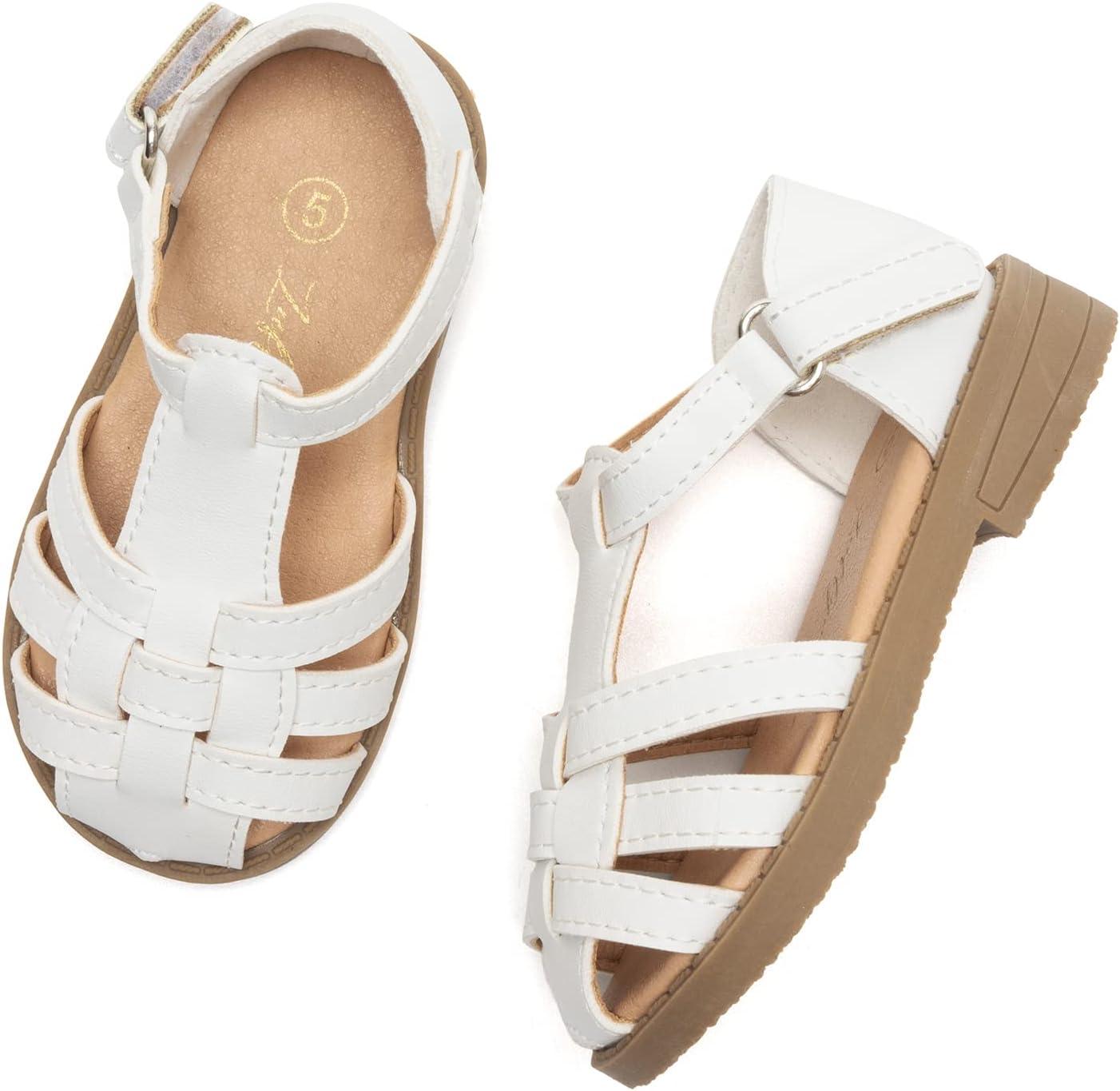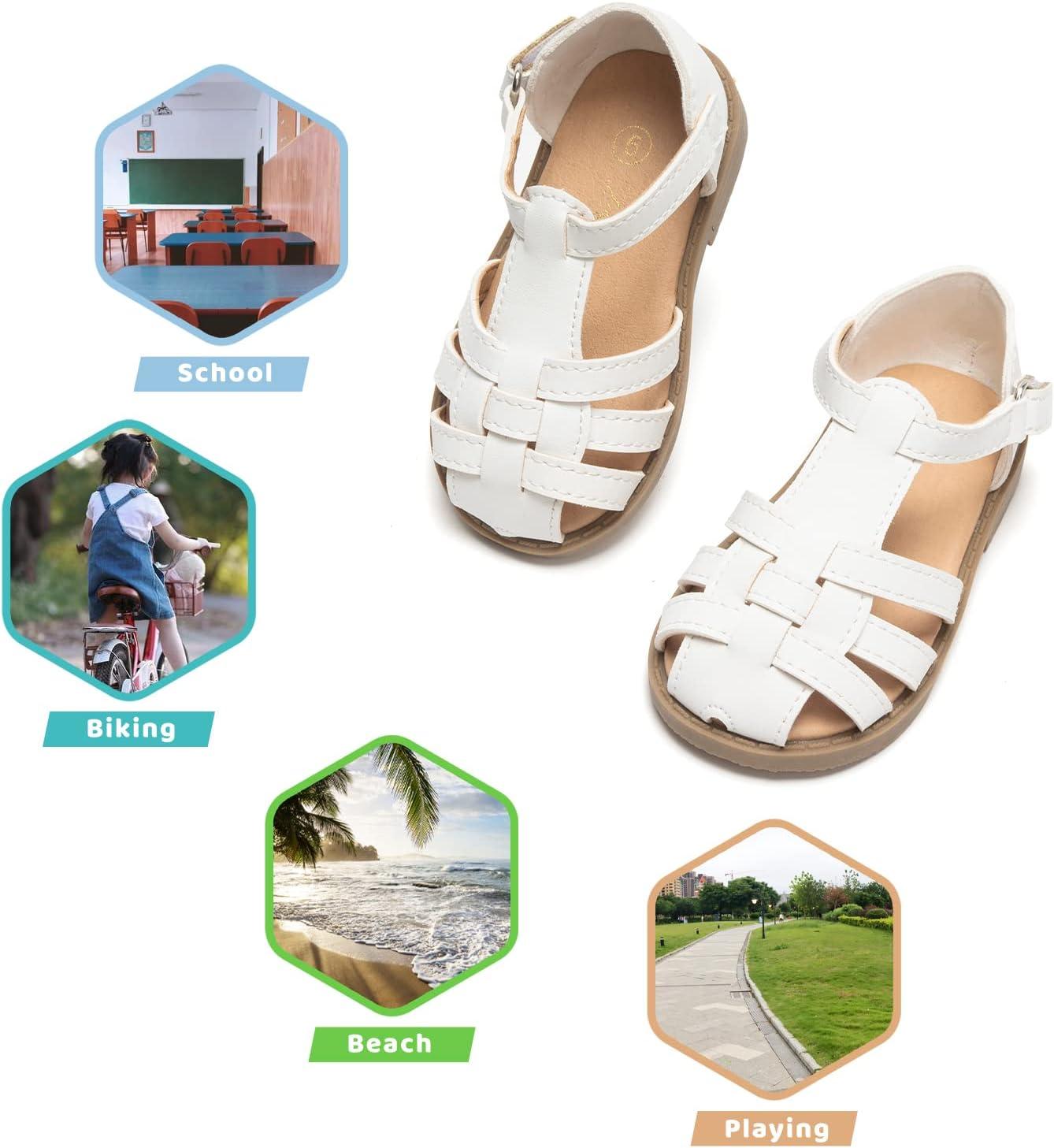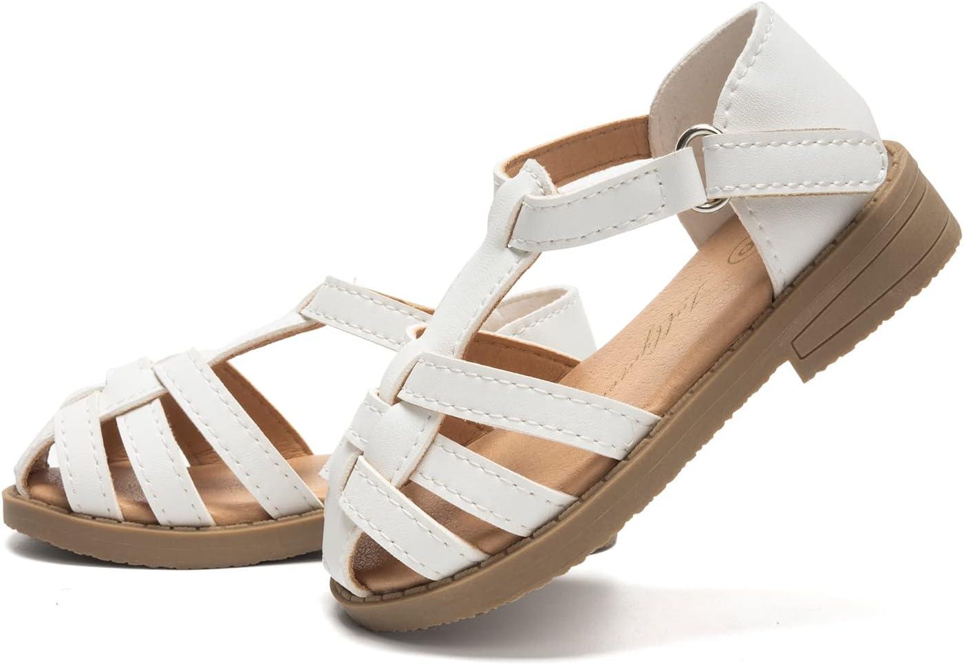 Luffymomo Girls Summer Sandals,Closed Toe Slides Outdoor/Indoor Shoes for Toddler/Little Kid(White)