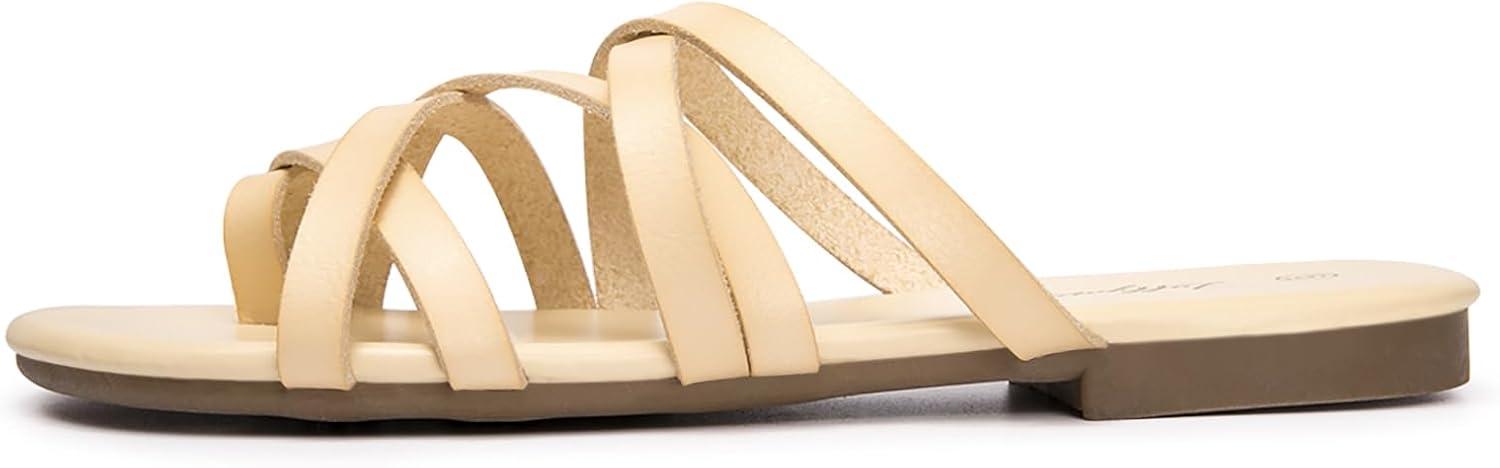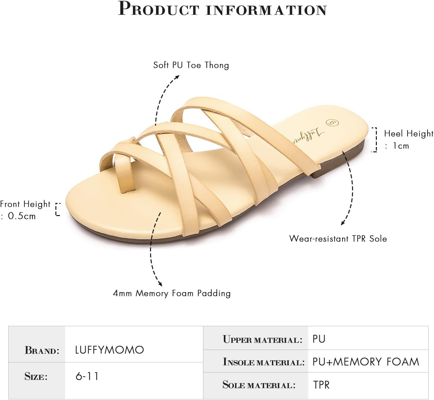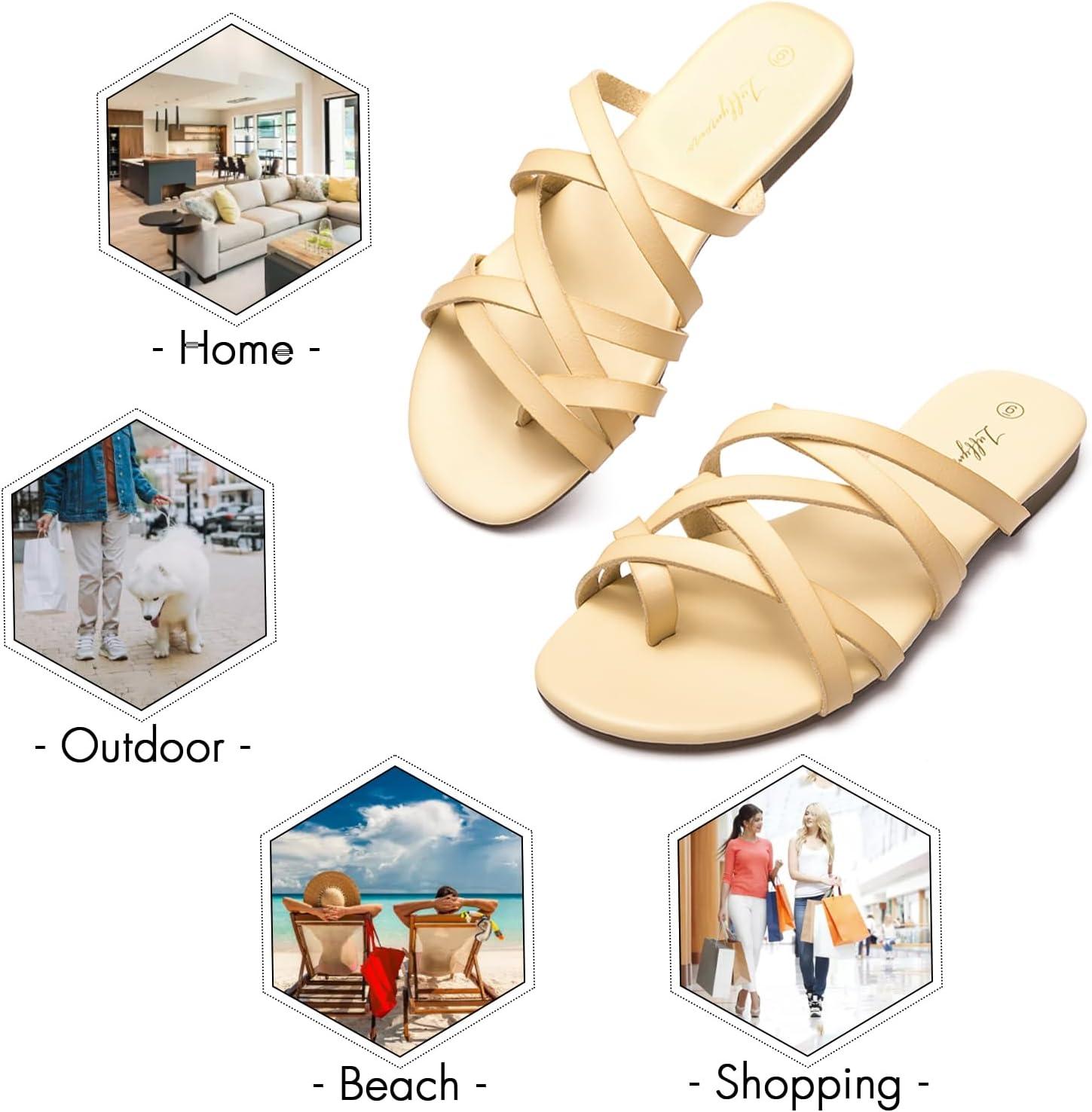 Luffymomo Women’s Elastic Strap Flat Sandals Casual Summer Open Toe Sandal(Beige N)