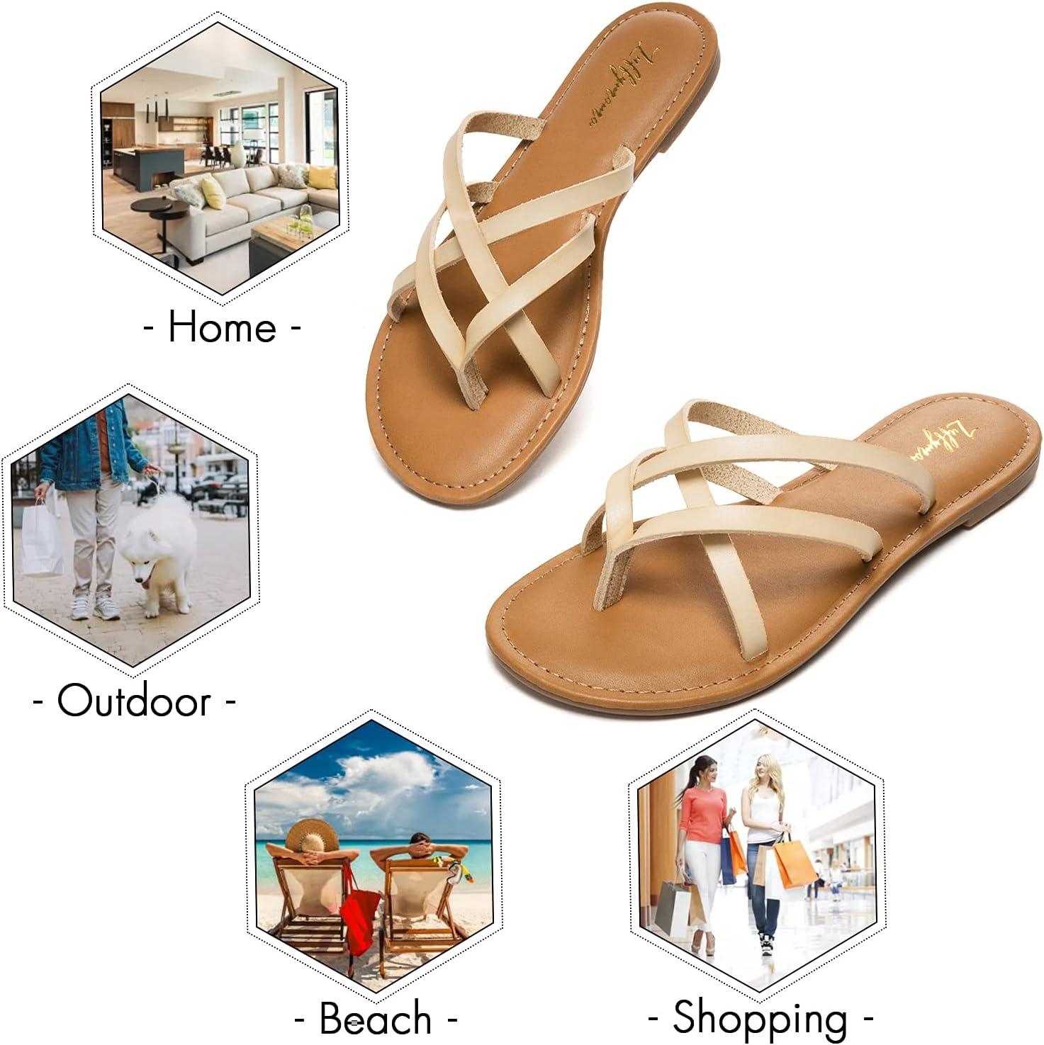 Luffymomo Women’s Elastic Strap Flat Sandals Casual Summer Open Toe Sandal(Beige)