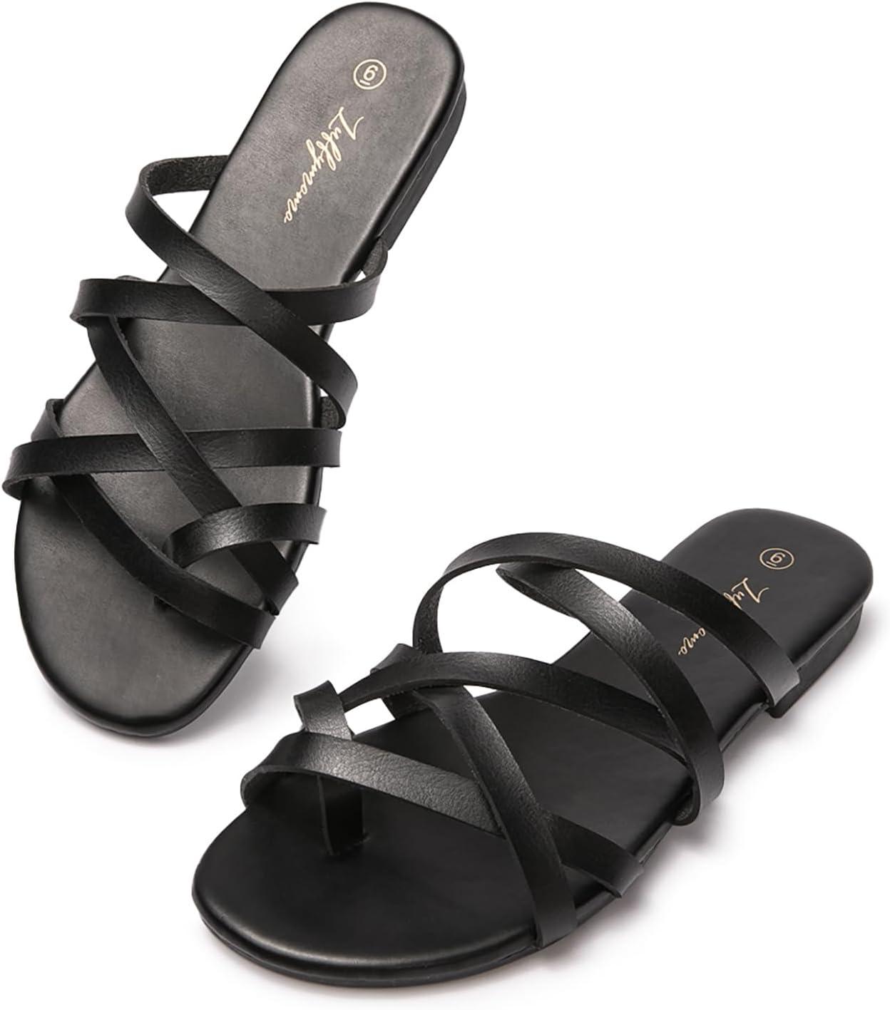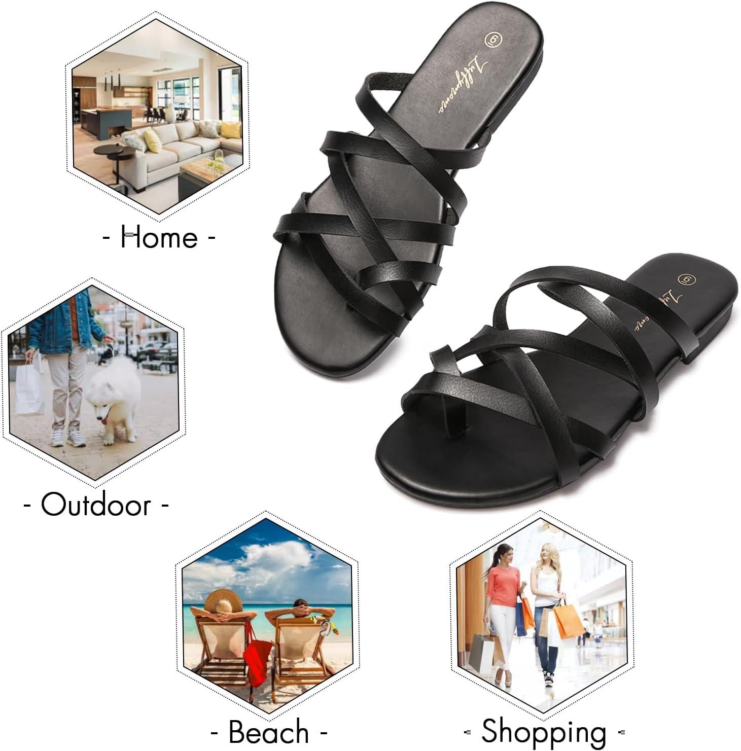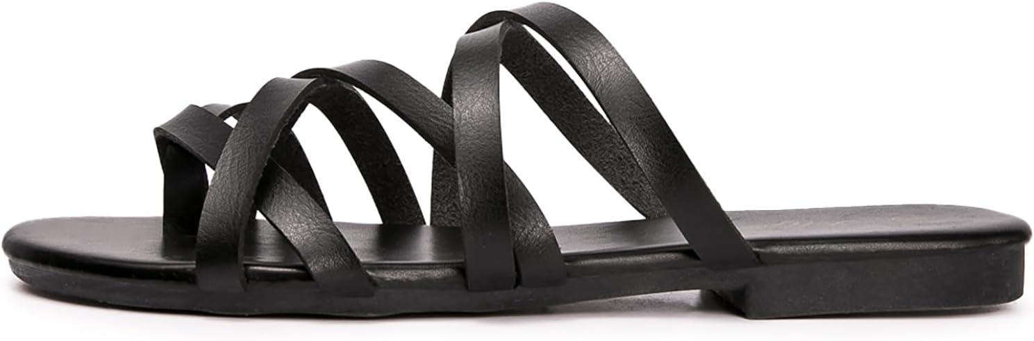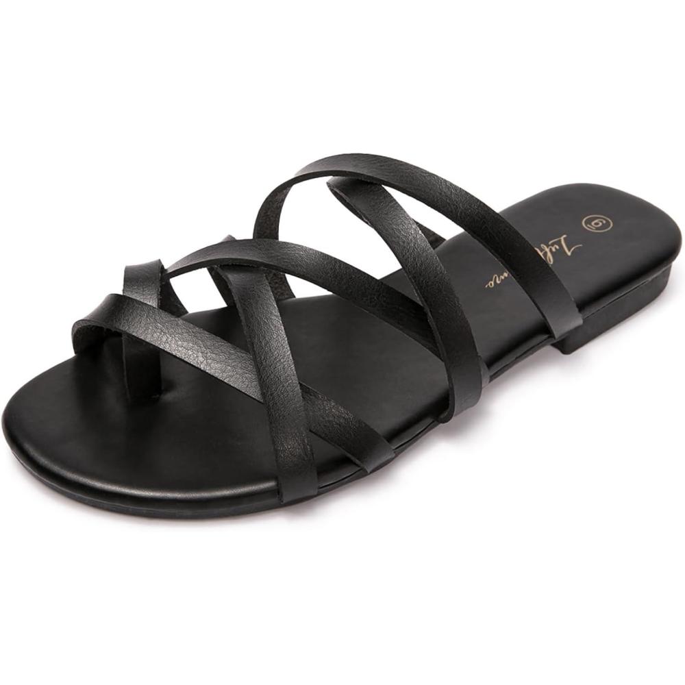 Luffymomo Women’s Elastic Strap Flat Sandals Casual Summer Open Toe Sandal(Black N)