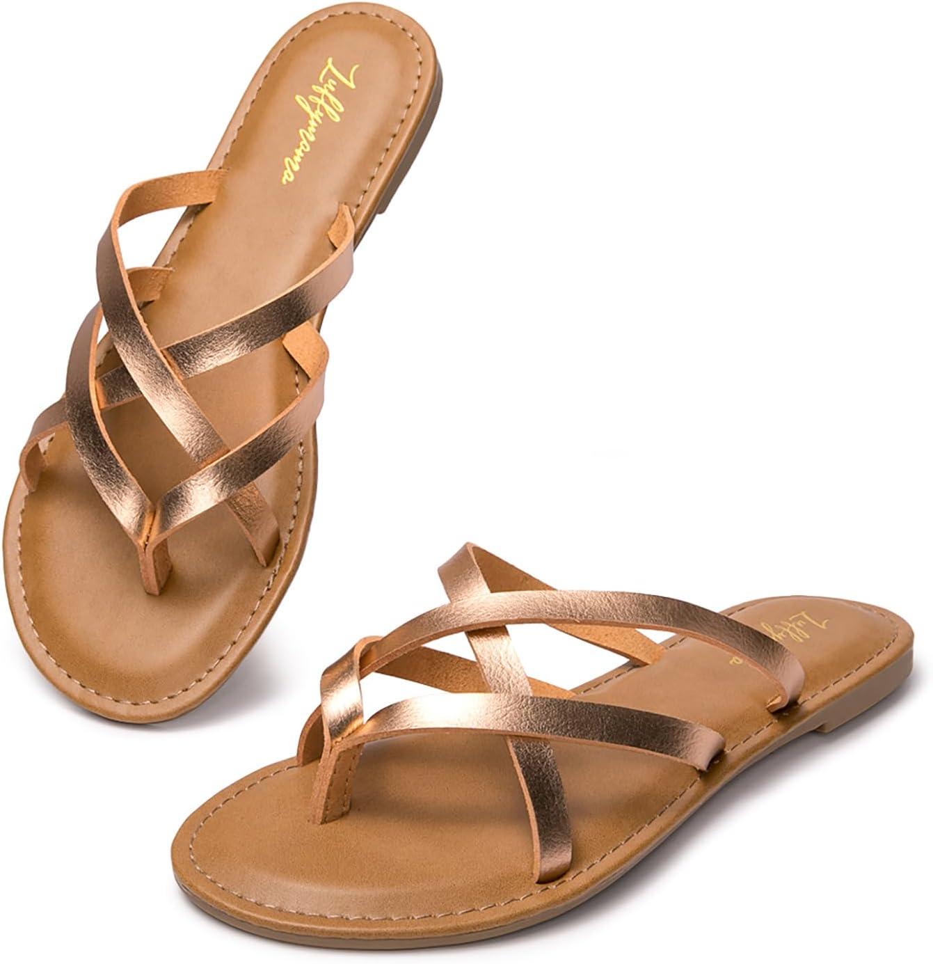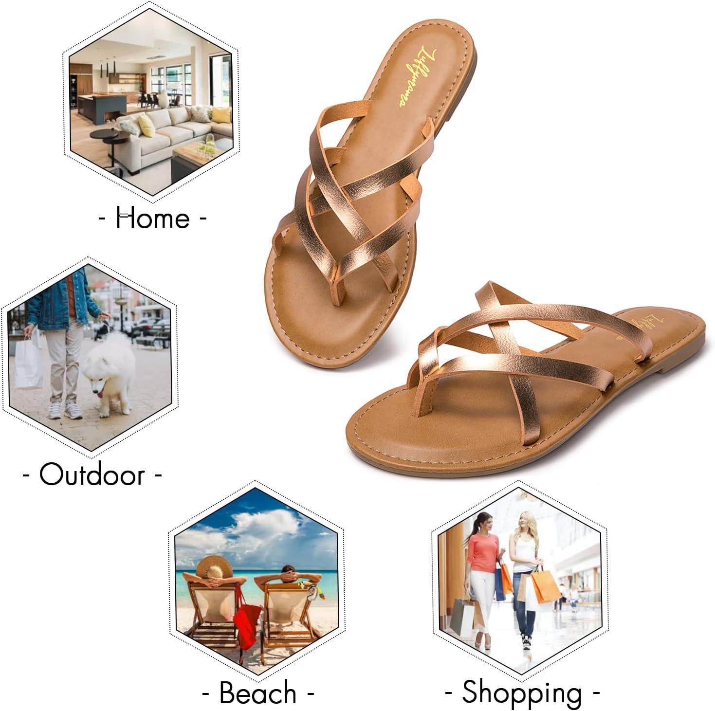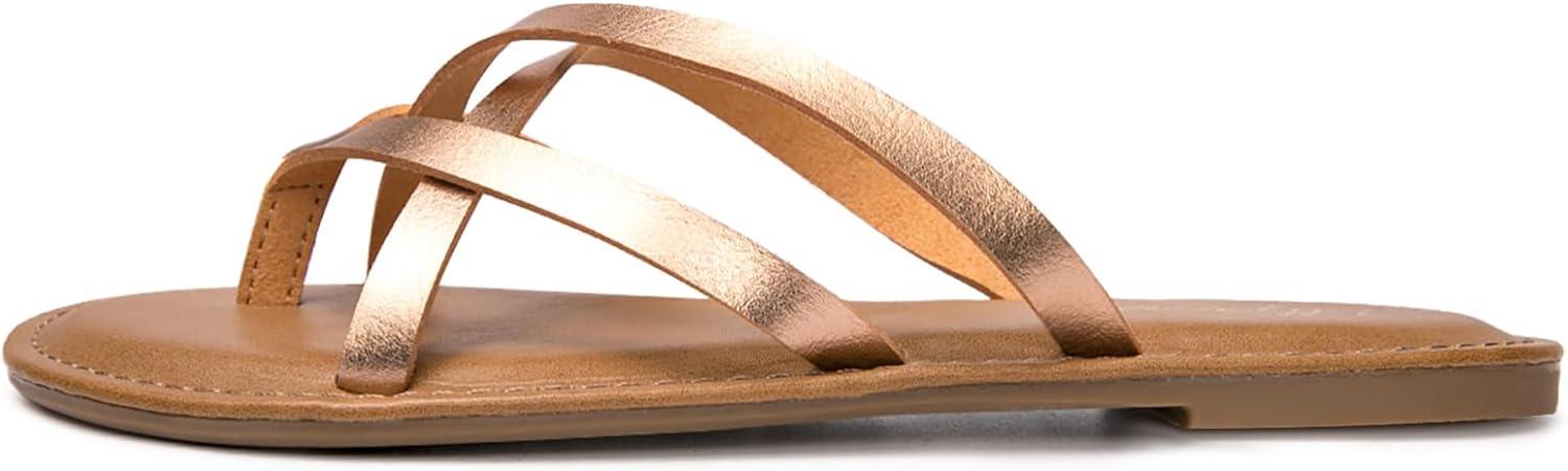 Luffymomo Women’s Elastic Strap Flat Sandals Casual Summer Open Toe Sandal(Champaign Gold)