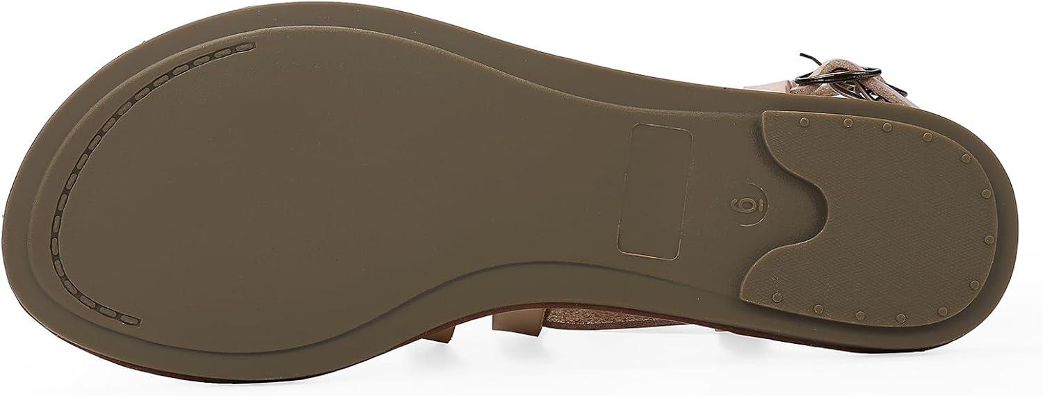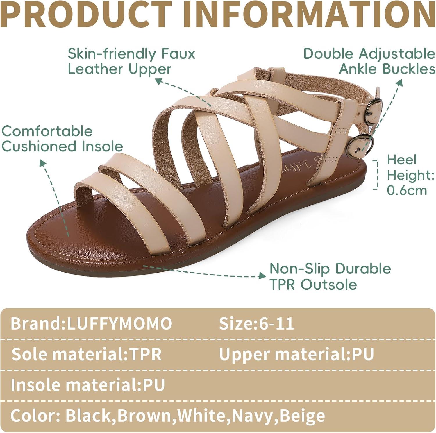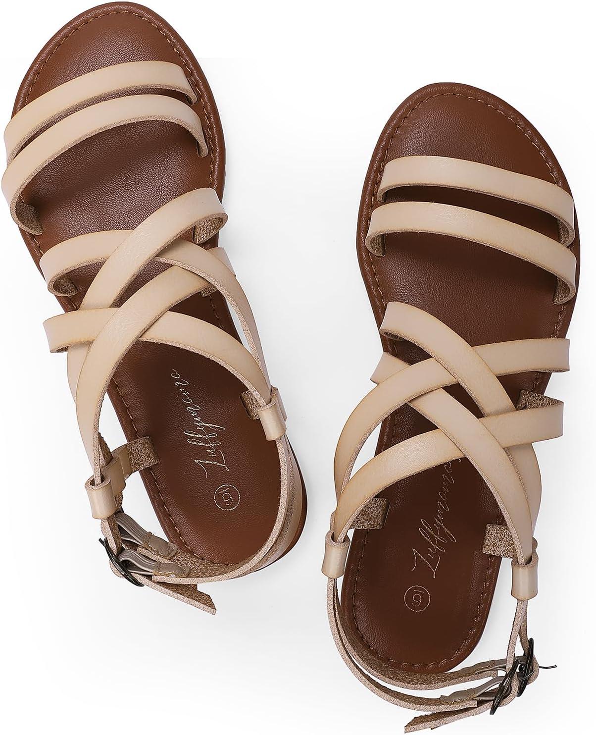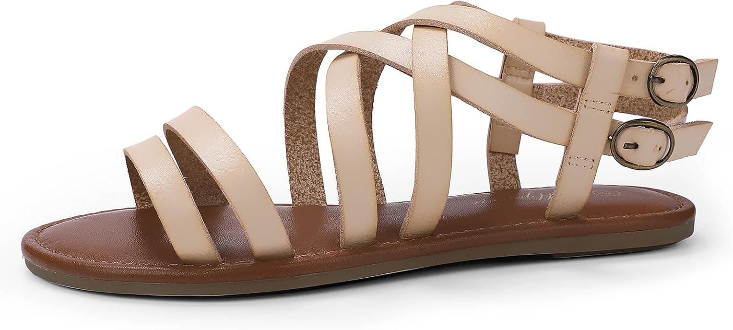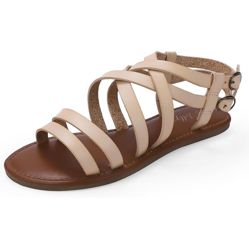 Luffymomo Women’s Flat Sandals Open Toe Casual Strappy Sandals Comfortable Ankle Strap Gladiator Slides(Beige)