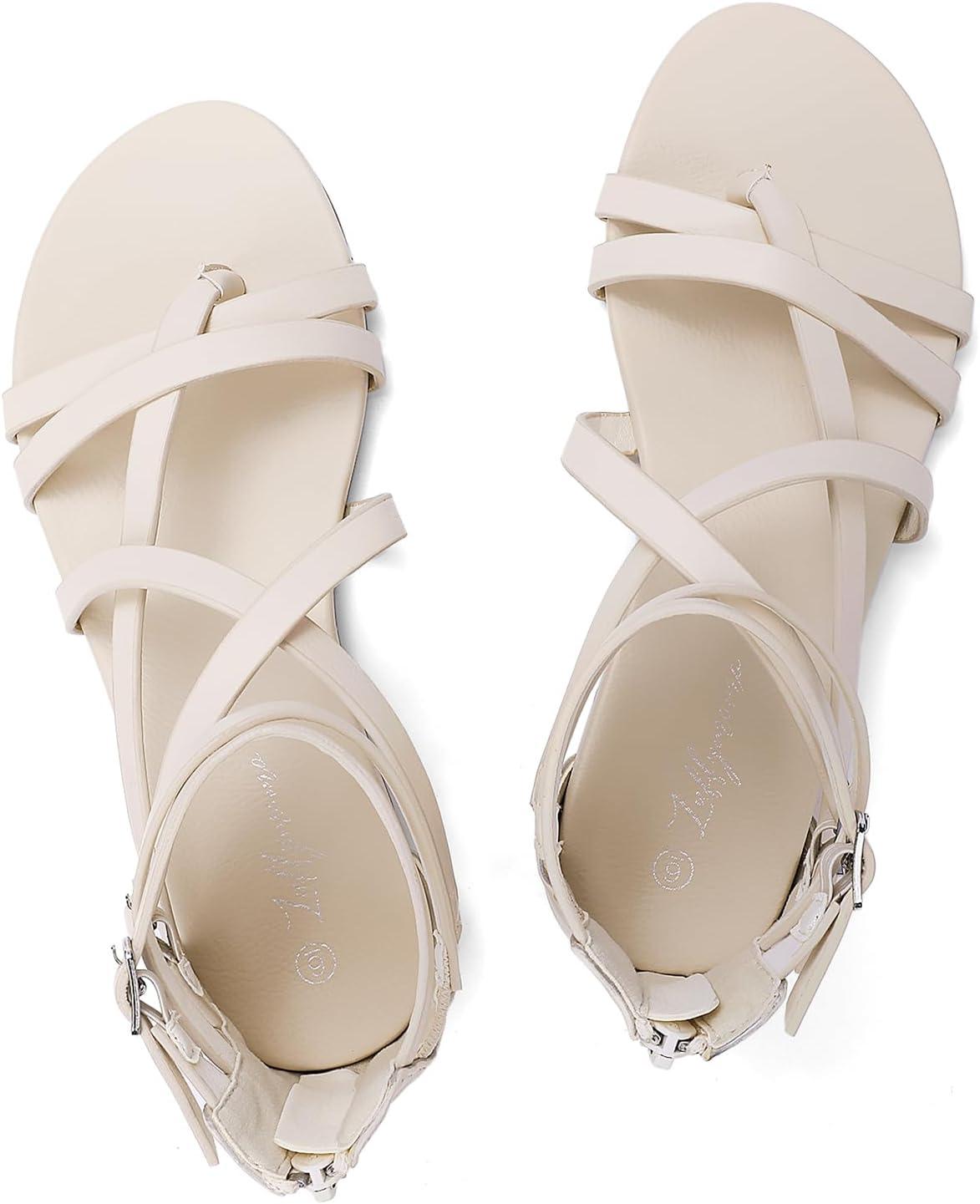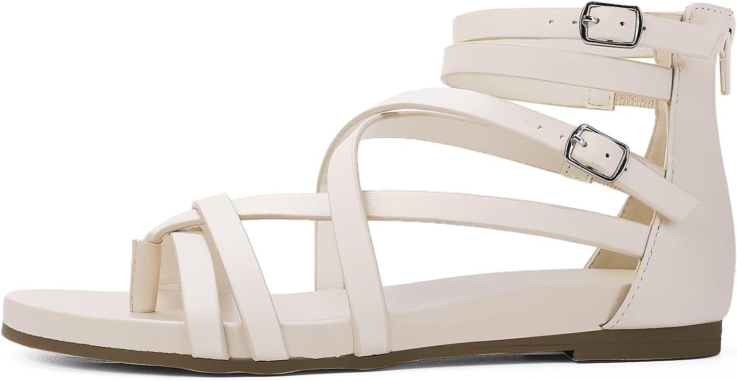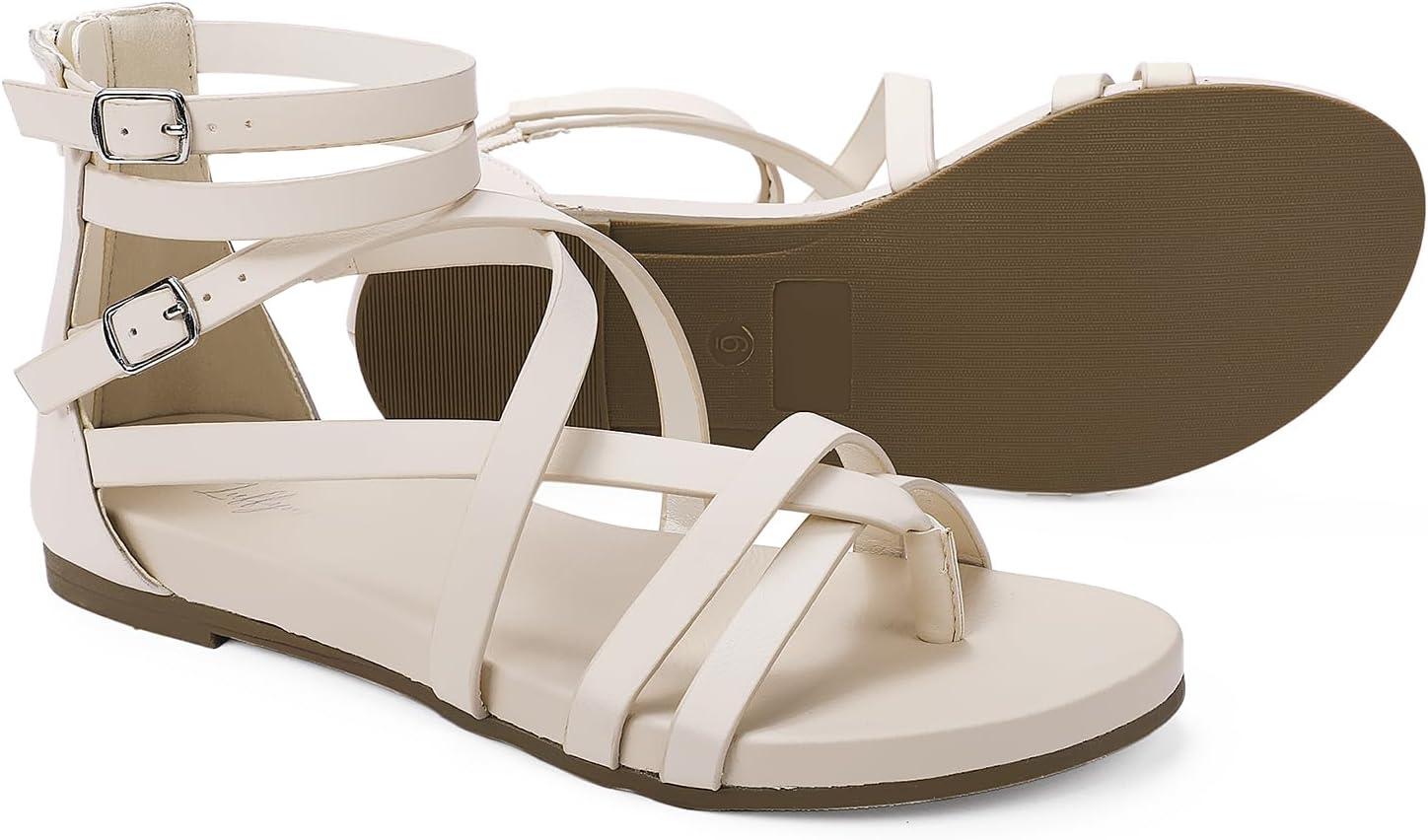 Luffymomo Women’s Gladiator Strap Sandals Flat Fisherman Thong Cross Strappy Sandals(Beige-b)