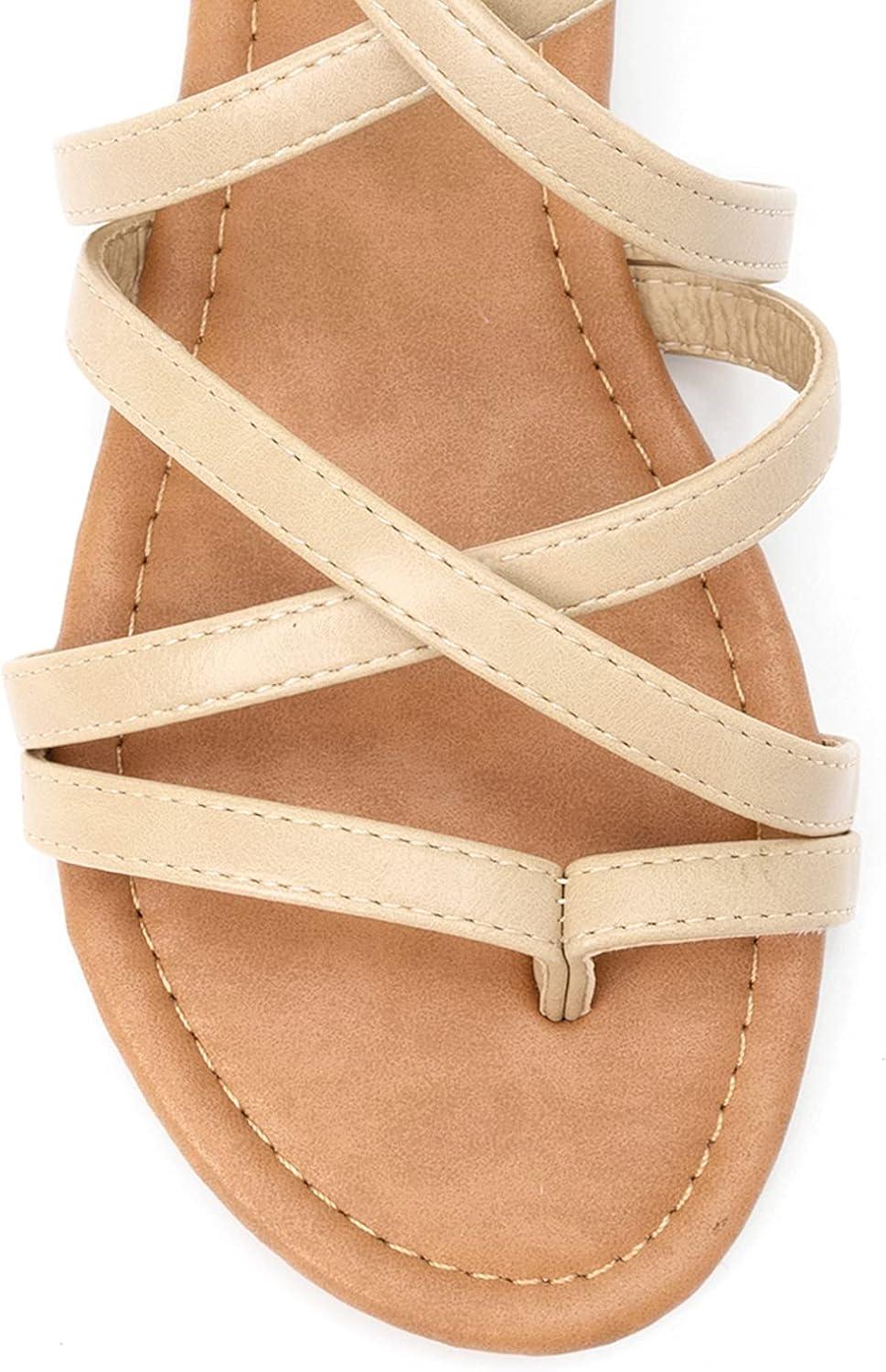 Luffymomo Women’s Gladiator Strap Sandals Flat Fisherman Thong Cross Strappy Sandals(Beige)