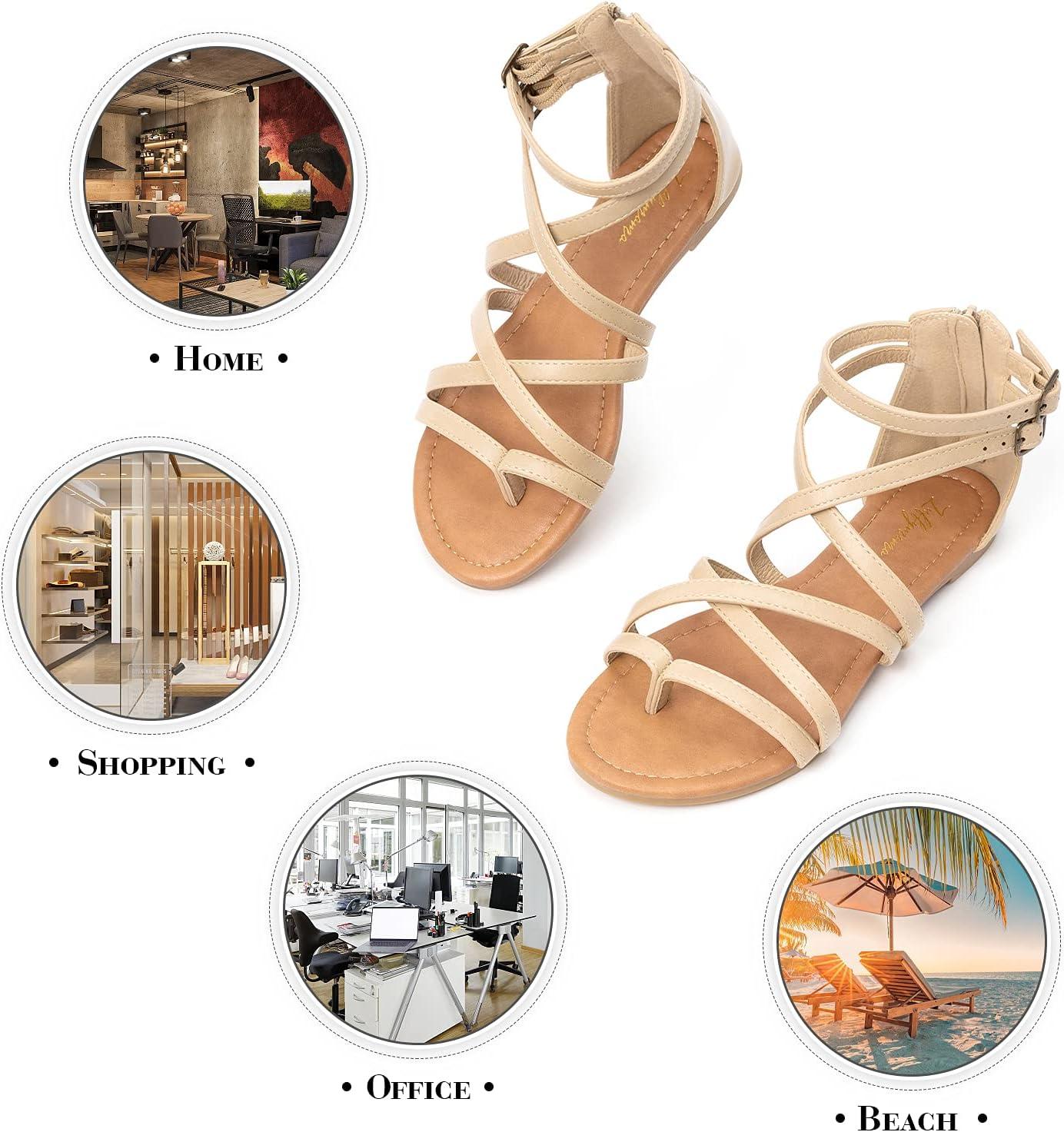 Don’t miss out on our limited-time offer: buy Luffymomo Women’s Gladiator Strap Sandals Flat Fisherman Thong Cross Strappy Sandals(Beige), get a free {accessory}!