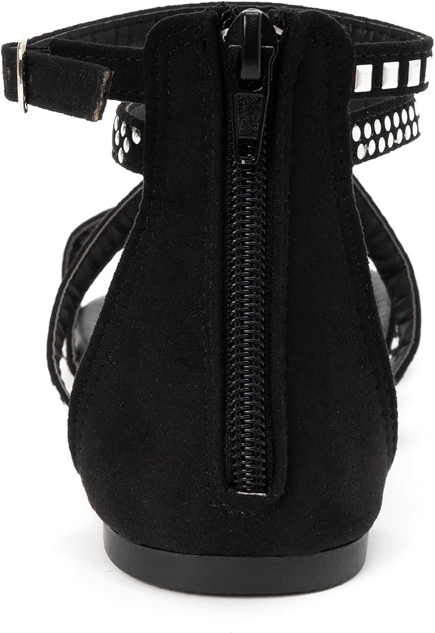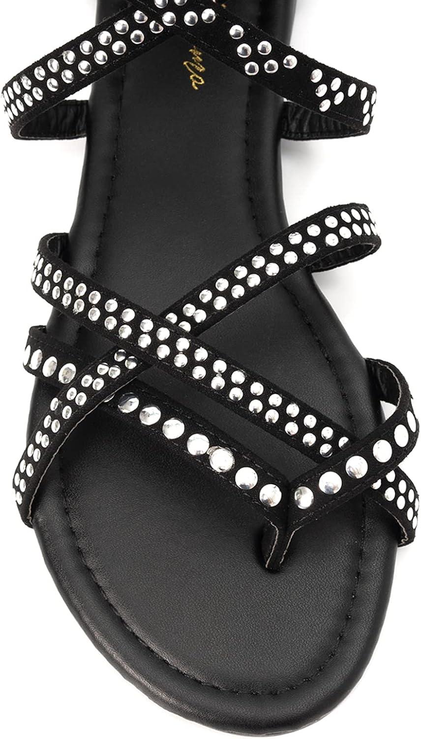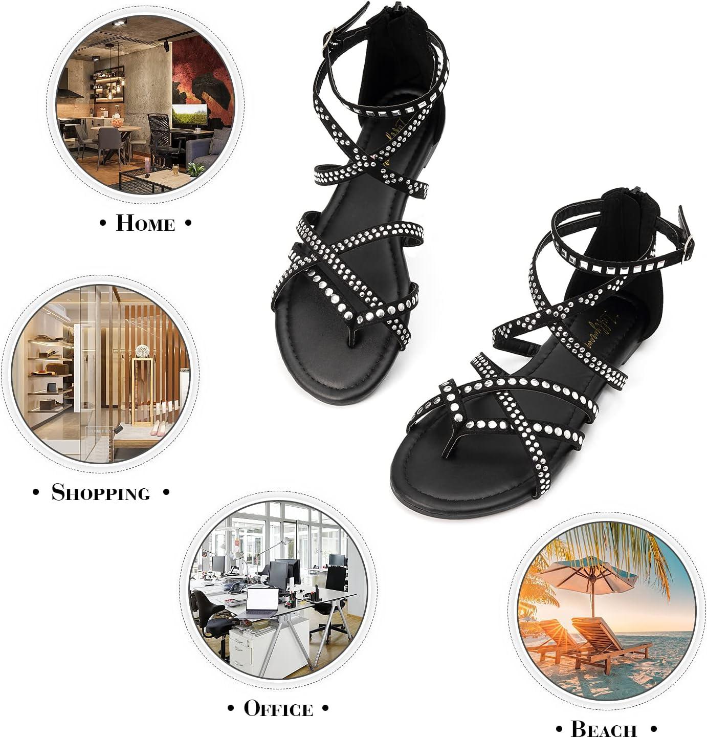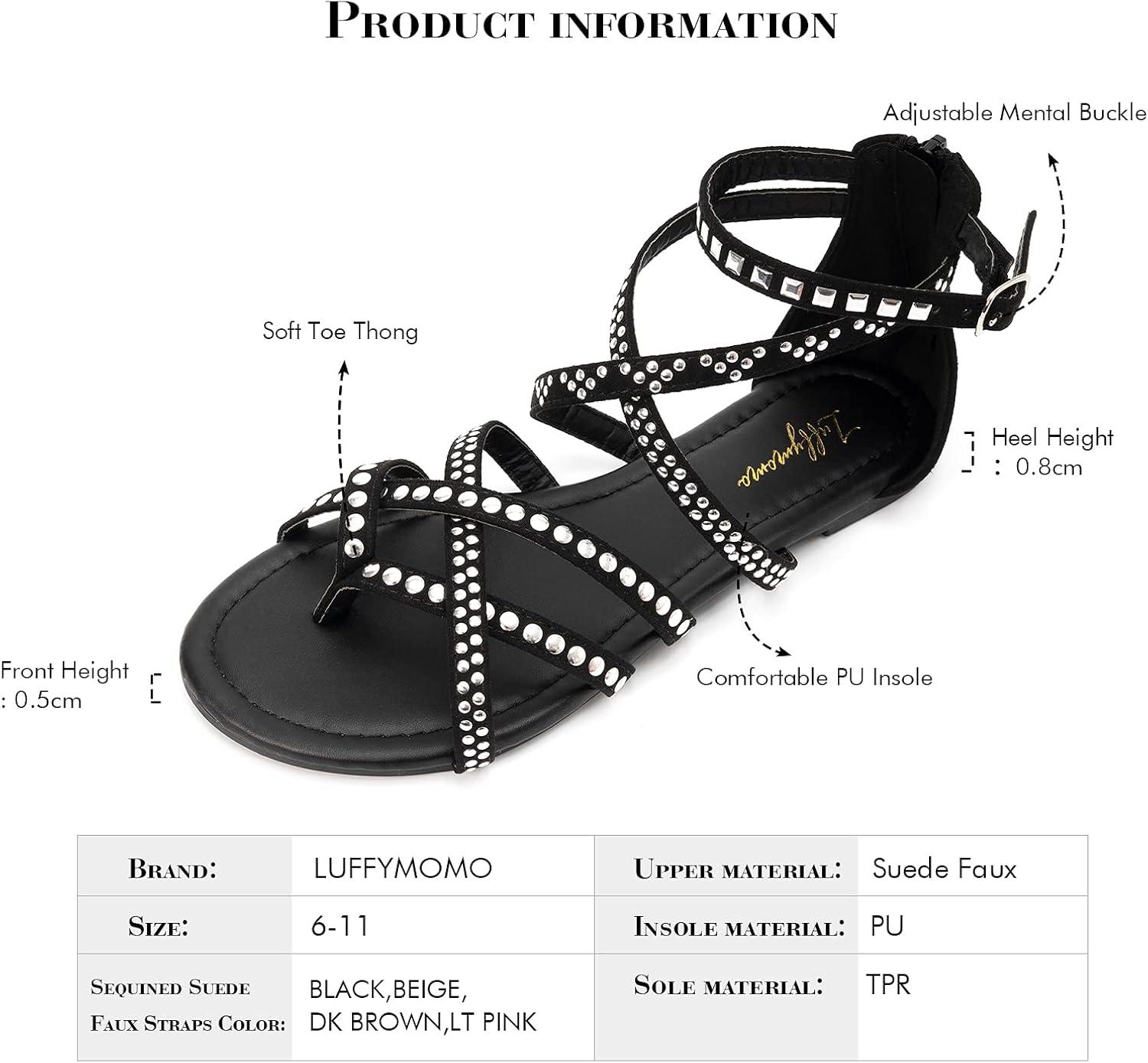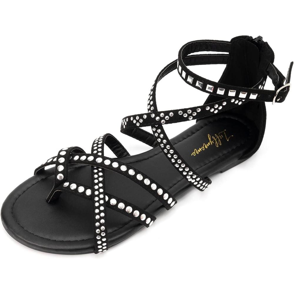 Luffymomo Women’s Gladiator Strap Sandals Flat Fisherman Thong Cross Strappy Sandals(Black-lp)