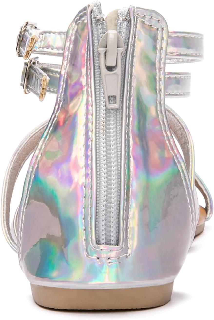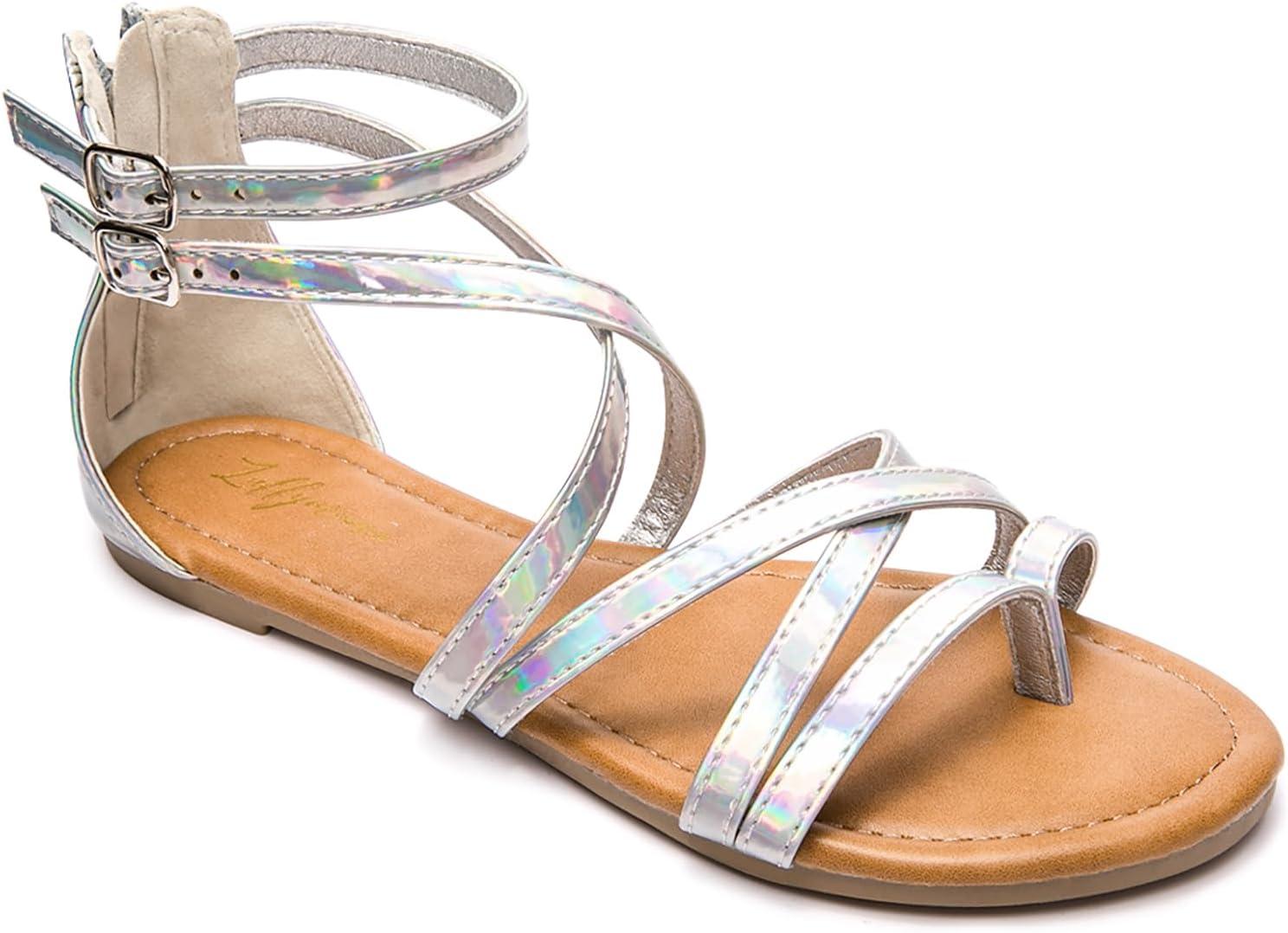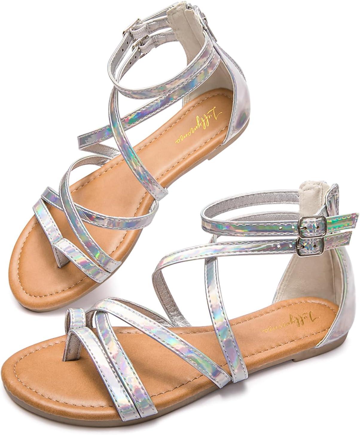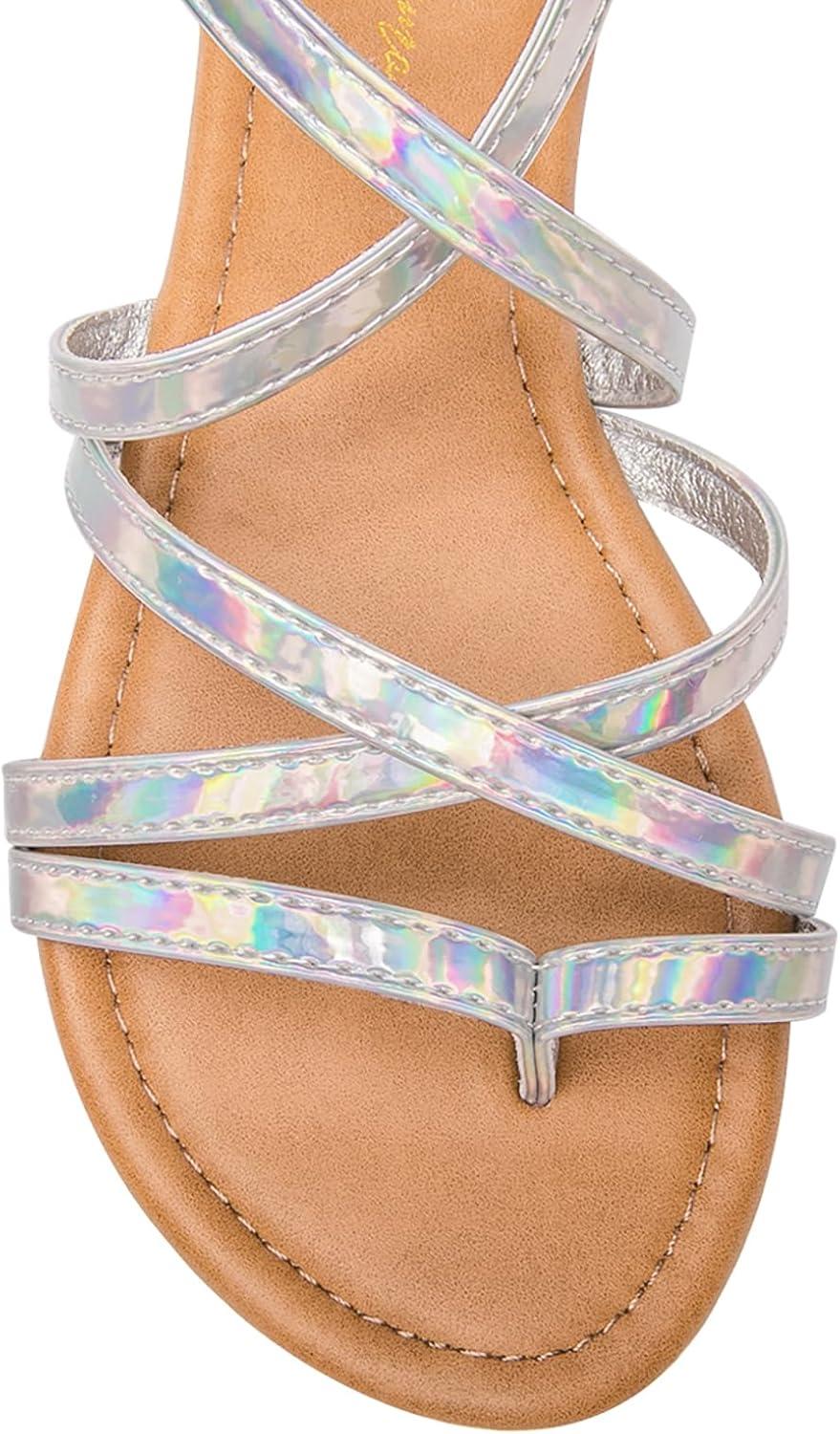 Luffymomo Women’s Gladiator Strap Sandals Flat Fisherman Thong Cross Strappy Sandals(Dream Silver Color)
