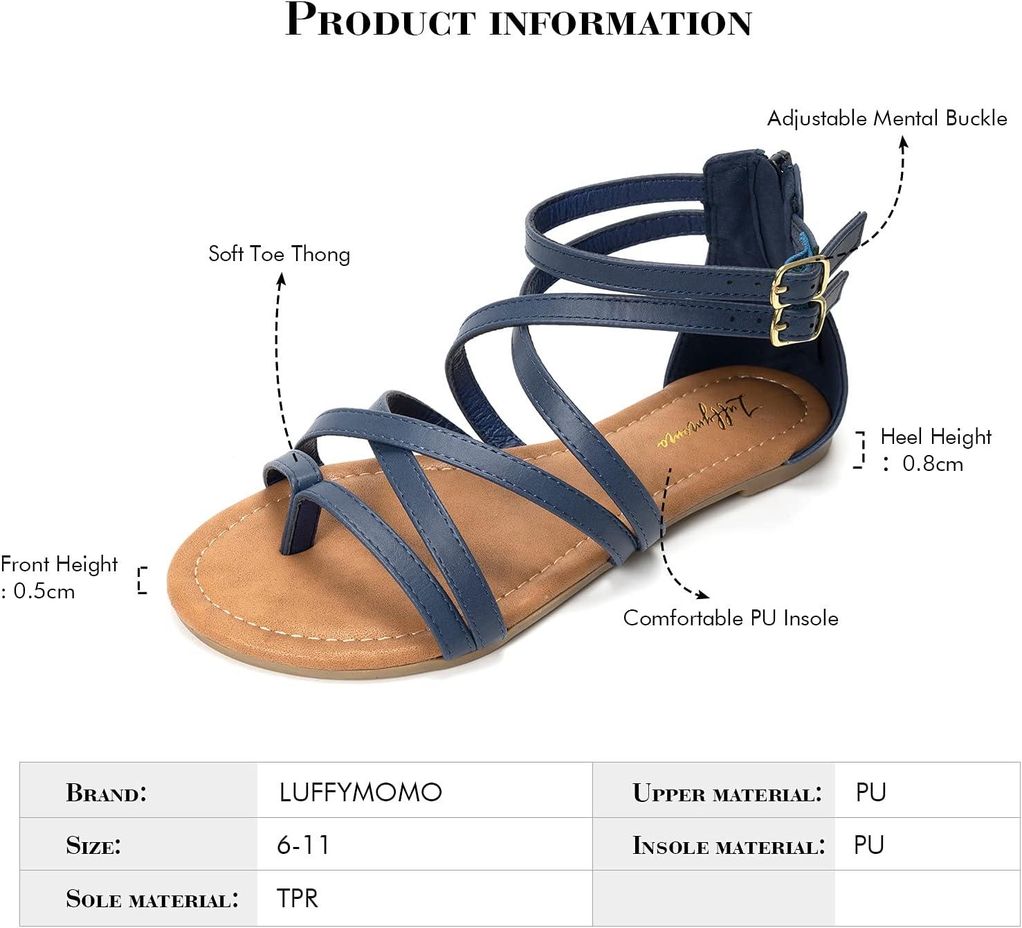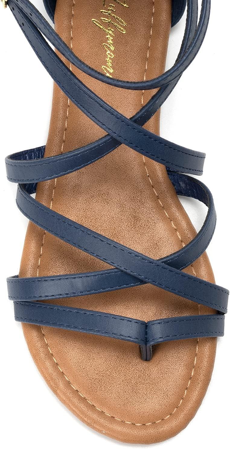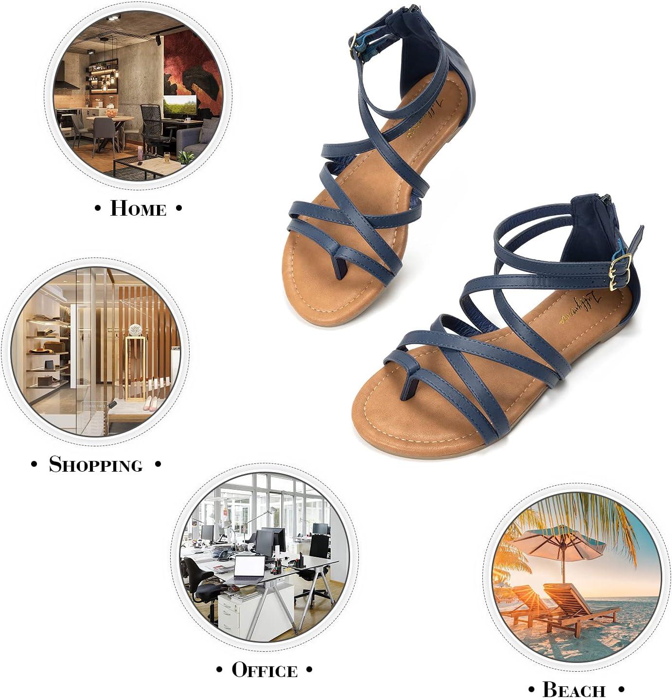 Luffymomo Women’s Gladiator Strap Sandals Flat Fisherman Thong Cross Strappy Sandals(Navy)