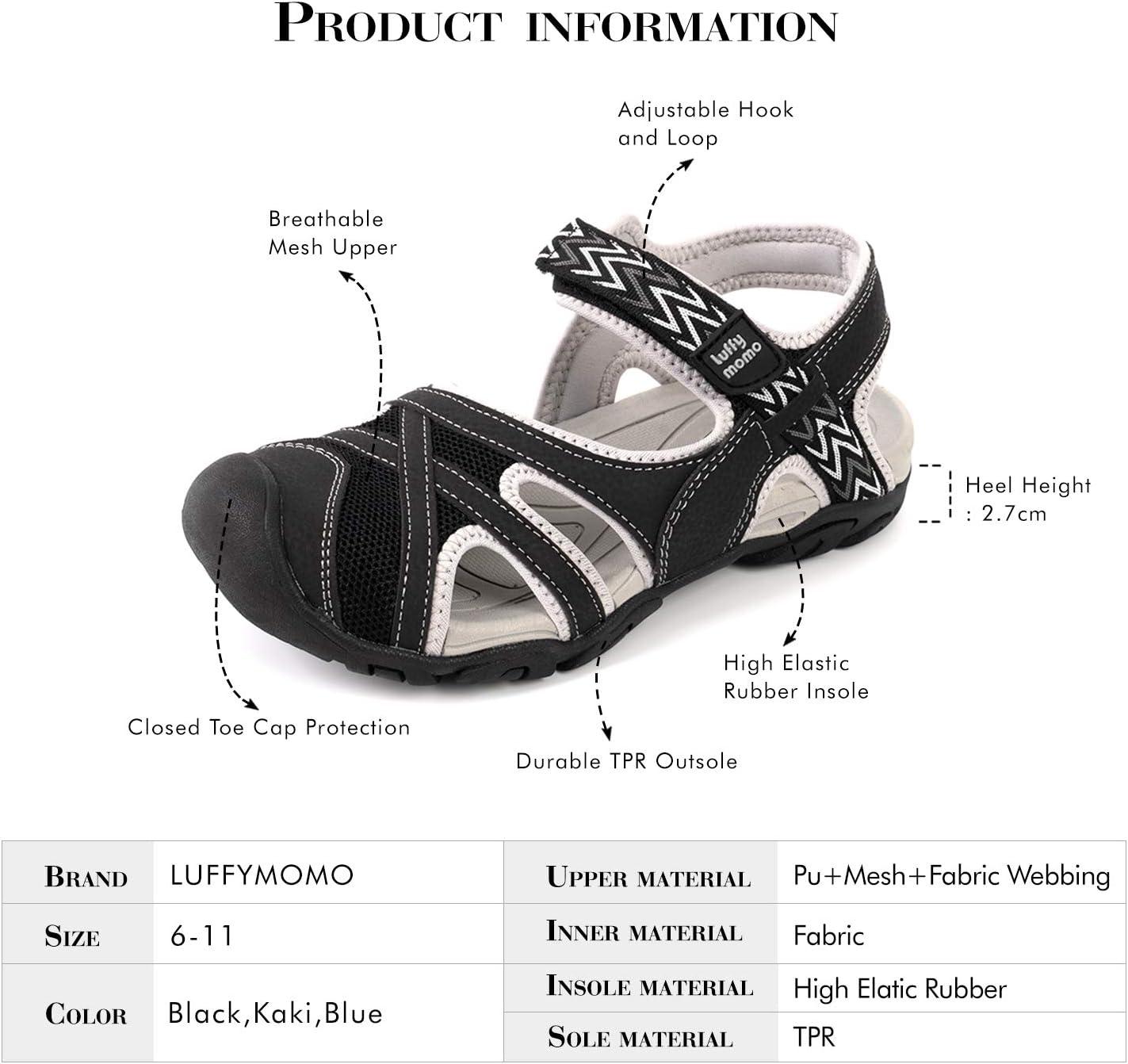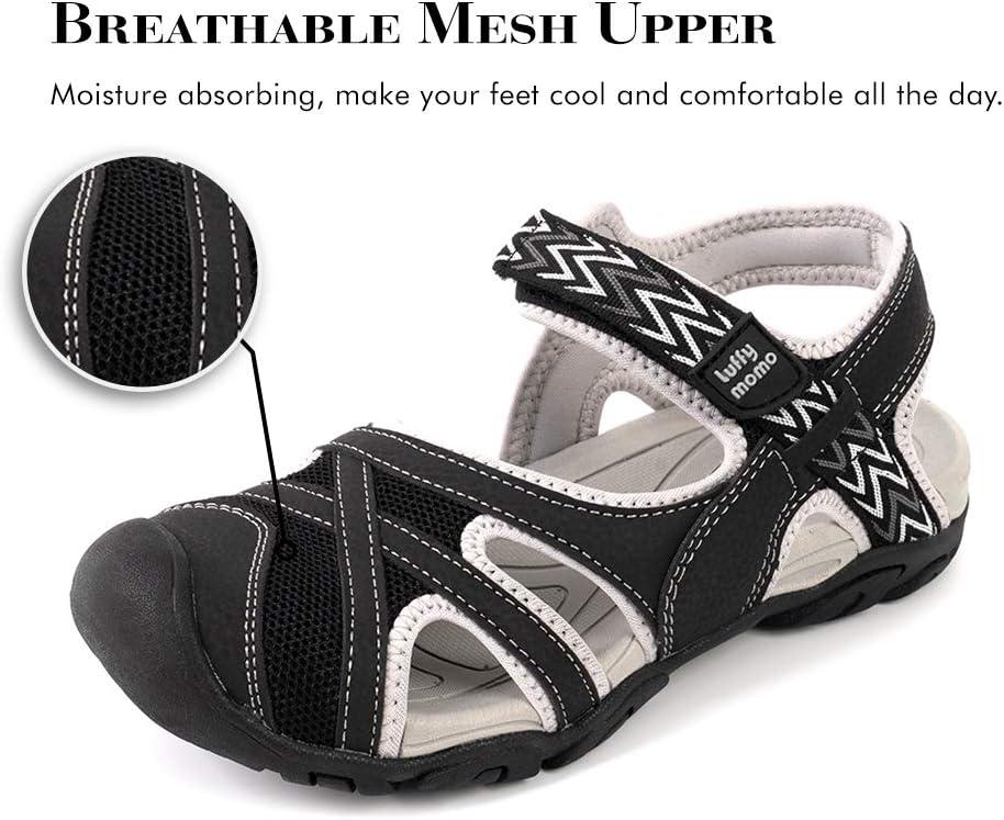 Luffymomo Womens Hiking Outdoor Sandals Sport Athtletic Beach Sandals with Closed Toe(Black)