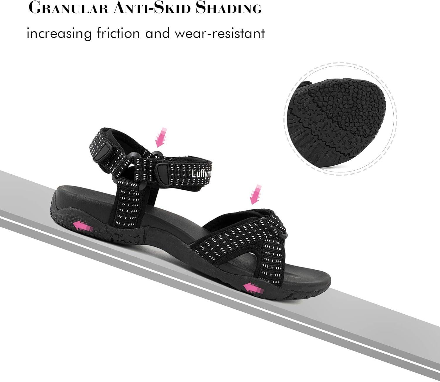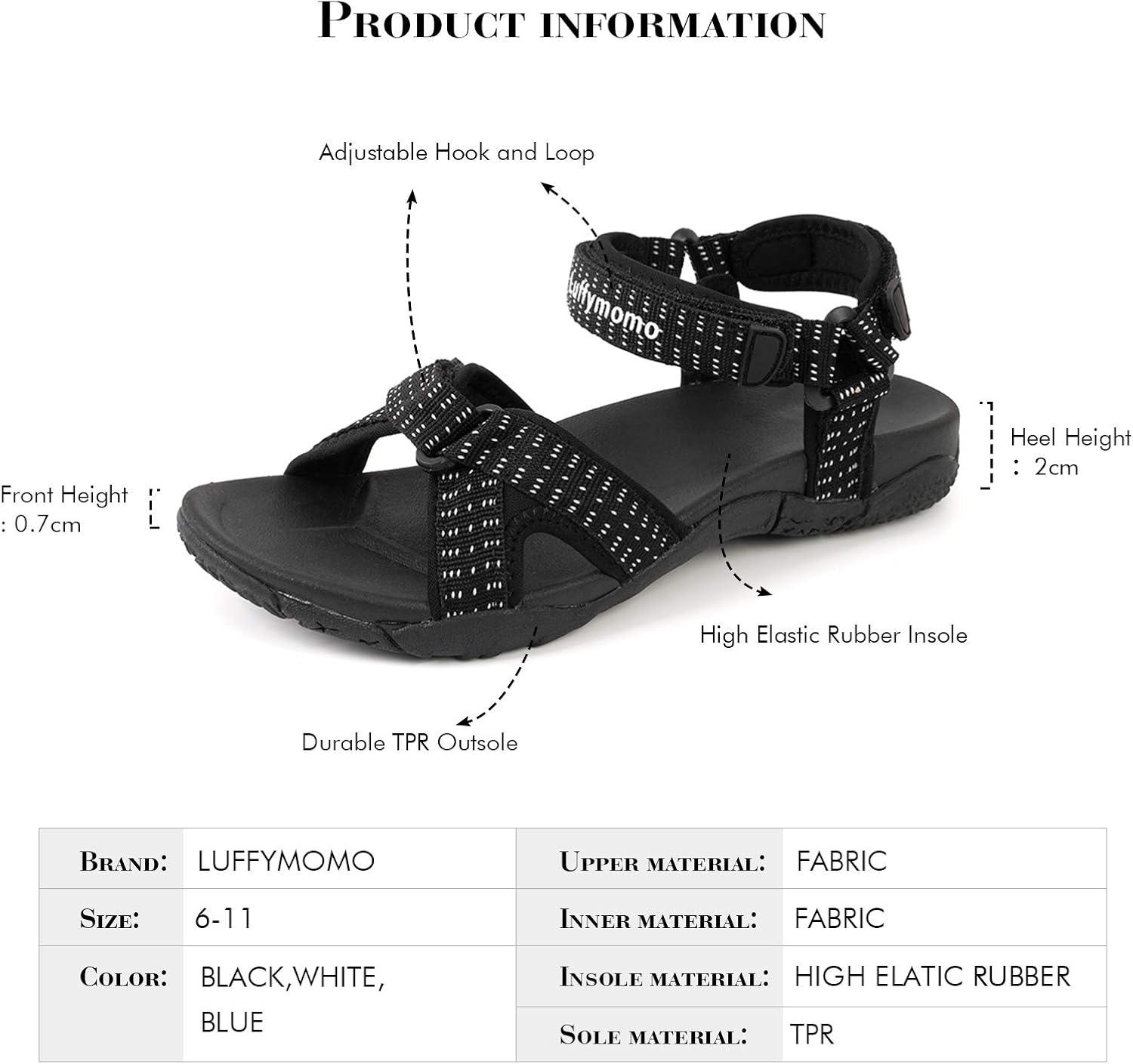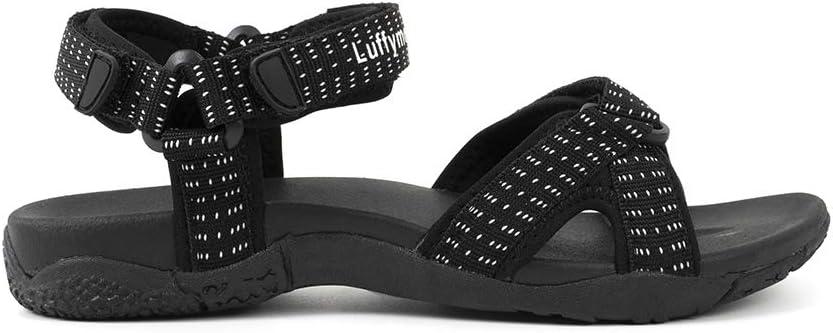 Luffymomo Womens Hiking Sandals Walking Sport Athtletic Webbing Sandals(Black)