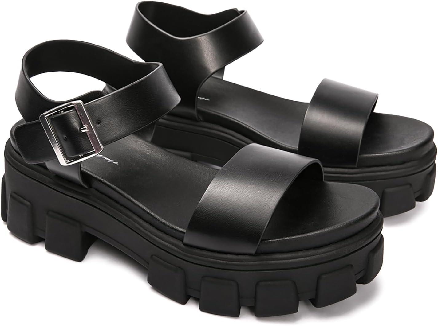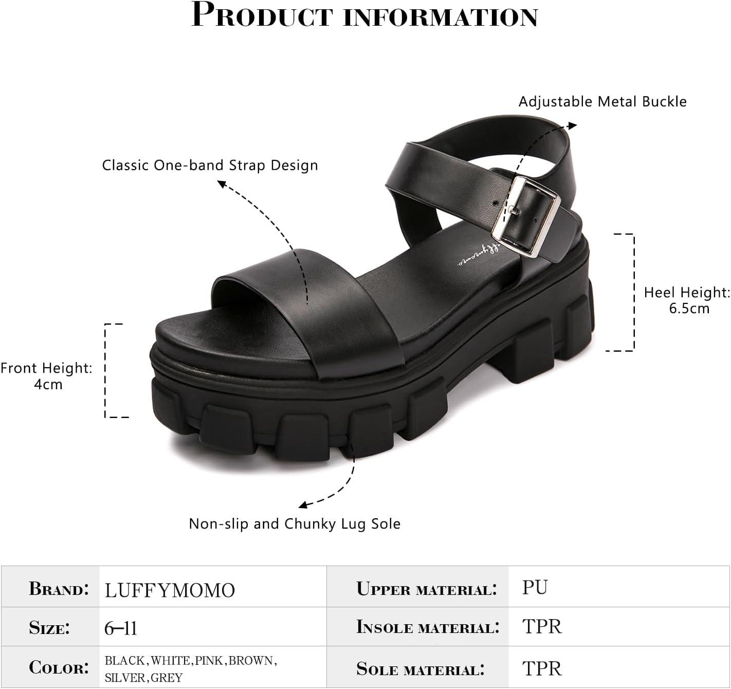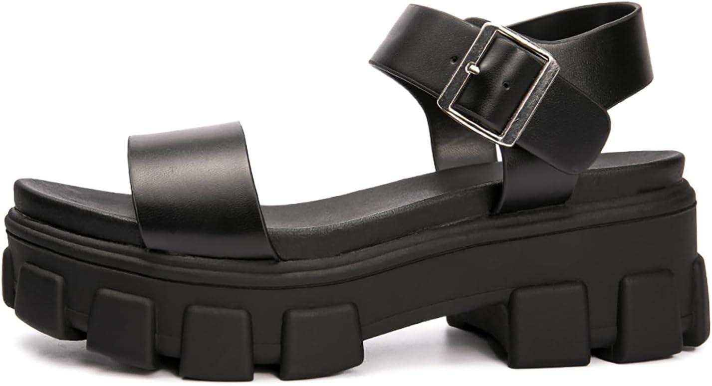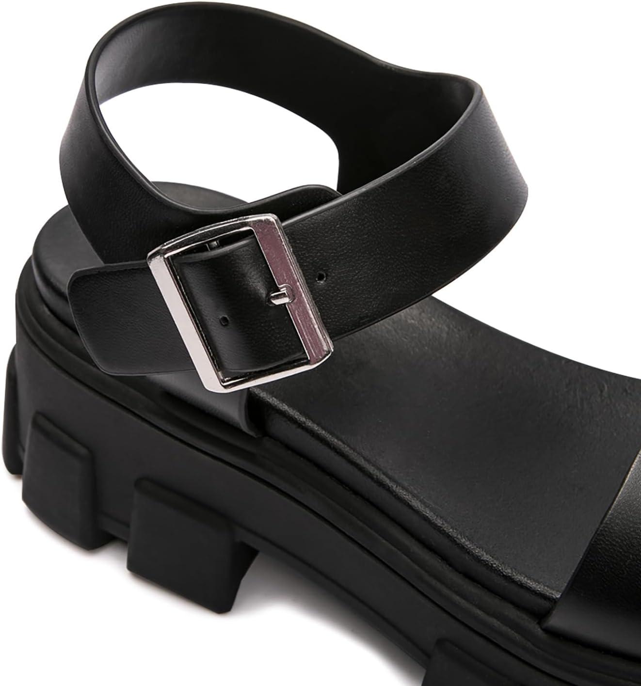Luffymomo Women’s Platform Wedge Sandals Lug Sole Sandals Adjustable Ankle Strap Chunky Heels(Black)
