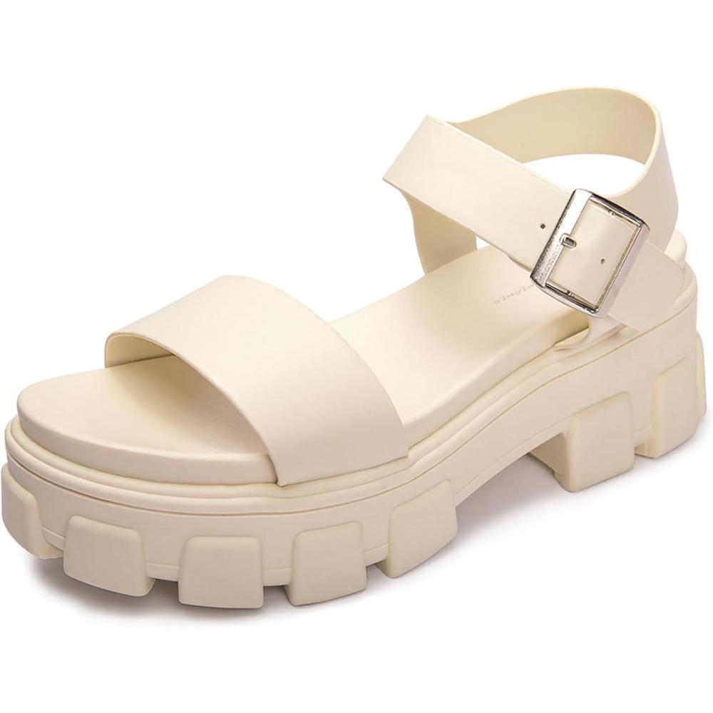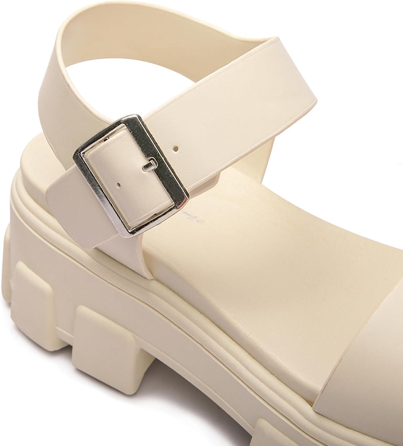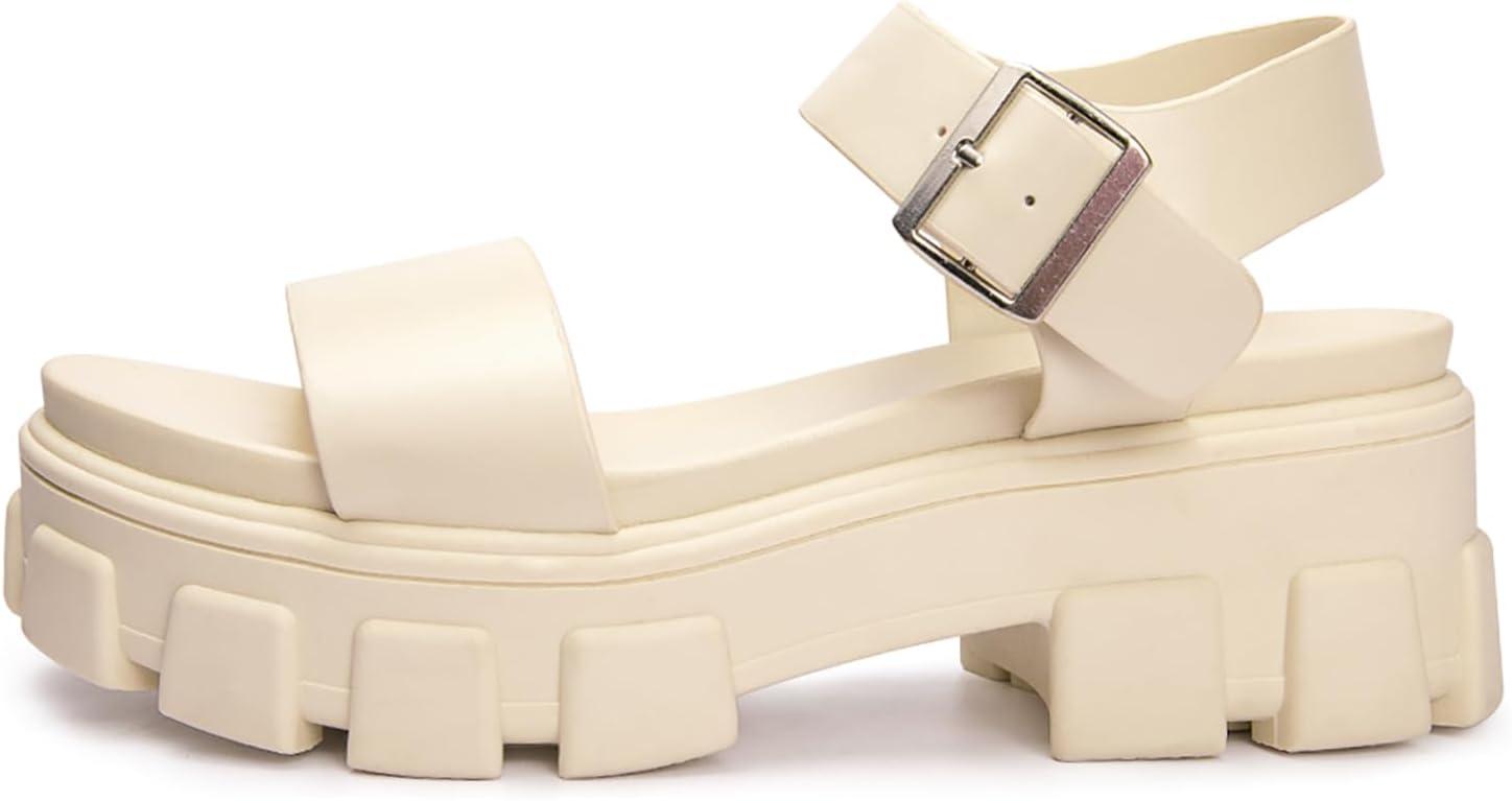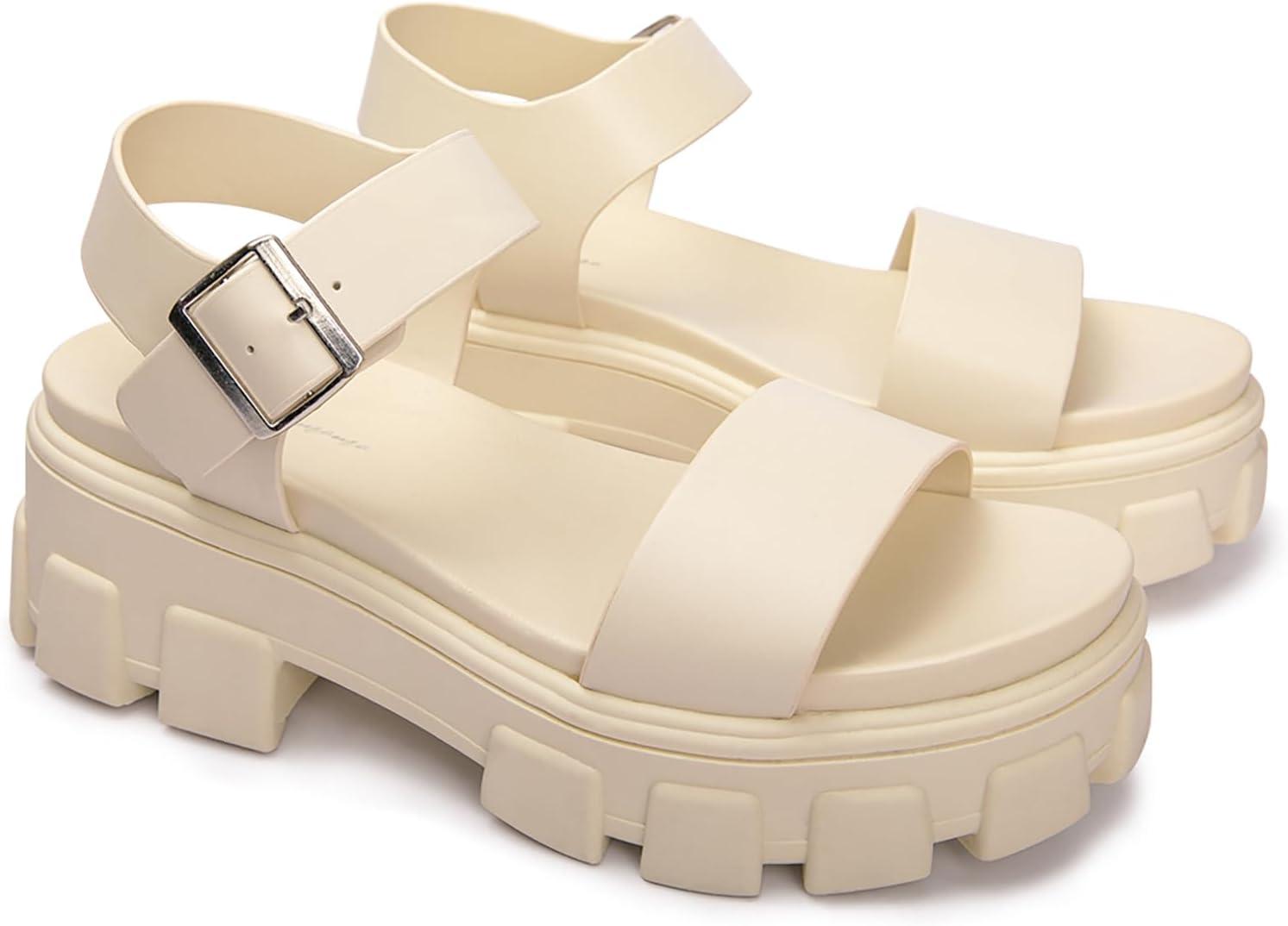 Luffymomo Women’s Platform Wedge Sandals Lug Sole Sandals Adjustable Ankle Strap Chunky Heels(White)