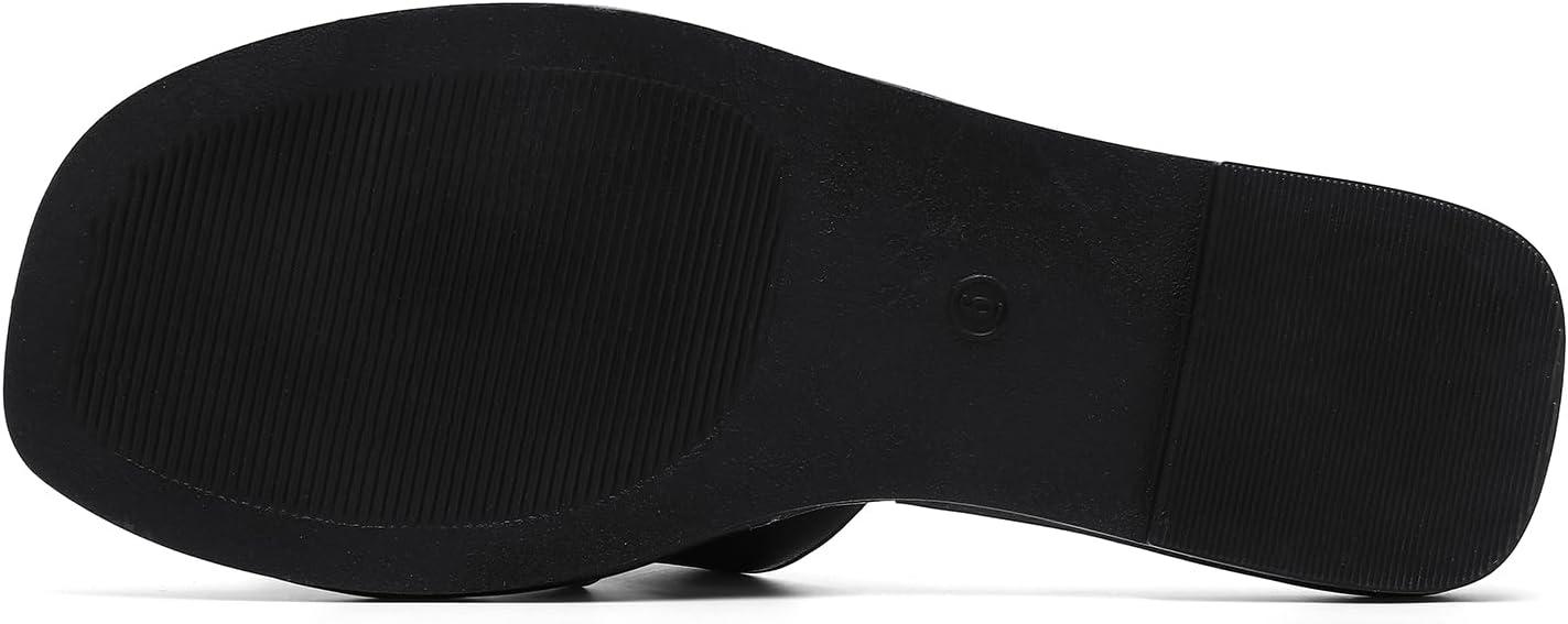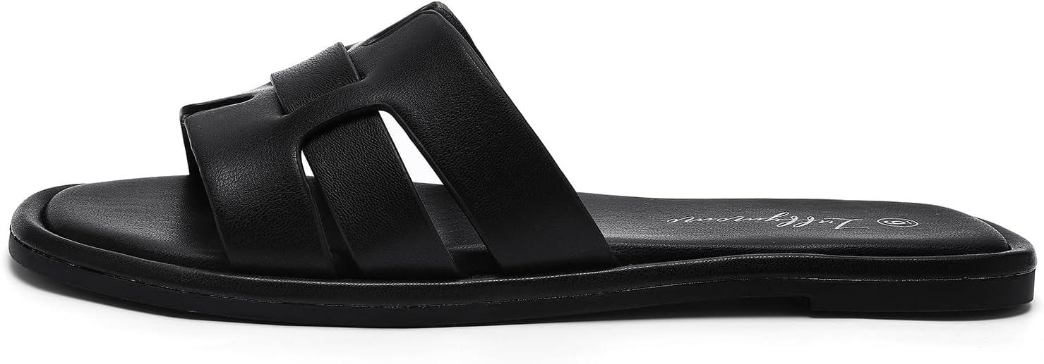 Luffymomo Womens Slip on Flat Sandals Comfortable Summer Casual Slides Sandals(Black)
